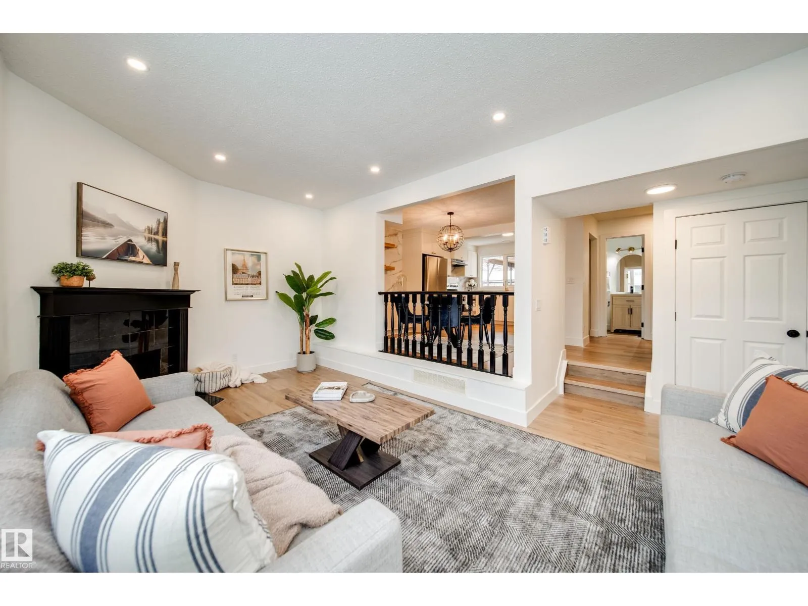 FULLY RENOVATED and move in ready, this 5 BEDROOM, 2.5-bath townhome delivers modern style in an established St. Albert community. The main floor showcases a BRAND NEW KITCHEN with crisp SHAKER white cabinetry, QUARTZ counters, tile backsplash, BRAND NEW stainless steel appliances, and a dedicated dining area that flows seamlessly into the living space with WOOD FIREPLACE. Updated flooring, contemporary lighting, and neutral finishes create a bright, cohesive feel throughout. Upstairs offers FOUR GENEROUS BEDROOMS and a full BRAND NEW bath, while the FULLY FINISHED BASEMENT adds a 5TH BEDROOM, additional FULL bathroom, and versatile space for guests, home office, or family use. PARKING is a breeze with TWO COVERED STALLS right outside your door. Finishing off the home is a large yard.Situated in Akinsdale steps to schools, parks, transit, and shopping, with easy access to major routes. UPGRADES INCLUDE: FLOORING, POT LIGHTS, PAINT, TRIM, DOORS, TOILETS, CABINETS, COUNTERTOPS, FIREPLACE SURROUND, LIGHTING. (id:27476)