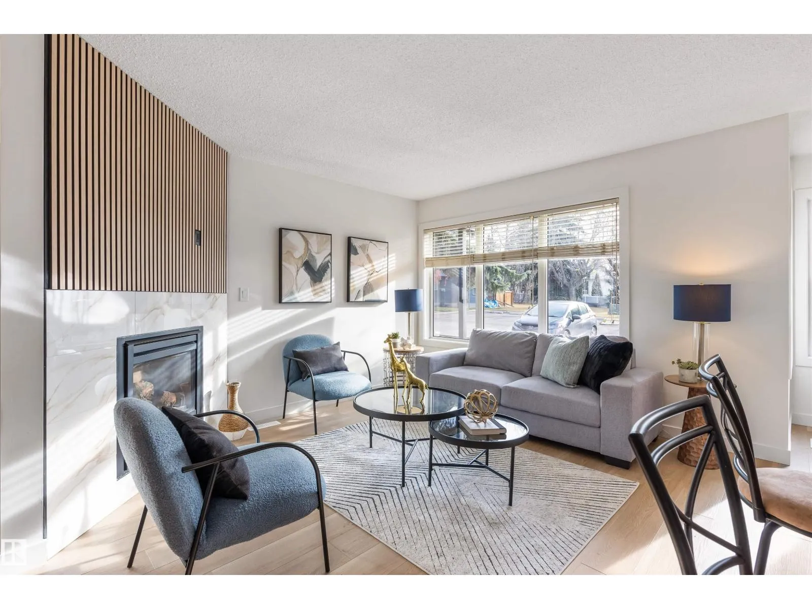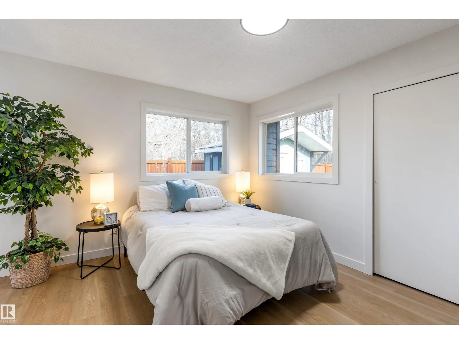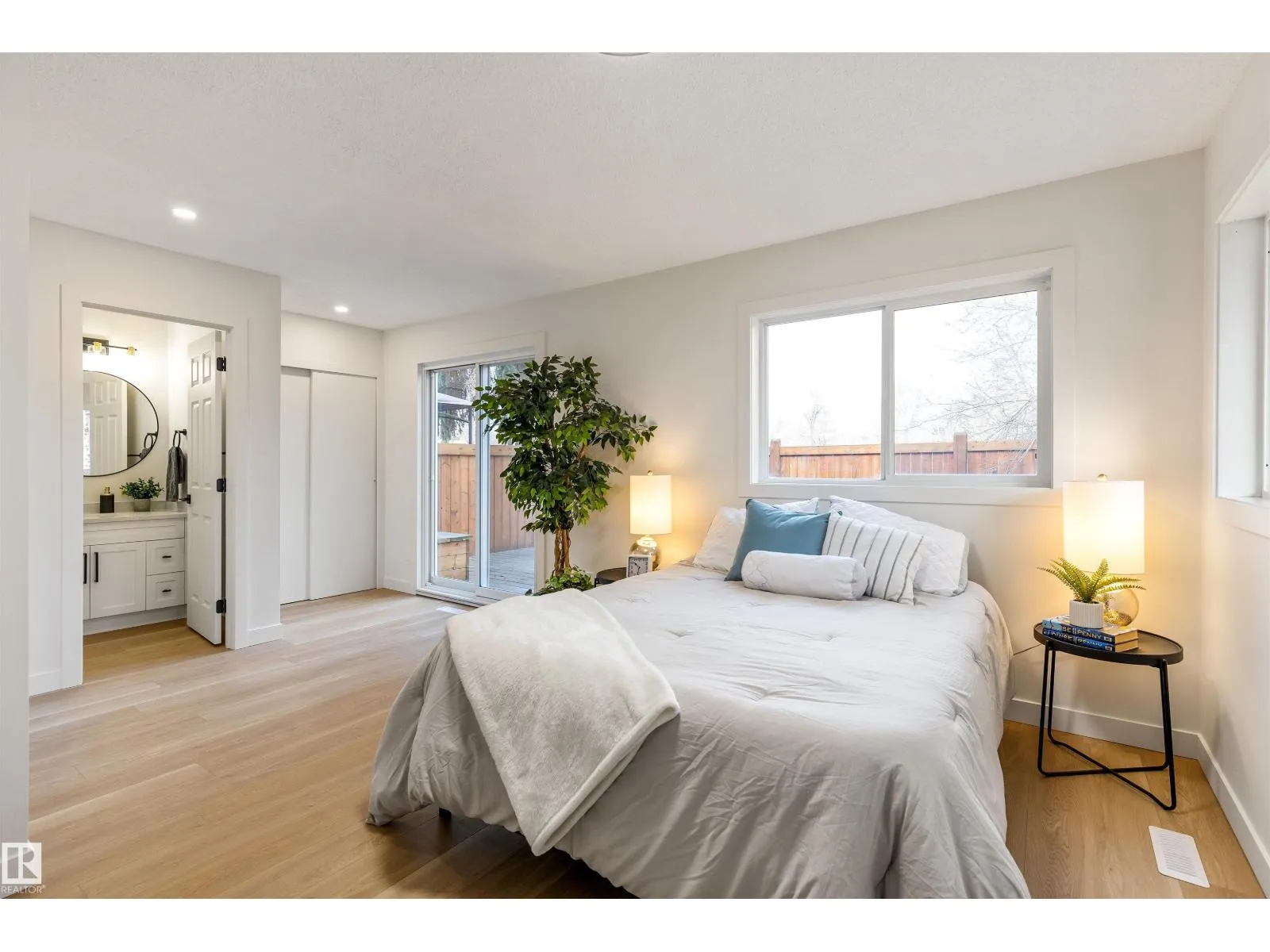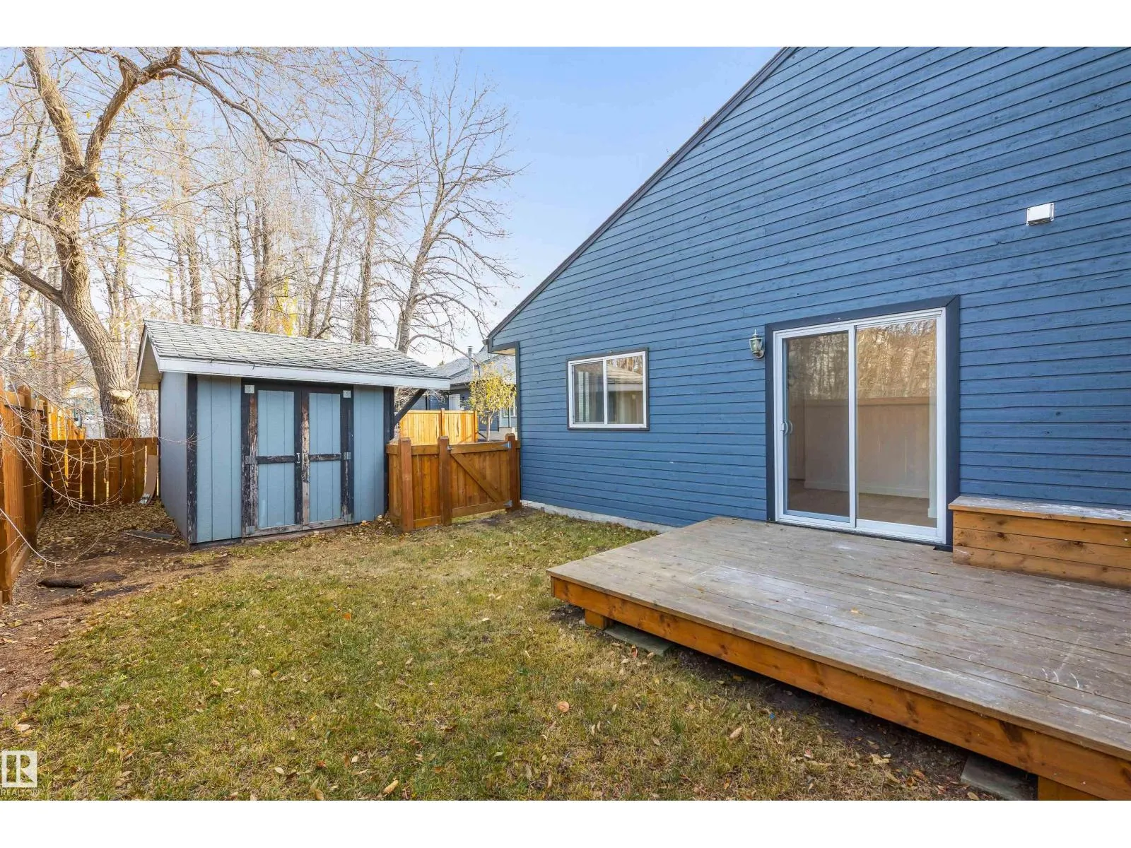 Discover this RENOVATED fully finished BUNGALOW in Grandin Estates. Siding onto GREENSPACE, this unit has an amazing location w/ a fenced yard & a large storage shed. The entrance enters into a modernized OPEN DESIGN. VINYL FLOORING spreads throughout the main floor. The kitchen has white cabinetry, QUARTZ COUNTERS, eating bar island, tiled back splash, pot/pan drawers, s/s appliances & more. The living room has large windows looking out front & a corner GAS F/P. There are double French doors off the entrance into the flex room, which makes an amazing office or an ADDITIONAL BEDROOM. The main bathroom is completely renovated w/ new cabinetry, tub/shower & fixtures. The spacious primary bedroom has double closets, sliding doors to a private back deck & a brand new 3pce ENSUITE. Across from the primary bedroom is the laundry. The basement is finished w/ a massive family room, 3pce bath & flex room. There are 2 assigned parking stalls in front of this unit! (id:27476)