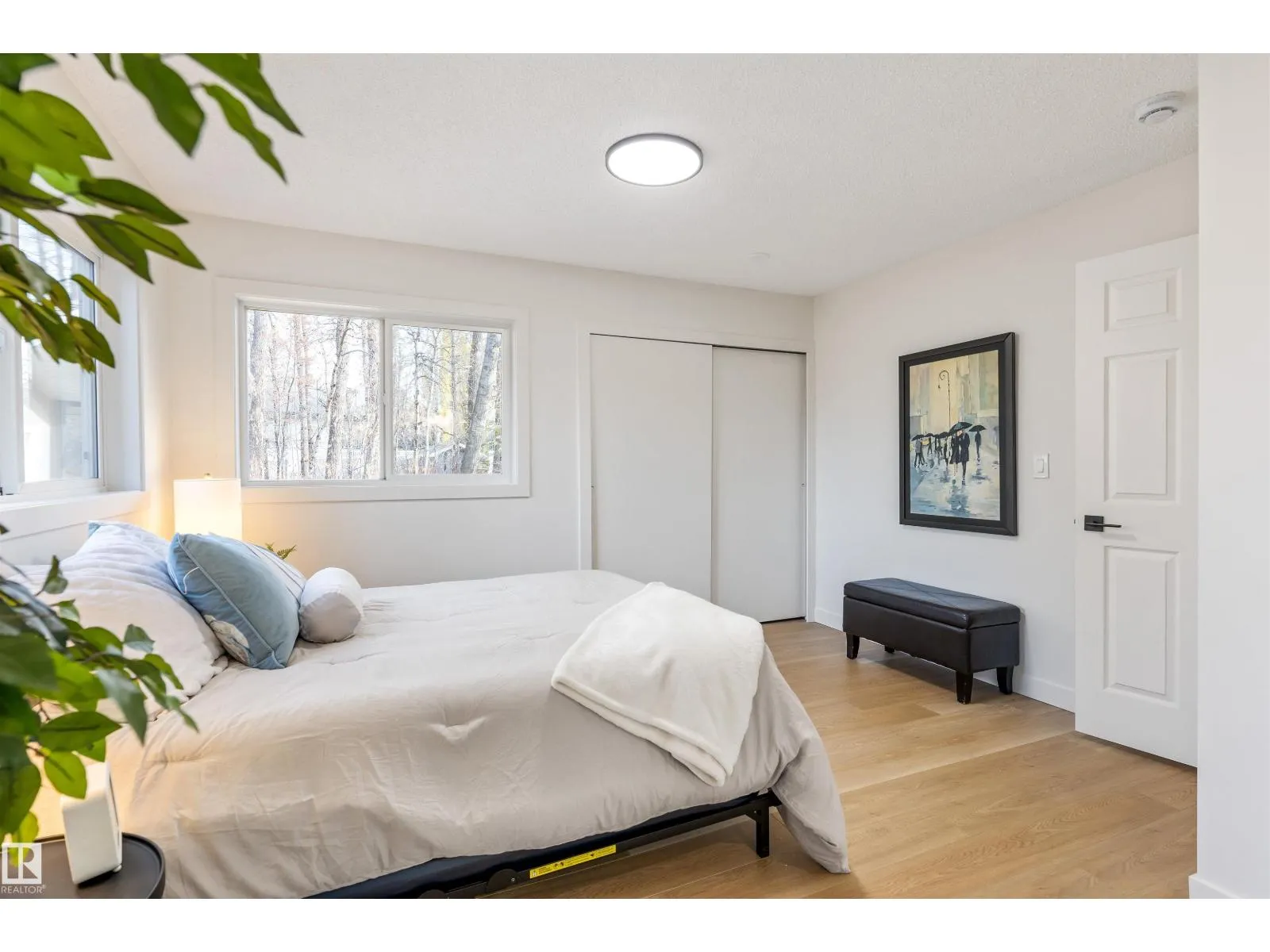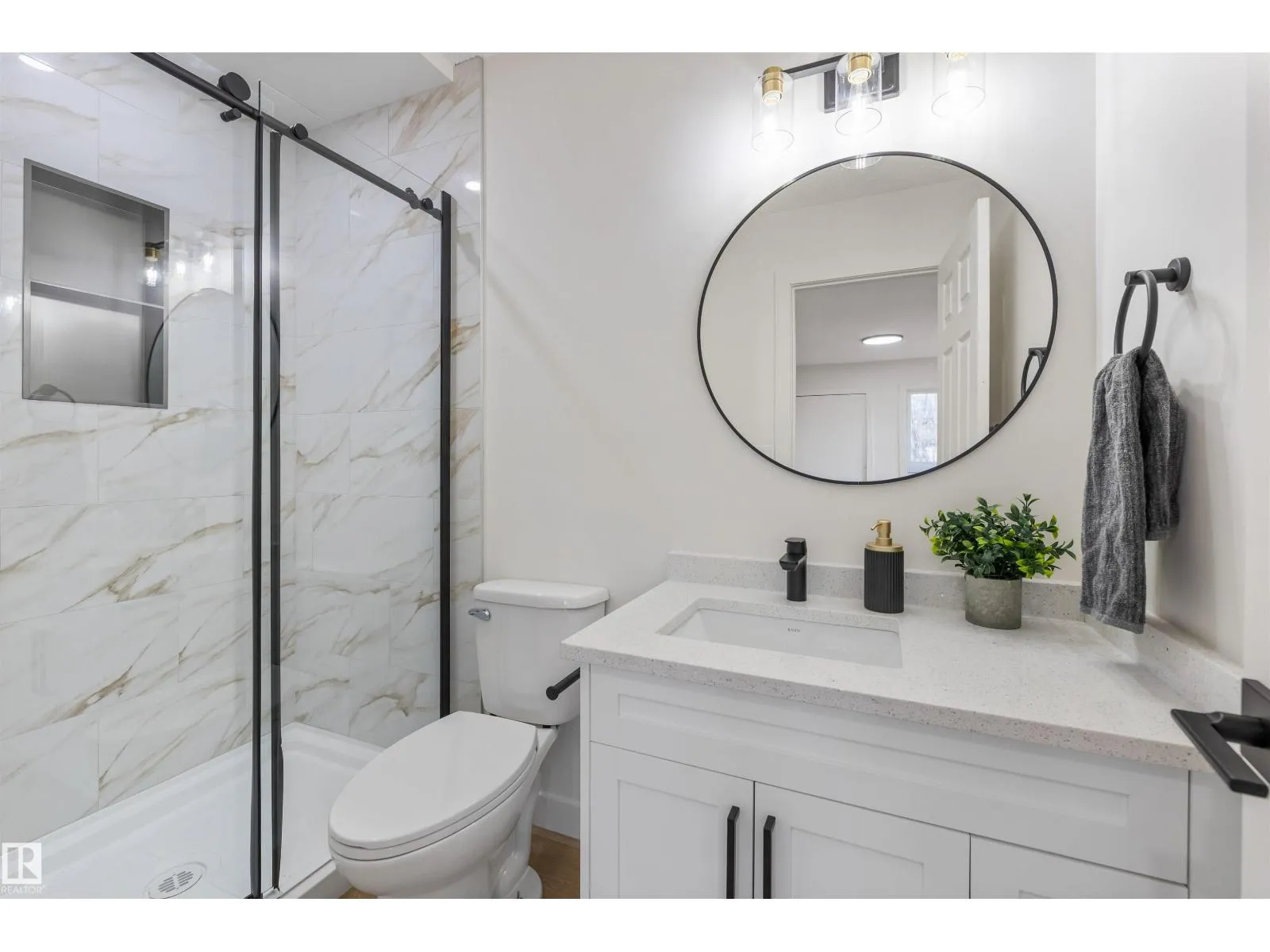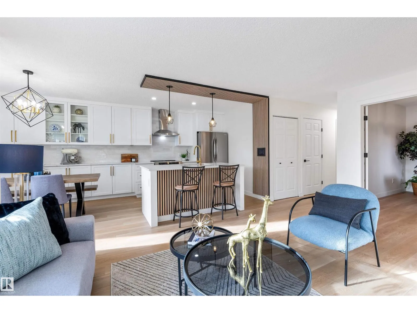 Discover this RENOVATED fully finished BUNGALOW in Grandin Estates. Siding onto GREENSPACE, this unit has an amazing location w/ a fenced yard & a large storage shed. The entrance enters into a modernized OPEN DESIGN. VINYL FLOORING spreads throughout the main floor. The kitchen has white cabinetry, QUARTZ COUNTERS, eating bar island, tiled back splash, pot/pan drawers, s/s appliances & more. The living room has large windows looking out front & a corner GAS F/P. There are double French doors off the entrance into the flex room, which makes an amazing office or an ADDITIONAL BEDROOM. The main bathroom is completely renovated w/ new cabinetry, tub/shower & fixtures. The spacious primary bedroom has double closets, sliding doors to a private back deck & a brand new 3pce ENSUITE. Across from the primary bedroom is the laundry. The basement is finished w/ a massive family room, 3pce bath & flex room. There are 2 assigned parking stalls in front of this unit! (id:27476)