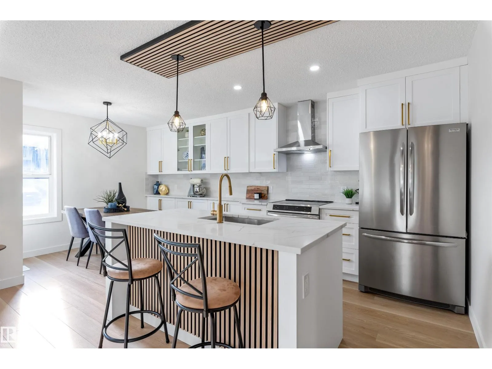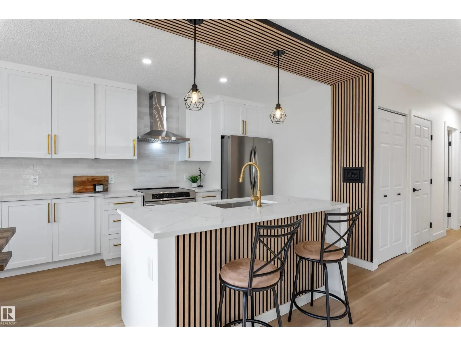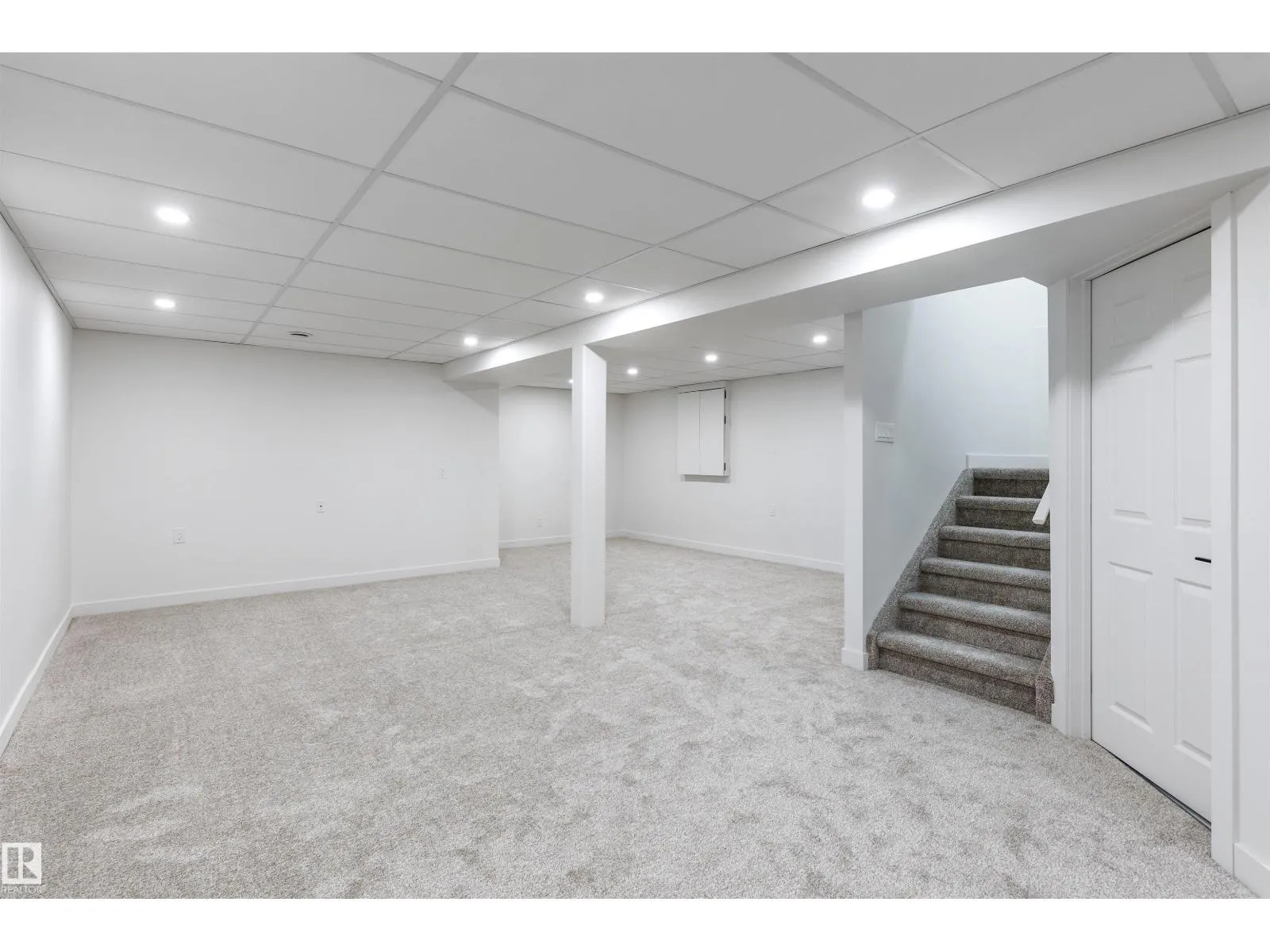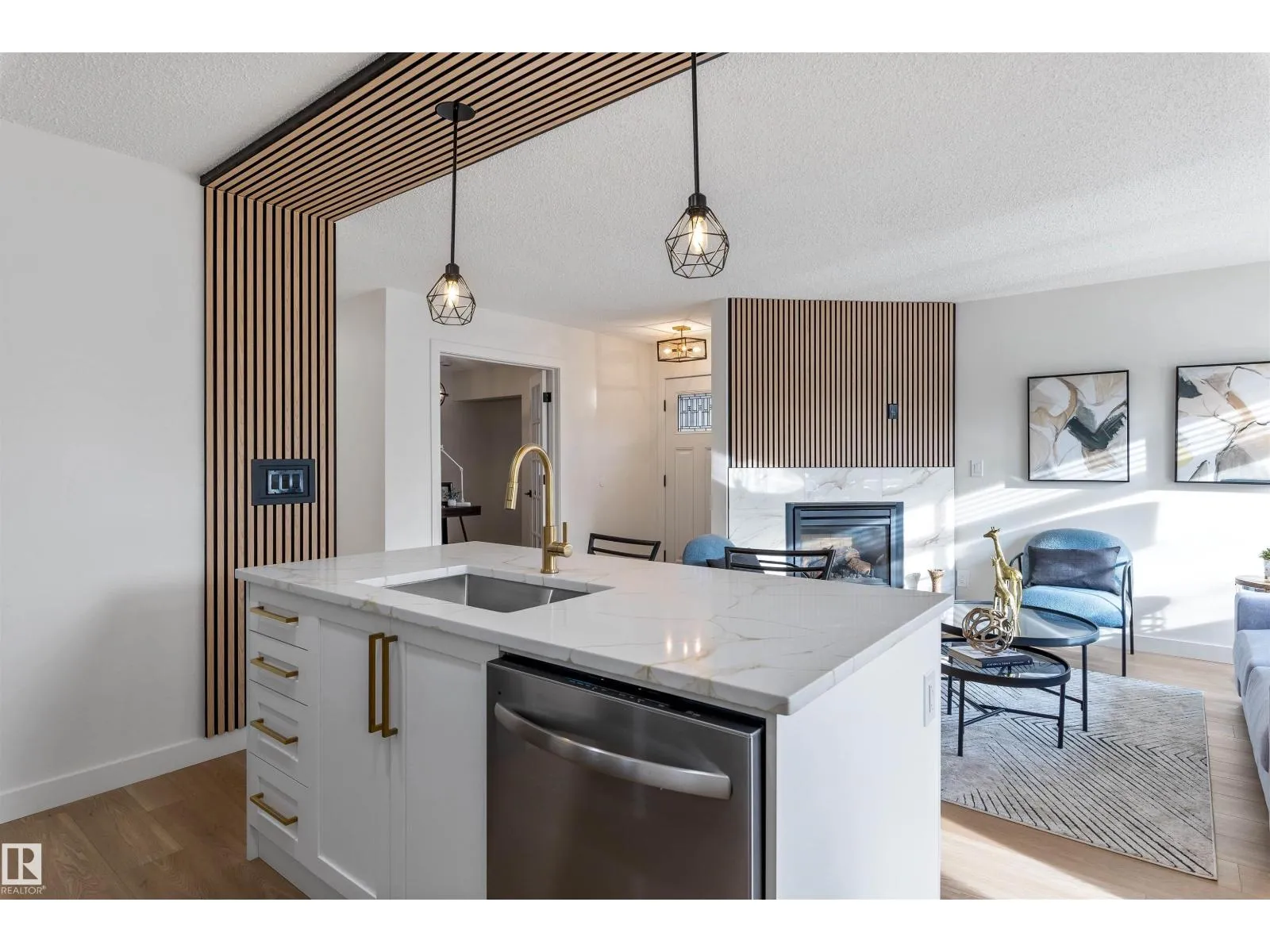 Discover this RENOVATED fully finished BUNGALOW in Grandin Estates. Siding onto GREENSPACE, this unit has an amazing location w/ a fenced yard & a large storage shed. The entrance enters into a modernized OPEN DESIGN. VINYL FLOORING spreads throughout the main floor. The kitchen has white cabinetry, QUARTZ COUNTERS, eating bar island, tiled back splash, pot/pan drawers, s/s appliances & more. The living room has large windows looking out front & a corner GAS F/P. There are double French doors off the entrance into the flex room, which makes an amazing office or an ADDITIONAL BEDROOM. The main bathroom is completely renovated w/ new cabinetry, tub/shower & fixtures. The spacious primary bedroom has double closets, sliding doors to a private back deck & a brand new 3pce ENSUITE. Across from the primary bedroom is the laundry. The basement is finished w/ a massive family room, 3pce bath & flex room. There are 2 assigned parking stalls in front of this unit! (id:27476)