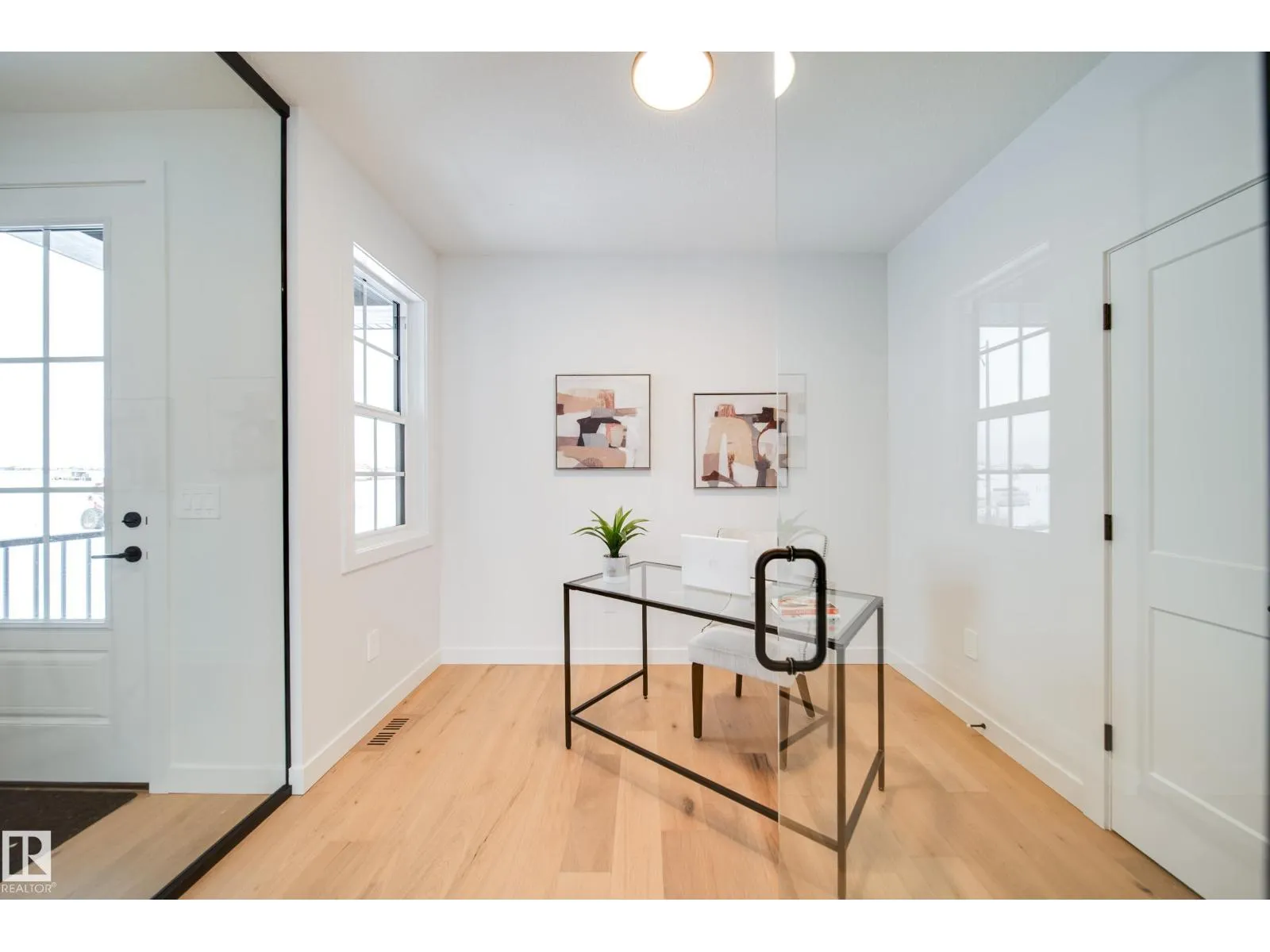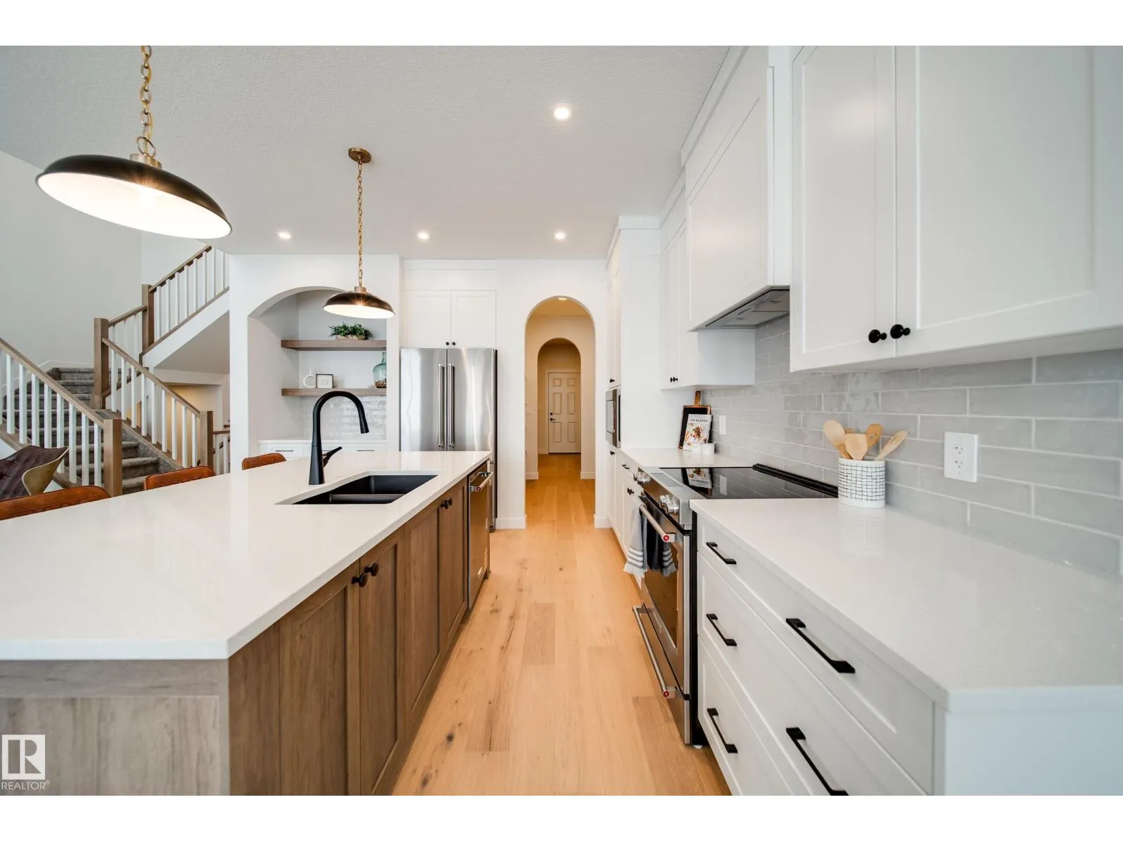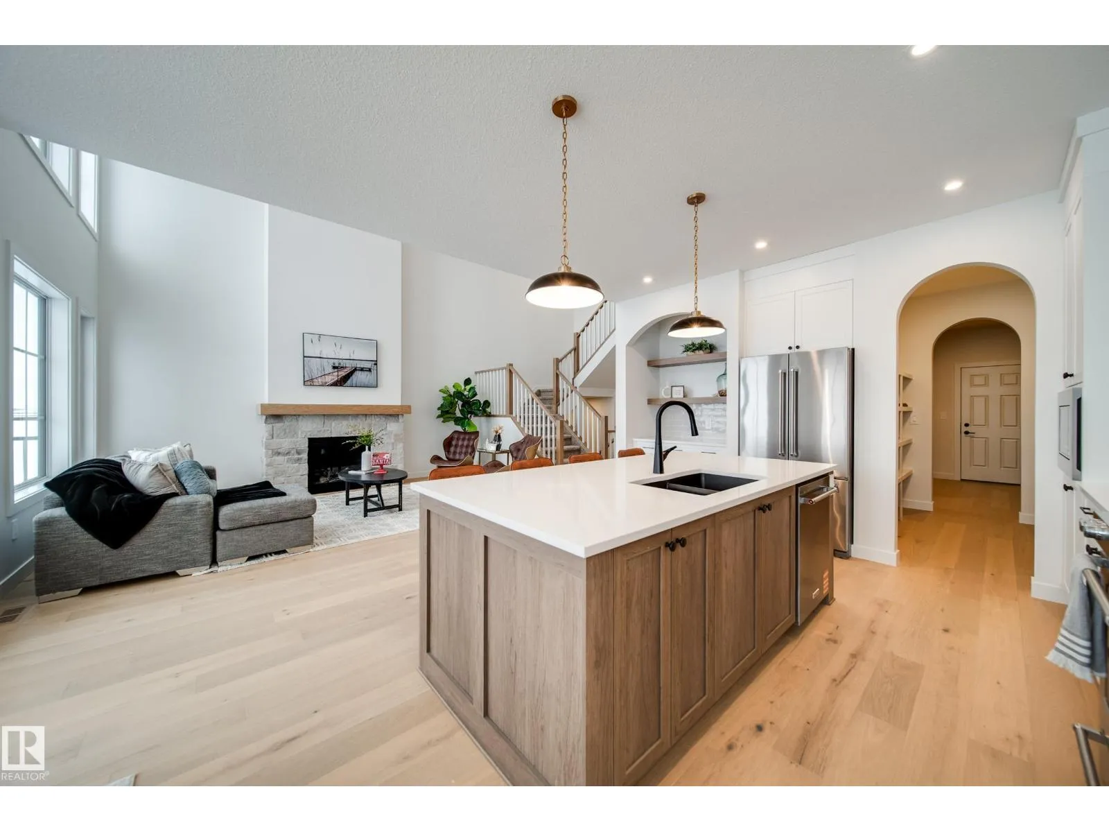 Welcome to The Vantablack by award winning Justin Gray Homes, situated on 30' pocket west facing POND BACKING WALKOUT lot in Cherot, offering 2519 sqft of refined living space in a professionally curated French Country palette by CM Interiors. Featuring soaring open-to-below ceilings, 9' ceilings & 8' doors on the main, HARDWOOD floors & a cozy GAS fireplace. The main floor den w/glass walls is perfect for a stylish home office. An OVERSIZED DOUBLE CAR GARAGE leads to a mudroom w/custom MDF built-ins. Through JGâs iconic archways, step into a WALKTHROUGH pantry & chefâs kitchen w/huge QUARTZ island w/premium dove-tailed cabinetry & full KitchenAid APPLIANCE PACKAGE INCLUDED. Enjoy sunset pond views off your 13'6 x 10' REAR DECK. Upstairs find 3 spacious bedrooms incld. a dreamy primary w/VAULTED ceilings & wainscoting wall feature, spa-like 5pc ensuite & massive WIC w/convenient direct access to the laundry room. Located near future schools, rec centre, parks & trails. Ready for IMMEDIATE possession! (id:27476)