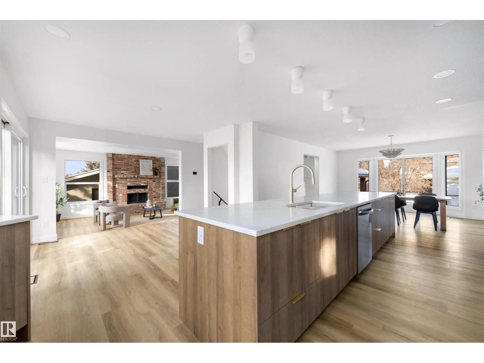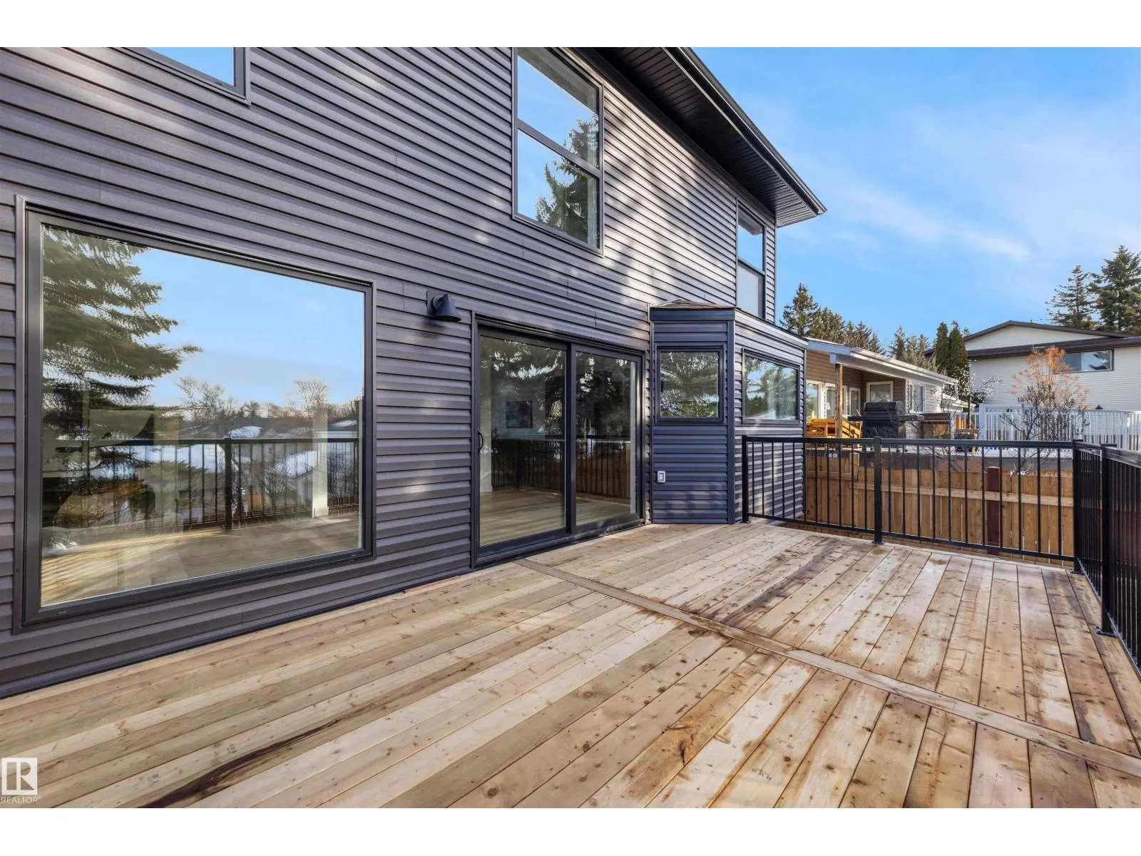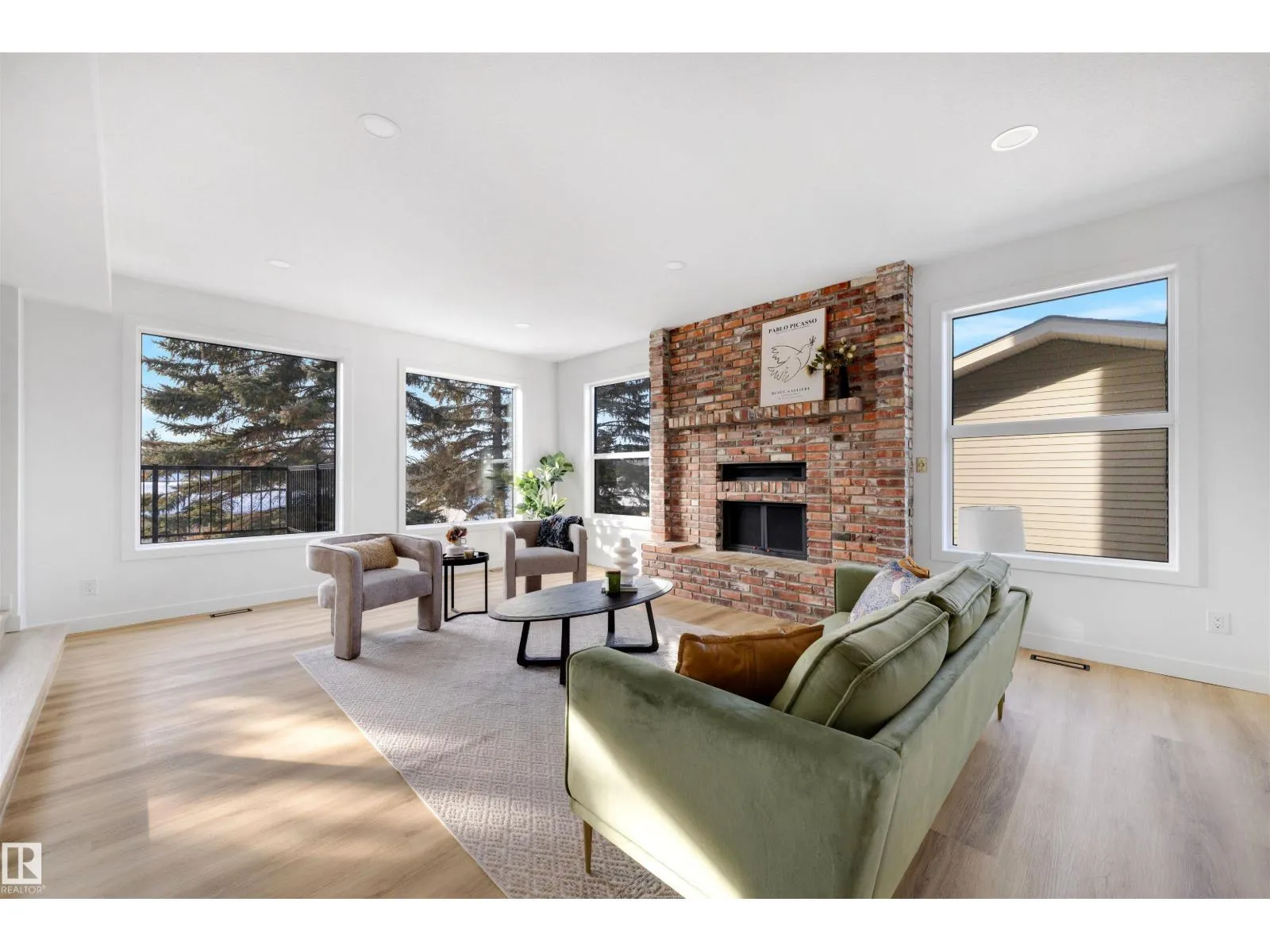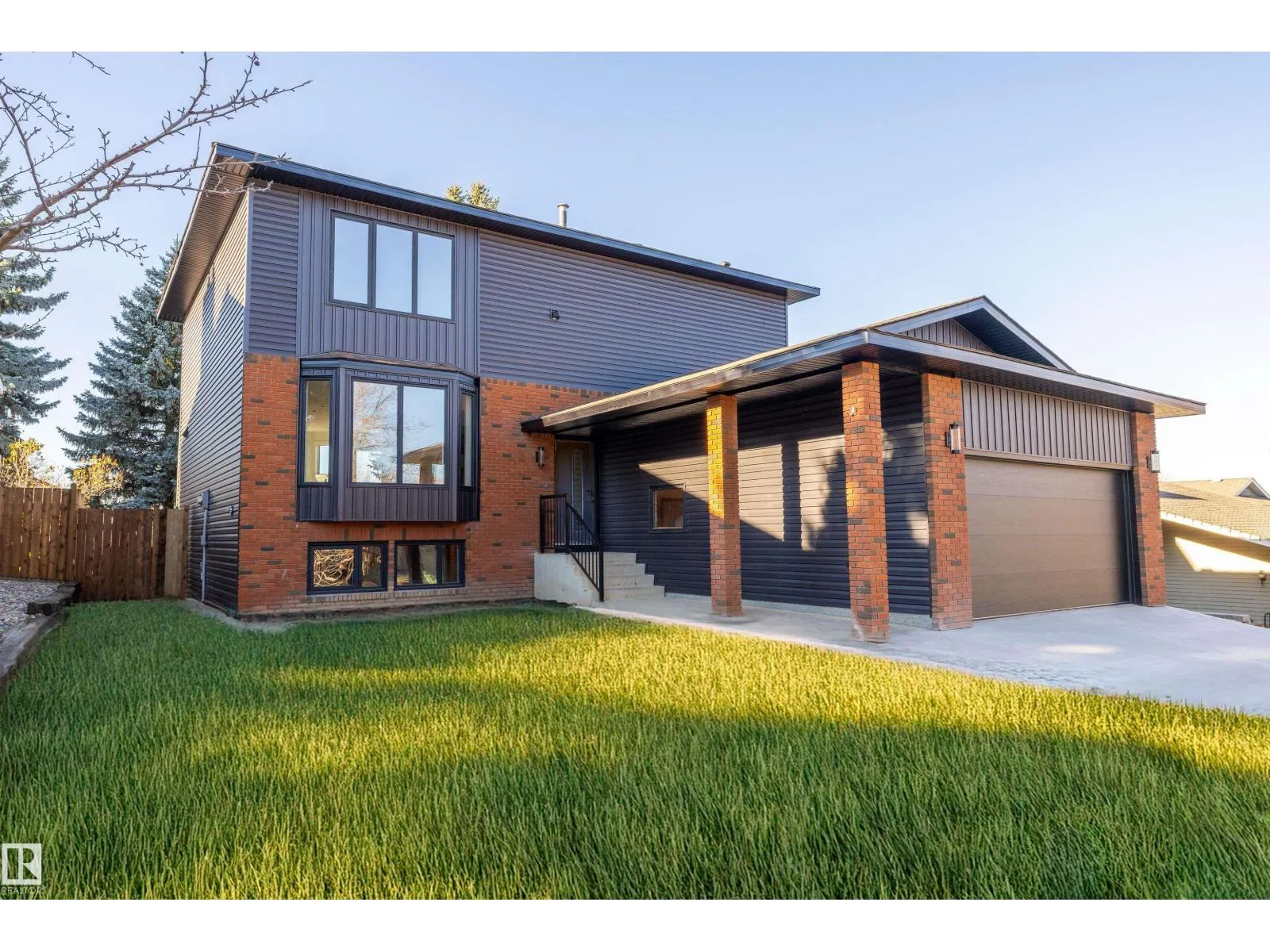 Welcome to this extensively renovated, high-end two-storey home in St. Albert offering over 2,450 sq ft of beautifully updated living space. Thoroughly upgraded it feels virtually brand new. Featuring 5 oversized bedrooms (3 up, 2 down), including a stunning primary suite with a gorgeous 4-piece ensuite, the layout offers ideal separation for living and entertaining. The chef-inspired kitchen showcases expansive prep space, abundant storage, large-format finishes, and generous bar seating, flowing seamlessly into the sunken living room with a striking brick fireplace & formal dining area. The fully finished walkout basement adds flexible space for a media room, games area, or guests. Upgrades include triple-pane windows, tankless water heater, high-efficiency dual zone furnace, central A/C, newer roof, new driveway, brand-new deck, and modernized interior and exterior finishes. Truly move-in ready luxury. This home delivers the rare opportunity to own a property that feels brand new â without the wait. (id:27476)