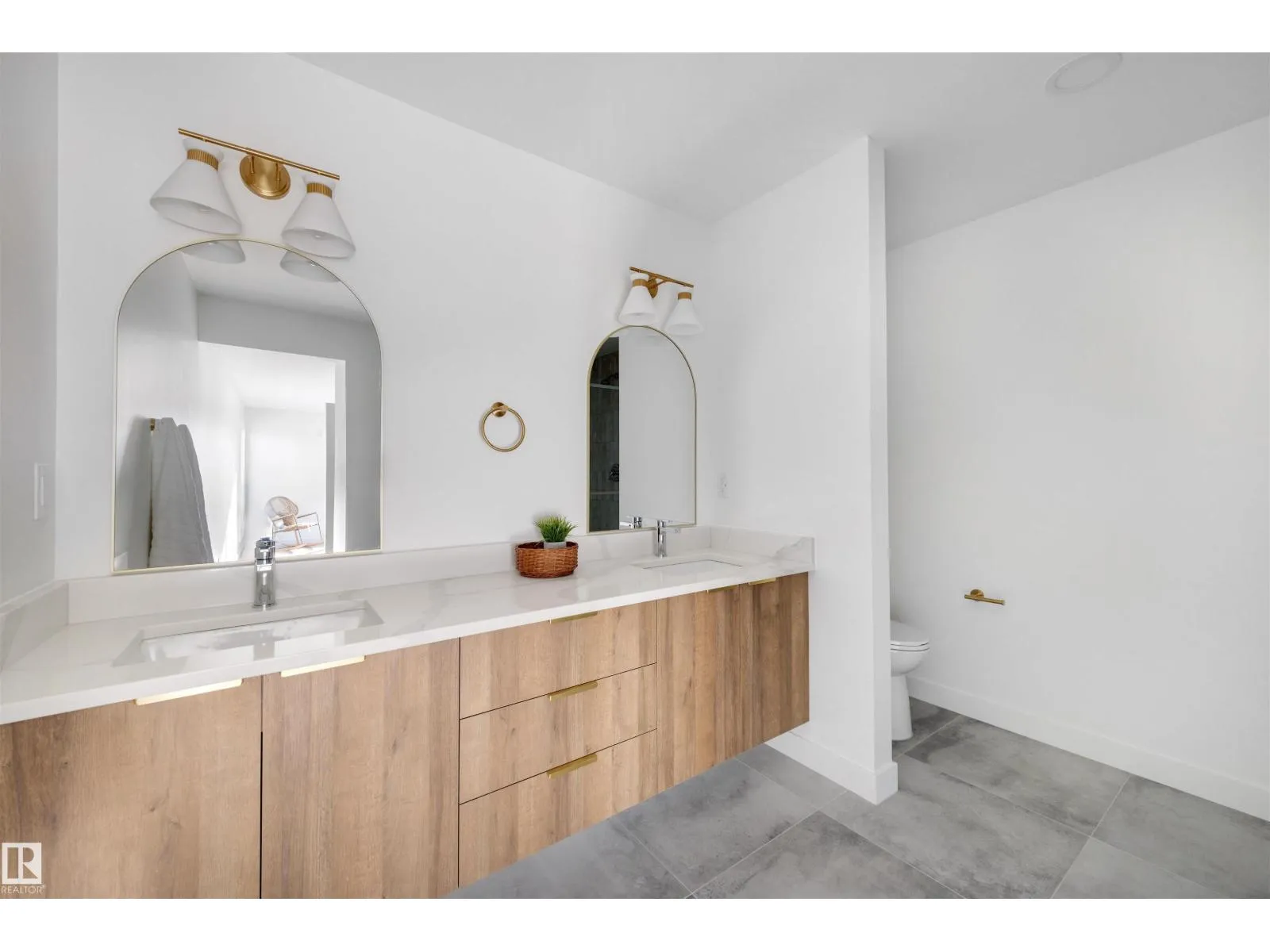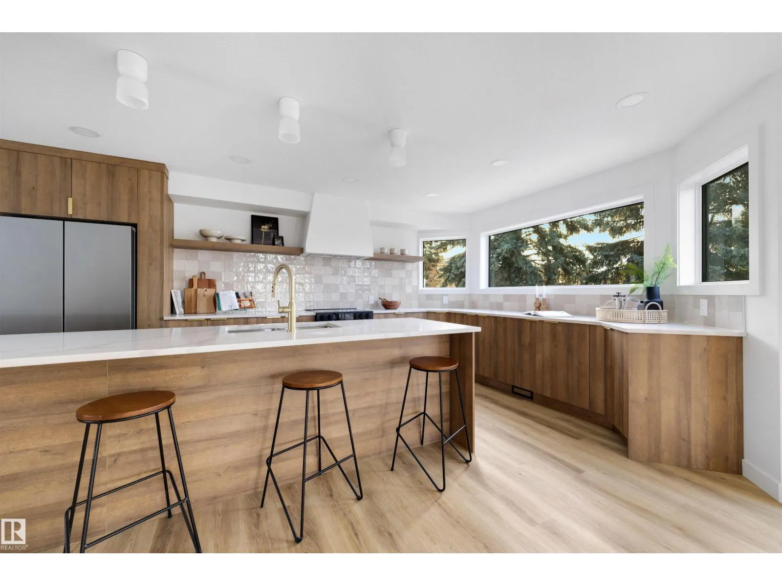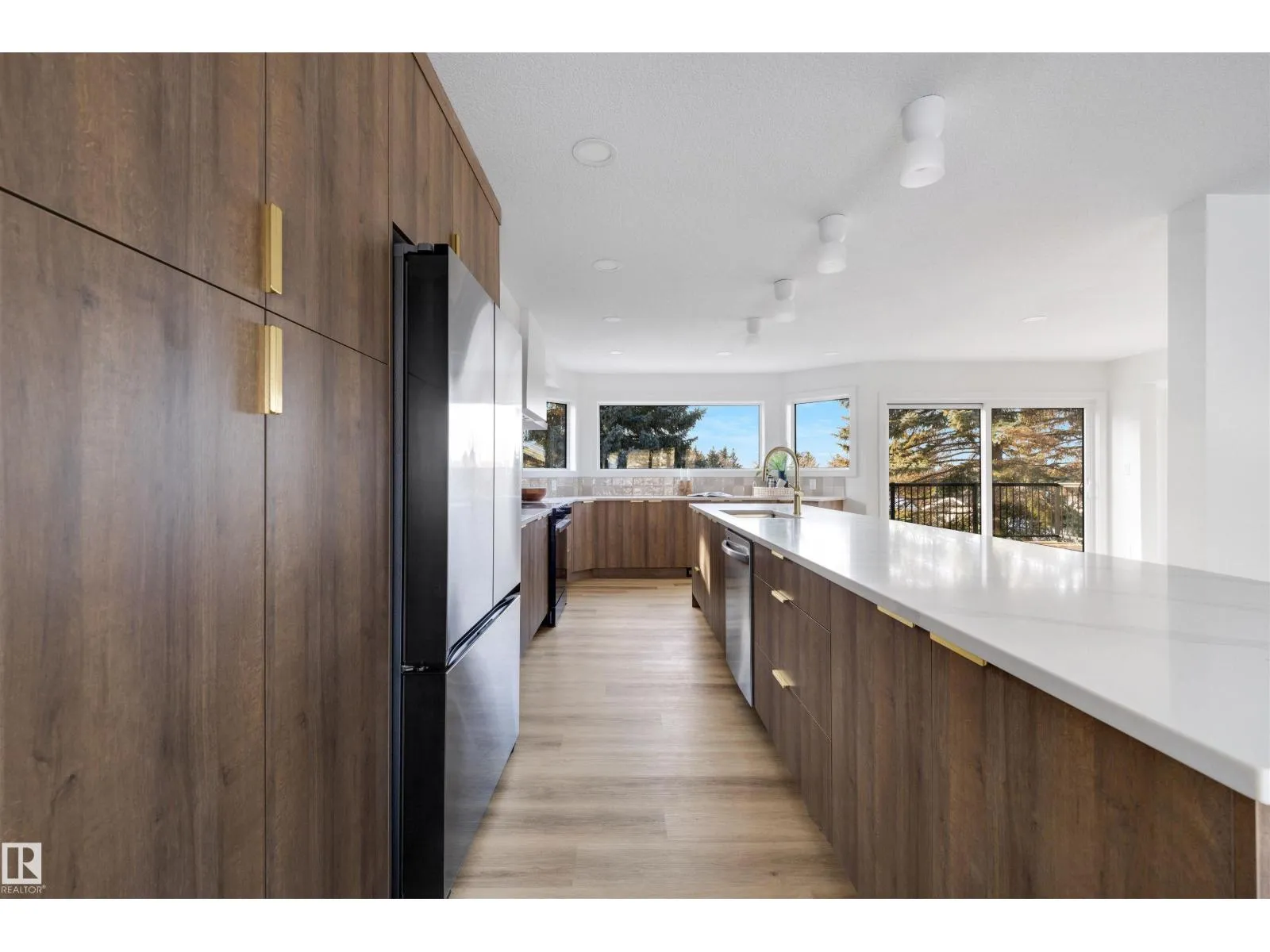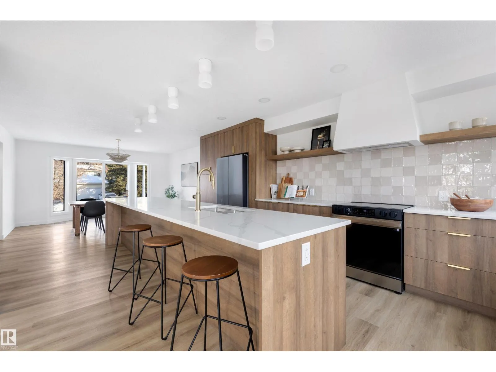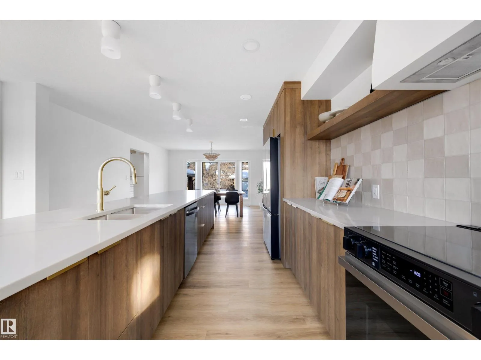 Welcome to this extensively renovated, high-end two-storey home in St. Albert offering over 2,450 sq ft of beautifully updated living space. Thoroughly upgraded it feels virtually brand new. Featuring 5 oversized bedrooms (3 up, 2 down), including a stunning primary suite with a gorgeous 4-piece ensuite, the layout offers ideal separation for living and entertaining. The chef-inspired kitchen showcases expansive prep space, abundant storage, large-format finishes, and generous bar seating, flowing seamlessly into the sunken living room with a striking brick fireplace & formal dining area. The fully finished walkout basement adds flexible space for a media room, games area, or guests. Upgrades include triple-pane windows, tankless water heater, high-efficiency dual zone furnace, central A/C, newer roof, new driveway, brand-new deck, and modernized interior and exterior finishes. Truly move-in ready luxury. This home delivers the rare opportunity to own a property that feels brand new â without the wait. (id:27476)