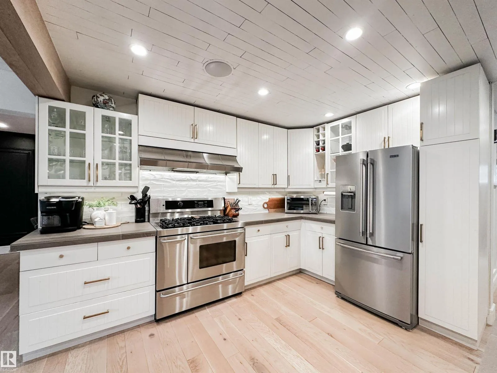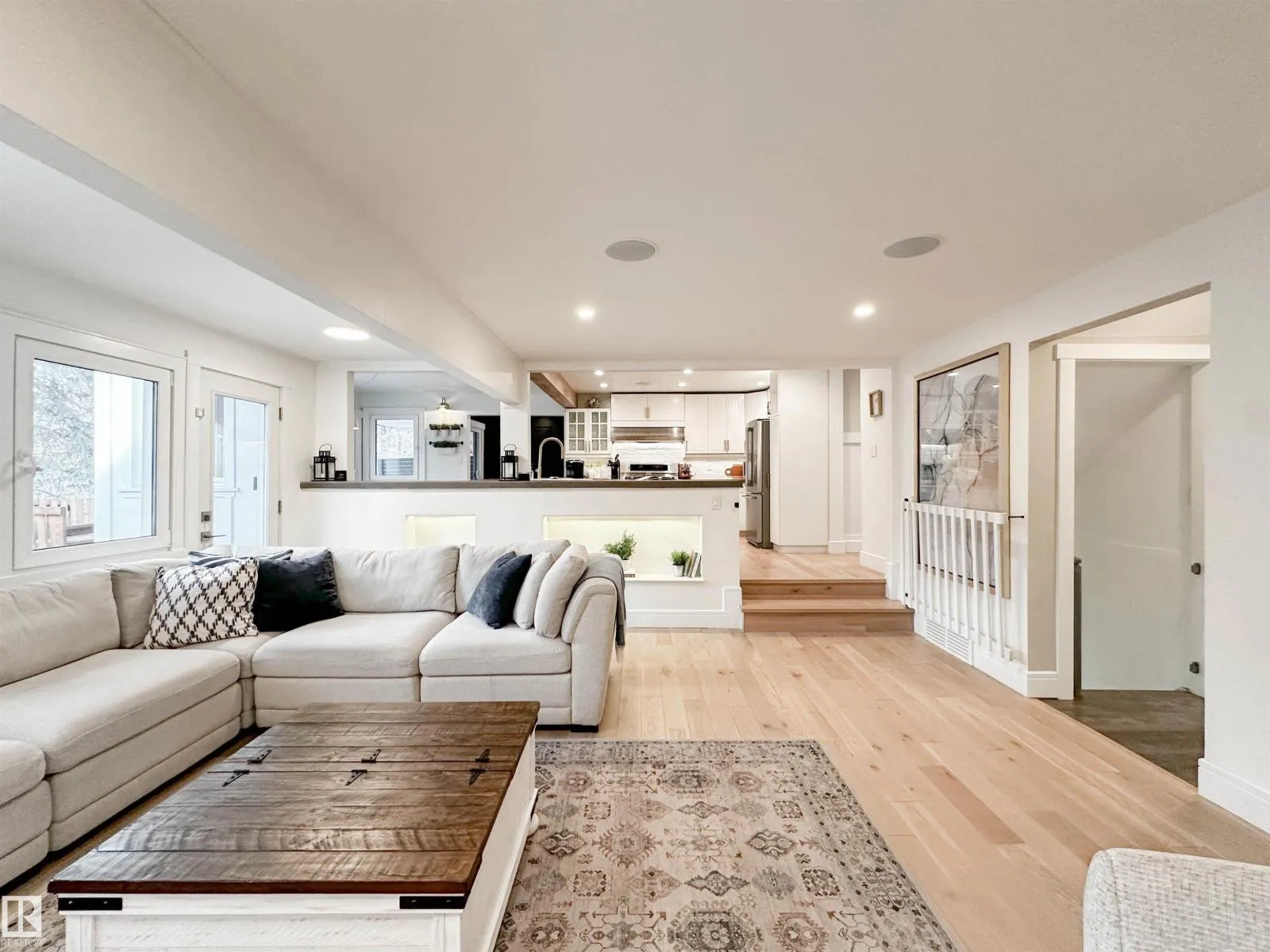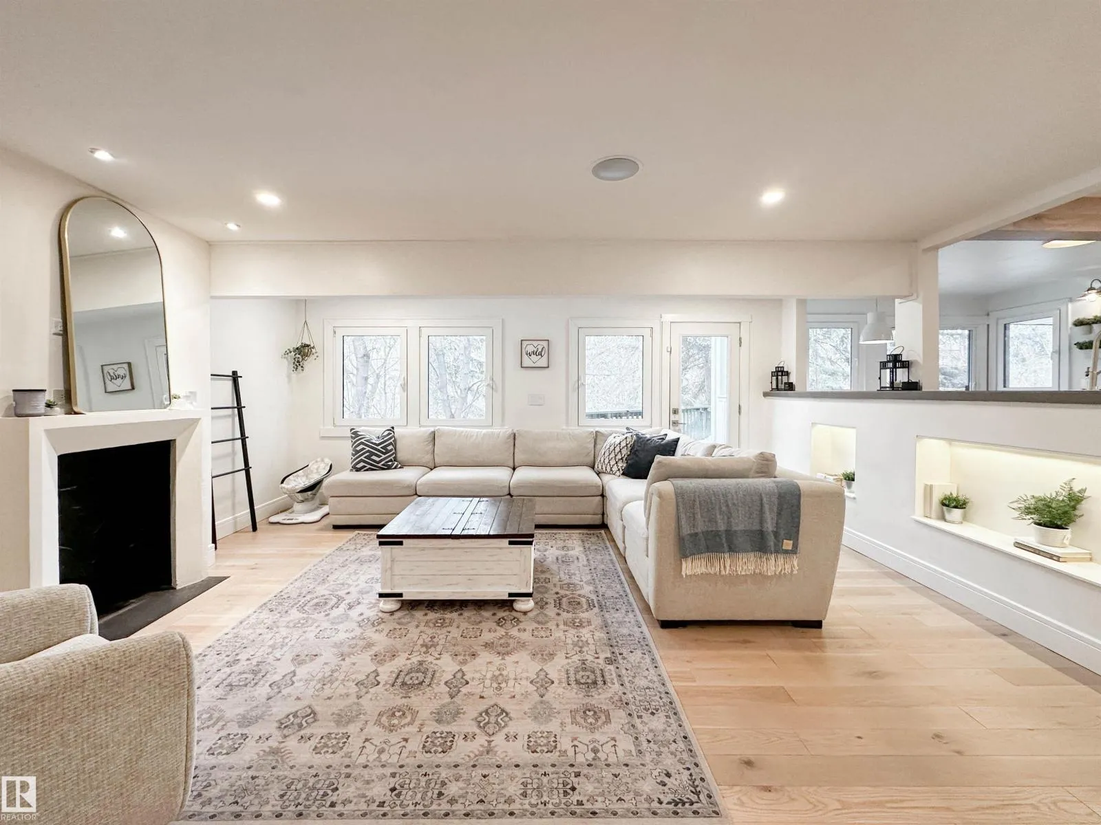 Welcome to this beautifully renovated Forest Lawn home, backing onto a peaceful ravine and located on a quiet, tree-lined street. This fully finished two-storey offers 5 bedrooms and a private, sunny west-facing backyard. The main floor features a bright open-concept layout with a stylish kitchen and cozy sitting nook, formal dining room, and spacious living area highlighted by a liquid-fuel fireplace. Direct deck access from the kitchen, dining, and living rooms makes entertaining effortless. A main-floor bedroom or office and 2pc bath complete this level. Upstairs offers a primary suite with 3pc ensuite & large barn door closet, plus two addâl bedrooms and a 4pc bath. The finished basement includes a bedroom, rec room, 3pc bath, laundry, and ample storage. Updates include shingles (2022), furnaces (2021), German tilt-turn windows, Hardie Board siding, new A/C, flooring, appliances, washer/dryer, basement bath renovation, built-in speakers, insulated heated garage, and updated driveway/sidewalk (2020). (id:27476)