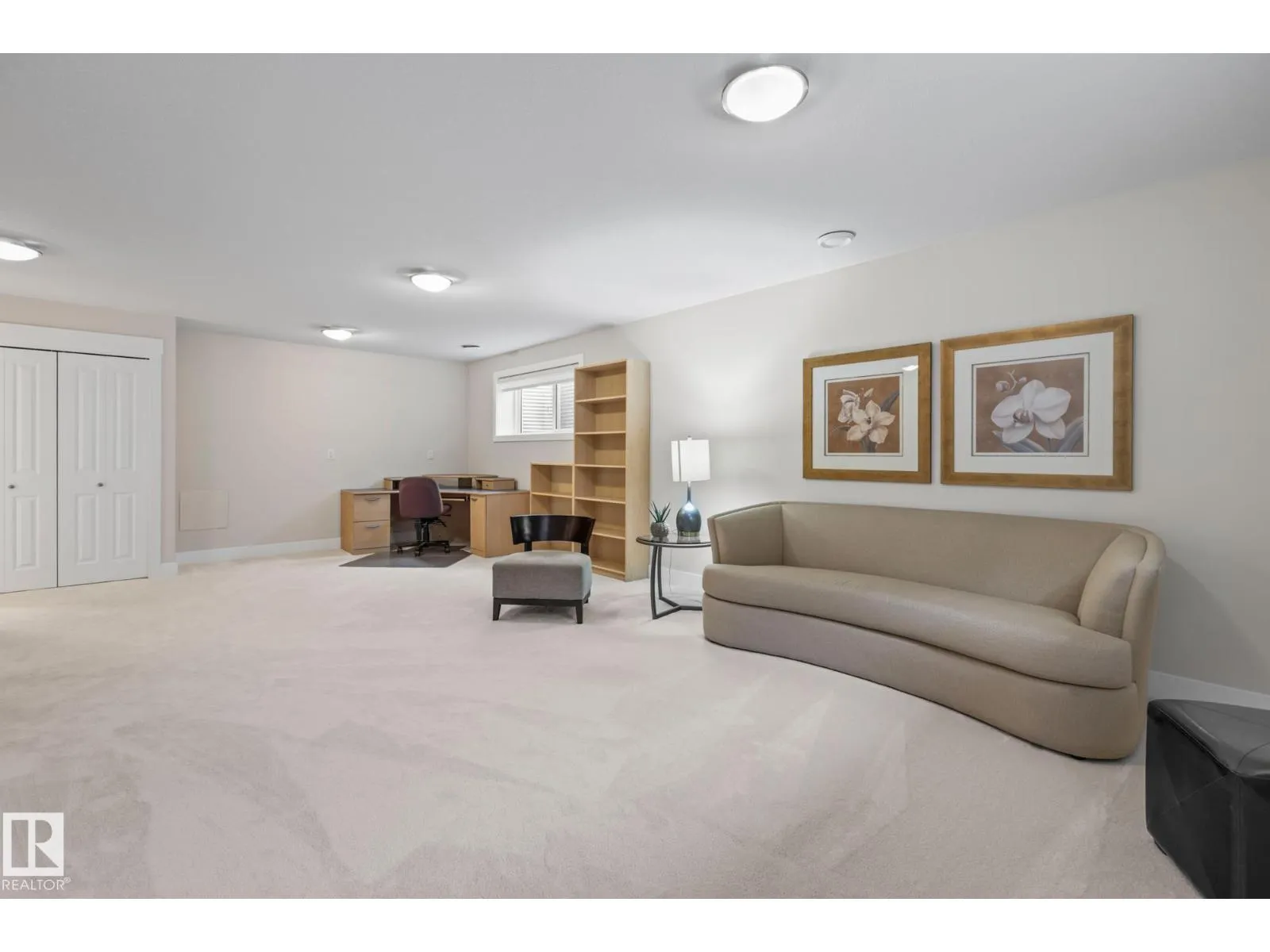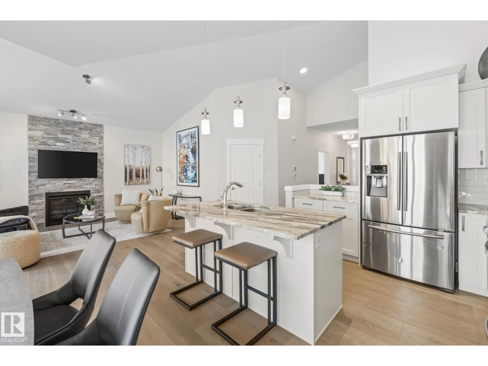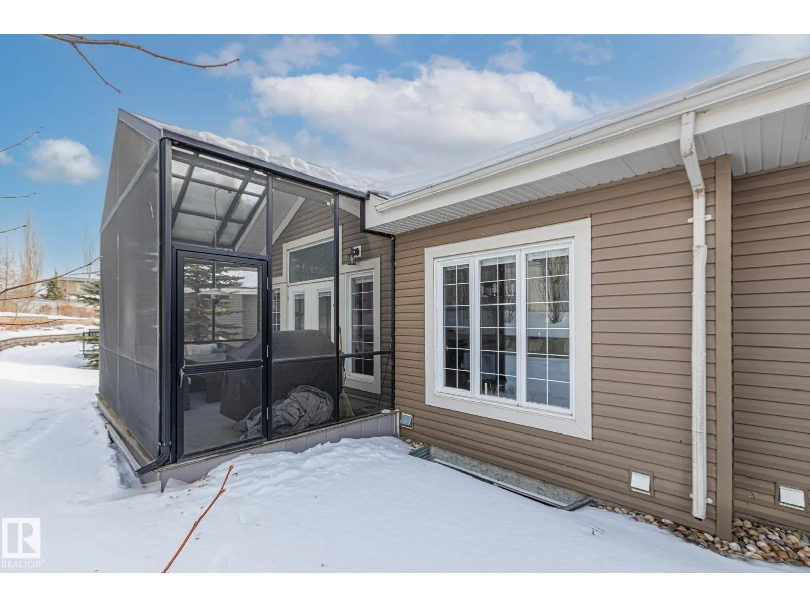At nearly 1300 Sq. Ft. this adult bungalow feels more like an upgrade than a downsize. The expansive vaulted ceilings over the open main living room plus tons of windows make this home feel massive. The island kitchen, ample dining and large living space bring the luxury. Plus enjoy summers on your screened patio featuring heater and space to BBQ. The primary suite has a large walk in closet and 4 pce en-suite featuring dual sinks. A cozy front den is perfect for kids sleepovers or as an office space. A main floor bath and laundry complete this floor. In the basement you are greeted with an over sized rec room perfect for hosting the family. Plus a full bath and additional bedroom offer space for guests to stay. Keep everything tidy with HUGE storage room and closet space throughout. A double attached garage keeps you vehicle out of the elements. Steps away is the Lacombe Lake Park and plenty of walking trails. Quick and easy access to the Henday and shopping round out this wonderful home! (id:27476)