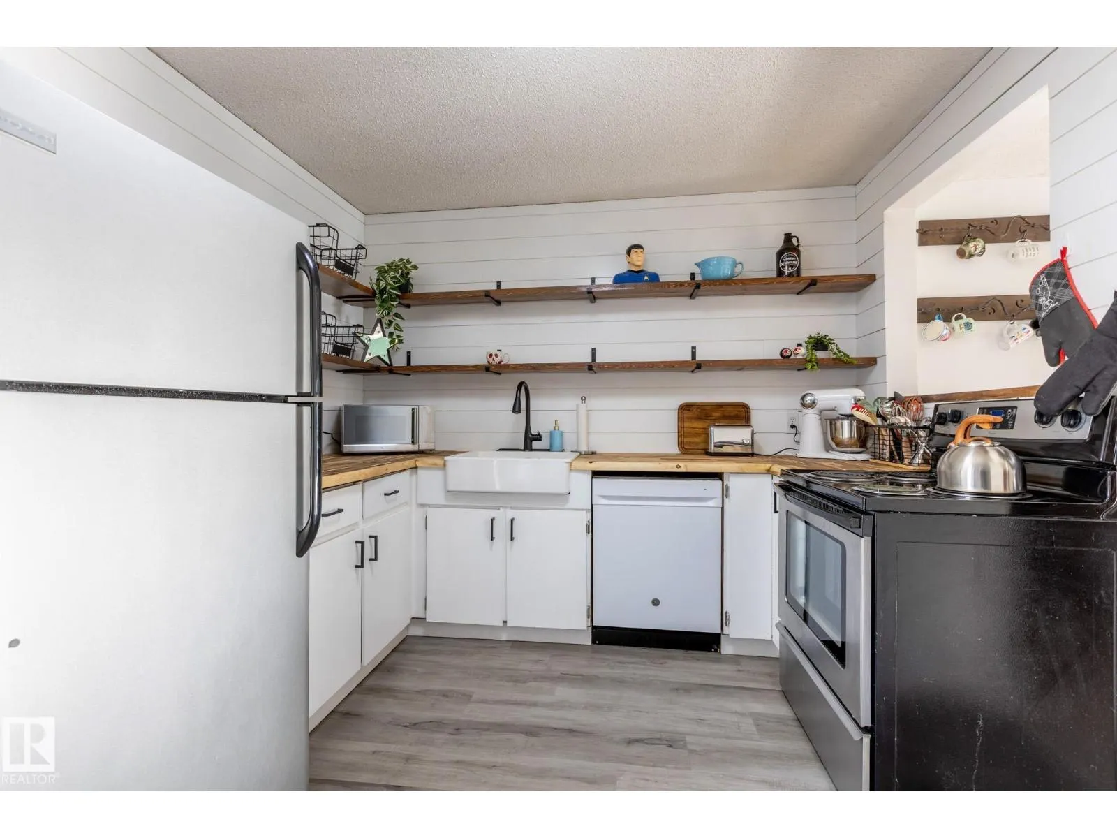 Welcome Home! This cute as a button townhouse in Greenfield Estates is ready for a new owner today! Boasting 4 bedrooms (one bedroom currently used as the primary walk in closet) and 3 bathrooms, it is a great size for a working professional, working couple or young family. The kitchen boasts new butcher block counters, a newer dishwasher (2024) and open shelving. The main floor has vinyl plank flooring and an open concept living and dining space. Upstairs has bright and cheerful newly painted bedrooms, a 4 piece bath and a 2 piece ensuite in the primary. Downstairs has a large recreation space with brand new laminate floors, a new washer (2025), a newer dryer (2024) and HWT (2020). The location can't be beat-close to schools, shopping, the Anthony Henday and 170th Street. (id:27476)