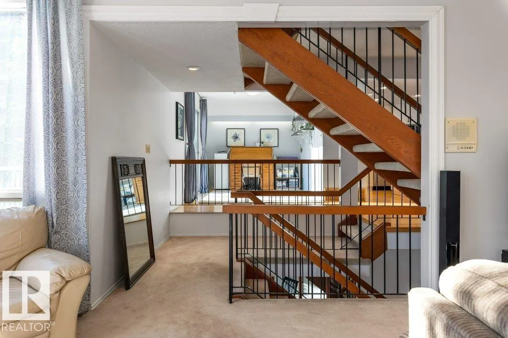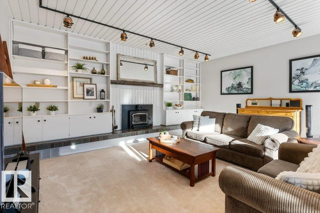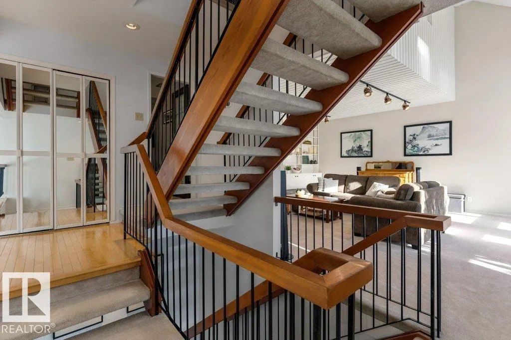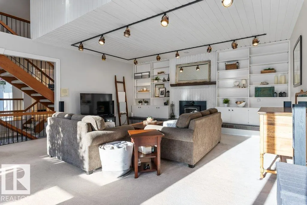 Full of charm & character! This almost 2300sqft home is a true gem. Enter the spacious front entry with access to the OVERSIZED Double Attached Garage. Just off the entrance is a large family room with screen & projector, perfect for family movie nights! The main level has an amazing living room with soaring VAULTED CEILINGS, cozy fireplace, custom built-ins & is full of natural light. There is a front flex room, dining room, office or sitting room with patio doors to a front deck, updated WHITE kitchen with GRANITE countertops, backsplash & a large dining nook. Off the kitchen is a MAIN FLOOR LAUNDRY ROOM & renovated 1/2 bath. Upstairs are three large bedrooms. The two secondary bedrooms have VAULTED ceilings & one has an extra den, perfect crafting, gaming or quiet work spot! The primary bedroom has 3pce ensuite & double closets, Completing the second floor is a 5pce main bathroom. Situated on a large, beautifully landscaped lot, steps to parks, schools & Grosvenor pool. CENTRAL A/C on the upper level! (id:27476)