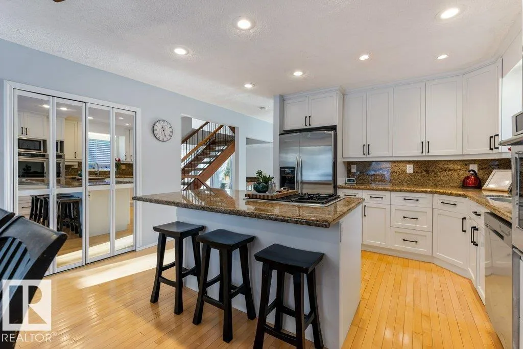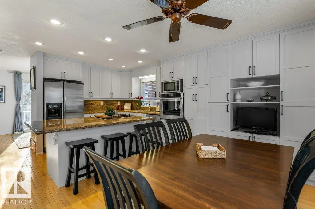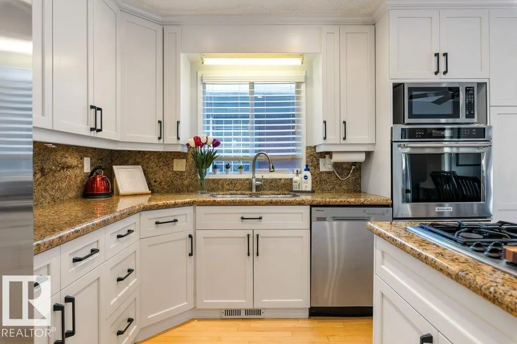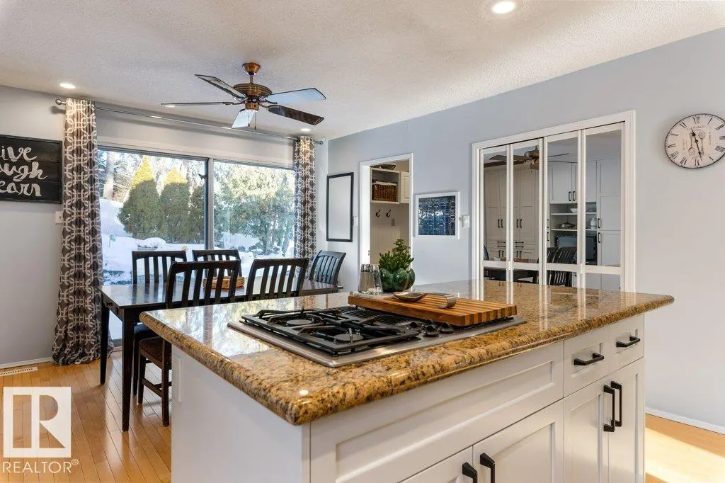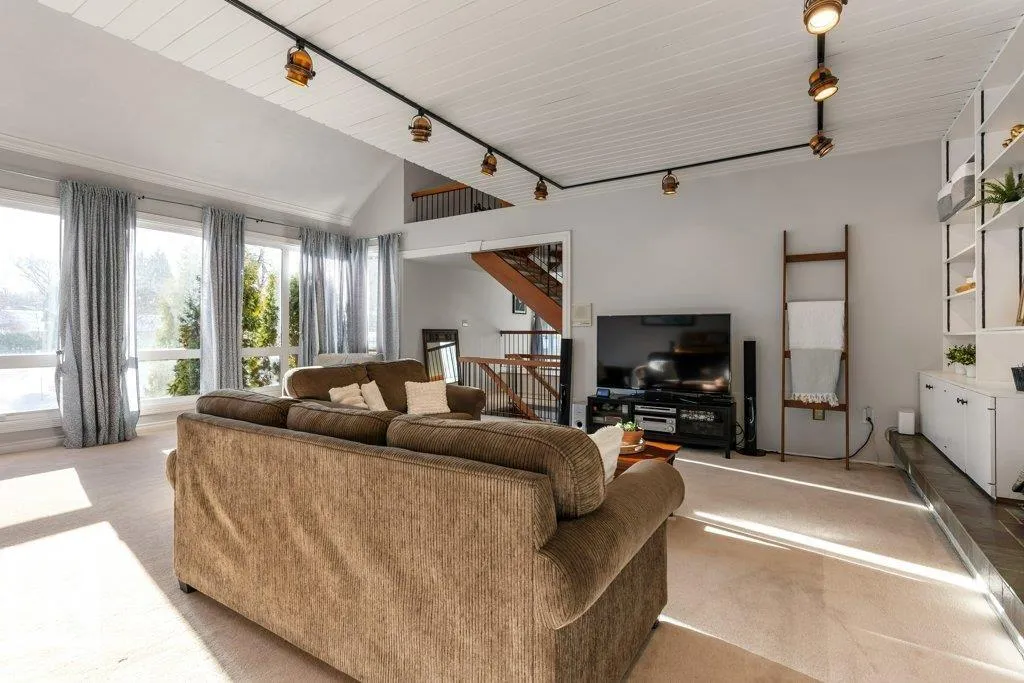 Full of charm & character! This almost 2300sqft home is a true gem. Enter the spacious front entry with access to the OVERSIZED Double Attached Garage. Just off the entrance is a large family room with screen & projector, perfect for family movie nights! The main level has an amazing living room with soaring VAULTED CEILINGS, cozy fireplace, custom built-ins & is full of natural light. There is a front flex room, dining room, office or sitting room with patio doors to a front deck, updated WHITE kitchen with GRANITE countertops, backsplash & a large dining nook. Off the kitchen is a MAIN FLOOR LAUNDRY ROOM & renovated 1/2 bath. Upstairs are three large bedrooms. The two secondary bedrooms have VAULTED ceilings & one has an extra den, perfect crafting, gaming or quiet work spot! The primary bedroom has 3pce ensuite & double closets, Completing the second floor is a 5pce main bathroom. Situated on a large, beautifully landscaped lot, steps to parks, schools & Grosvenor pool. CENTRAL A/C on the upper level! (id:27476)