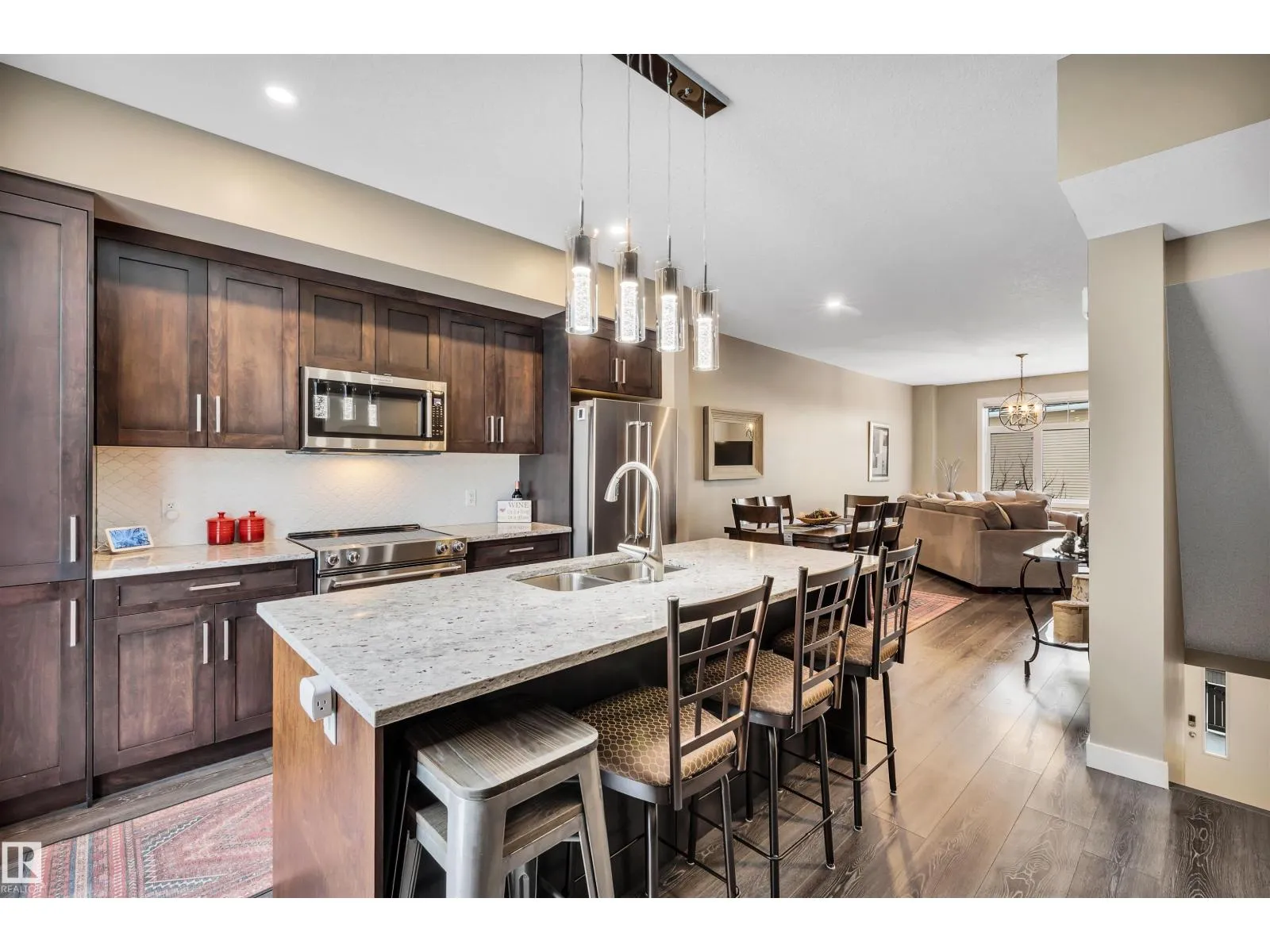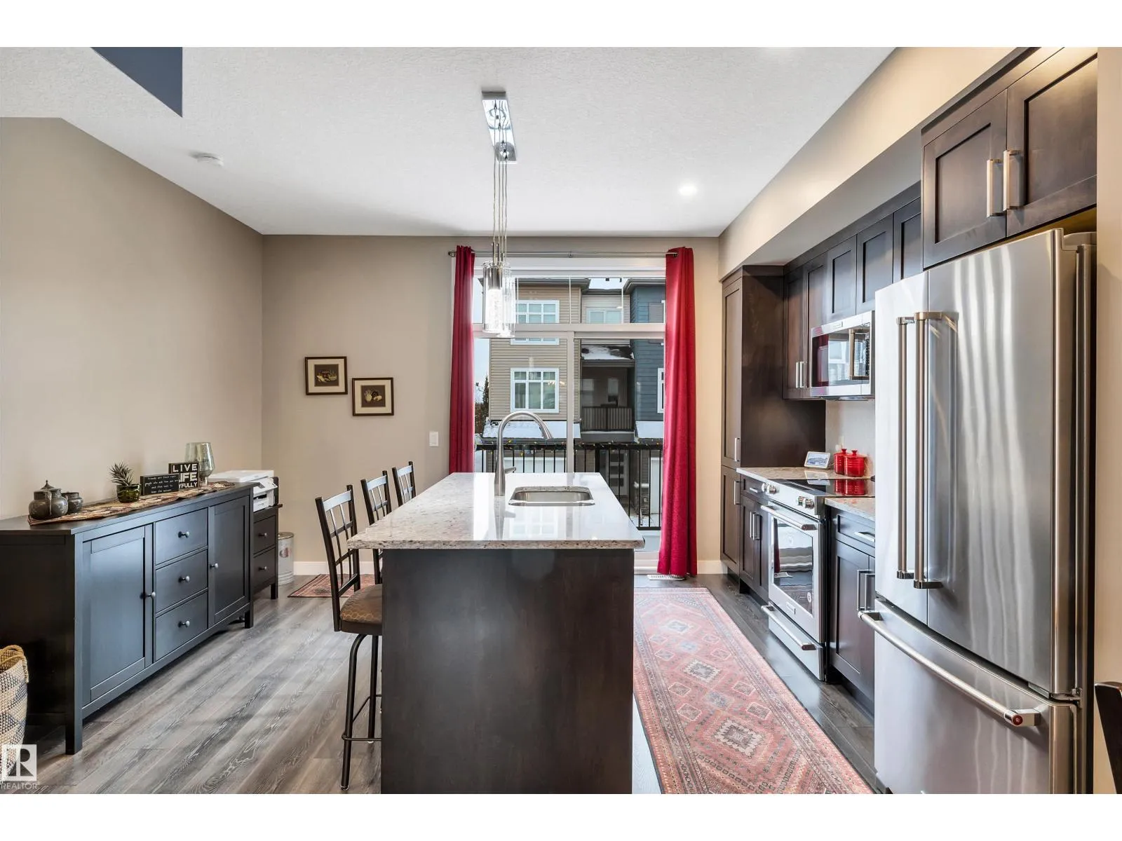 Beautifully kept 1472 sq. ft. townhome in Oakmont that feels brand new! With 9â ceilings and large windows throughout, this unit is bright and spacious. The main level features vinyl plank flooring through the living room, dining room and kitchen which has quartz countertops, stainless steel appliances, tile backsplash and a large island! A south facing balcony with gas BBQ hookup is accessible from the kitchen. The top level has 2 large bedrooms and 2 full bathrooms, plus laundry with newer washer and dryer. The lower level has access to the oversized, single attached garage as well as a flex area that is perfect for your home gym, office or 3rd bedroom. A fenced yard landscaped with turf is perfect for your 4-legged friend! Central A/C. Close to the Sturgeon River and walking trails. (id:27476)