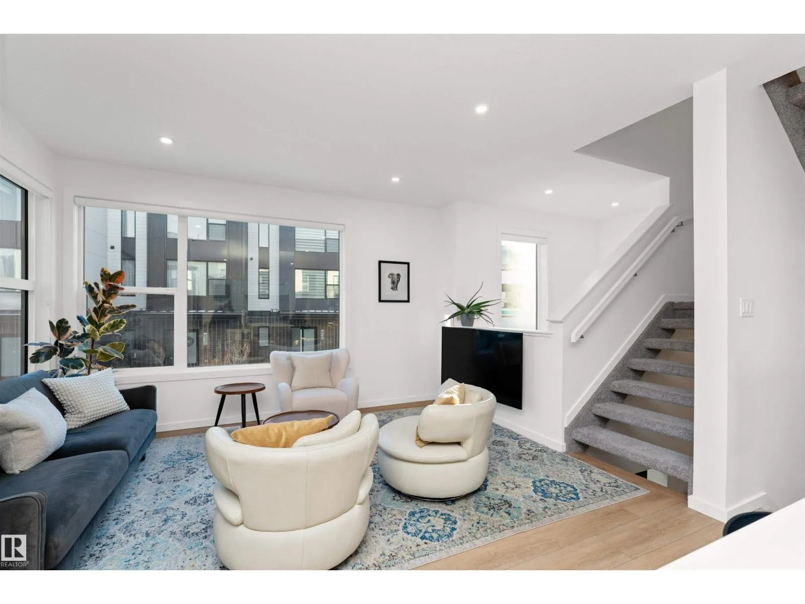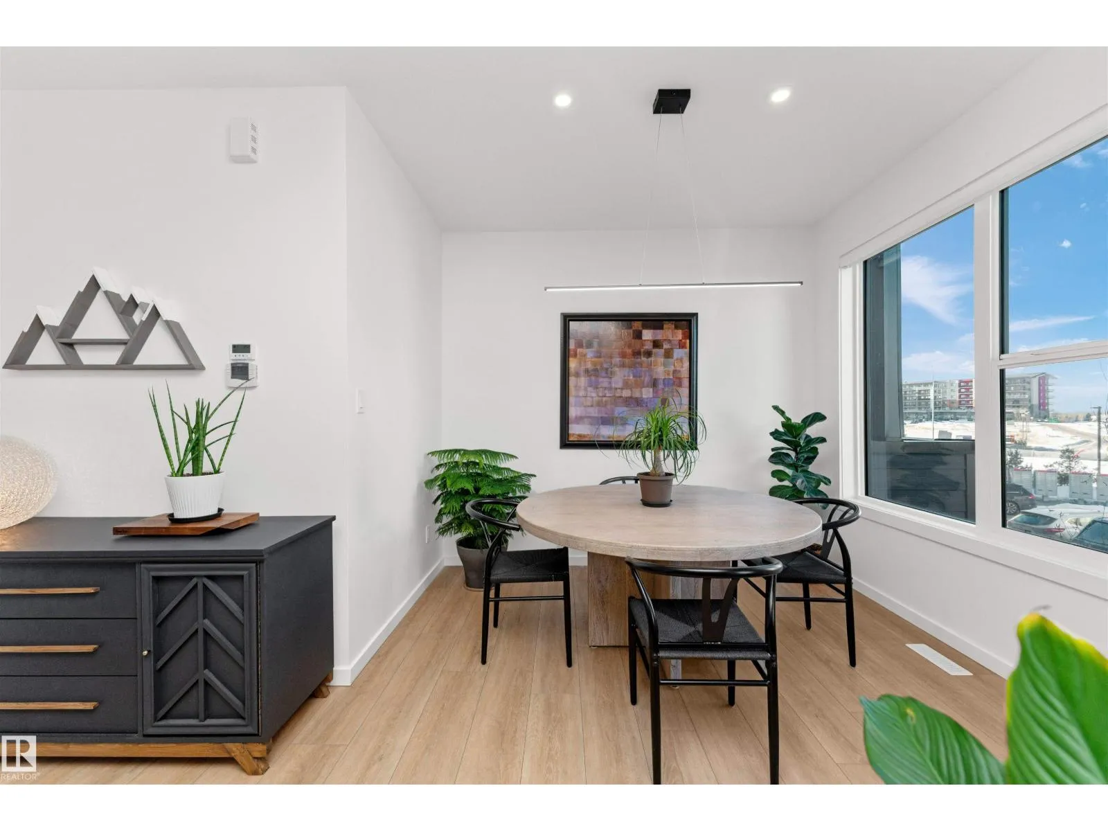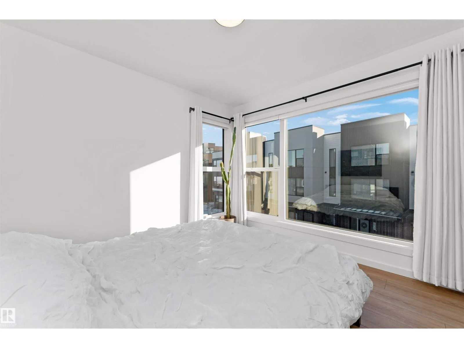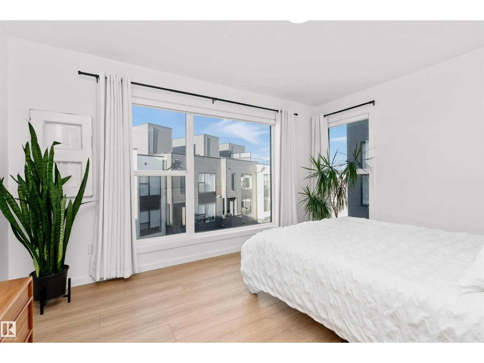 This exceptional end-unit, corner townhome offers 1,775ft2 of contemporary living, thoughtfully designed for those who appreciate elevated finishes, & effortless indoor-outdoor living. With 9ft ceilings & expansive windows, the main level is flooded w/ natural light, creating a sophisticated & inviting atmosphere. At the centre of the home is a chef-inspired kitchen, full-depth custom cabinetry with open shelving, quartz counters, outdoor deck, & upgraded LG Smart appliances. An open-concept layout flows into the dining & living areas, enhanced by luxury vinyl plank flooring that offers both elegance & durability. The upper level is a private retreat, offering two large bedrooms & upgraded full-size laundry room. The ground floor is a versatile flex space provides the perfect setting for home office or fitness studio. Addt. upgrades include central AC & custom blackout & privacy blinds. With west-facing exposure, the oversized rooftop patio is a true showpiece. Welcome to Midtown, welcome home. (id:27476)