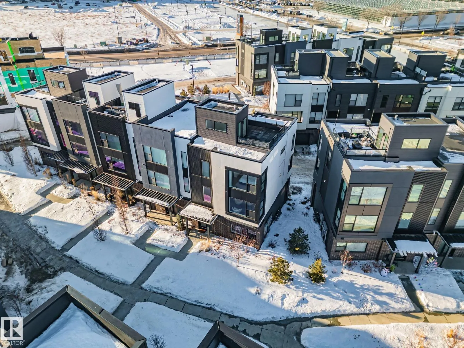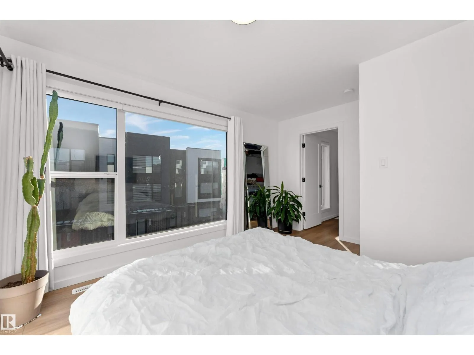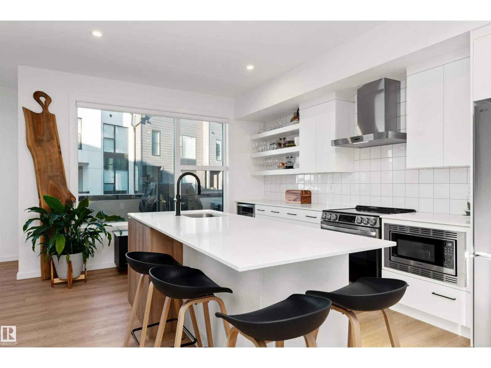 This exceptional end-unit, corner townhome offers 1,775ft2 of contemporary living, thoughtfully designed for those who appreciate elevated finishes, & effortless indoor-outdoor living. With 9ft ceilings & expansive windows, the main level is flooded w/ natural light, creating a sophisticated & inviting atmosphere. At the centre of the home is a chef-inspired kitchen, full-depth custom cabinetry with open shelving, quartz counters, outdoor deck, & upgraded LG Smart appliances. An open-concept layout flows into the dining & living areas, enhanced by luxury vinyl plank flooring that offers both elegance & durability. The upper level is a private retreat, offering two large bedrooms & upgraded full-size laundry room. The ground floor is a versatile flex space provides the perfect setting for home office or fitness studio. Addt. upgrades include central AC & custom blackout & privacy blinds. With west-facing exposure, the oversized rooftop patio is a true showpiece. Welcome to Midtown, welcome home. (id:27476)