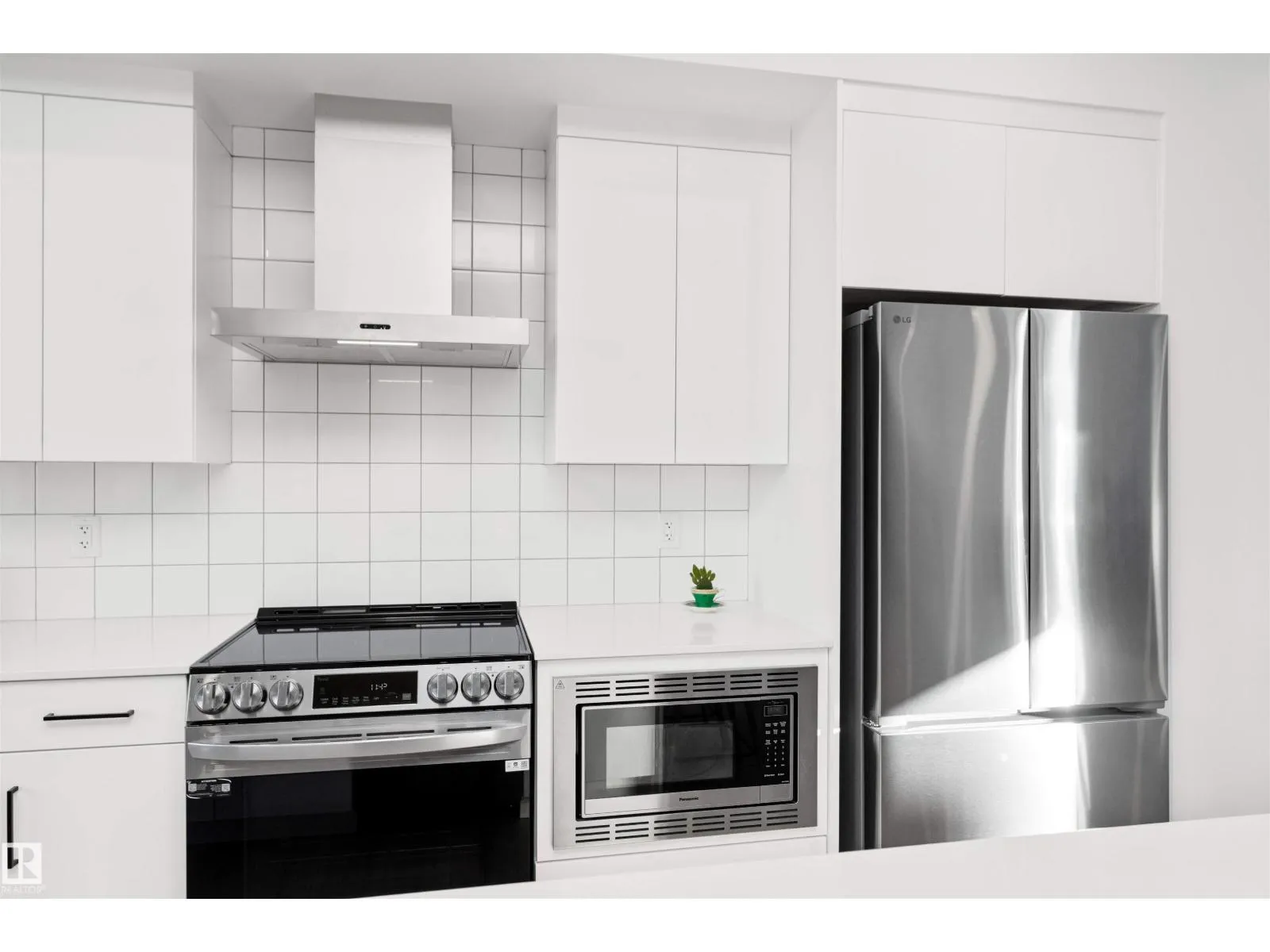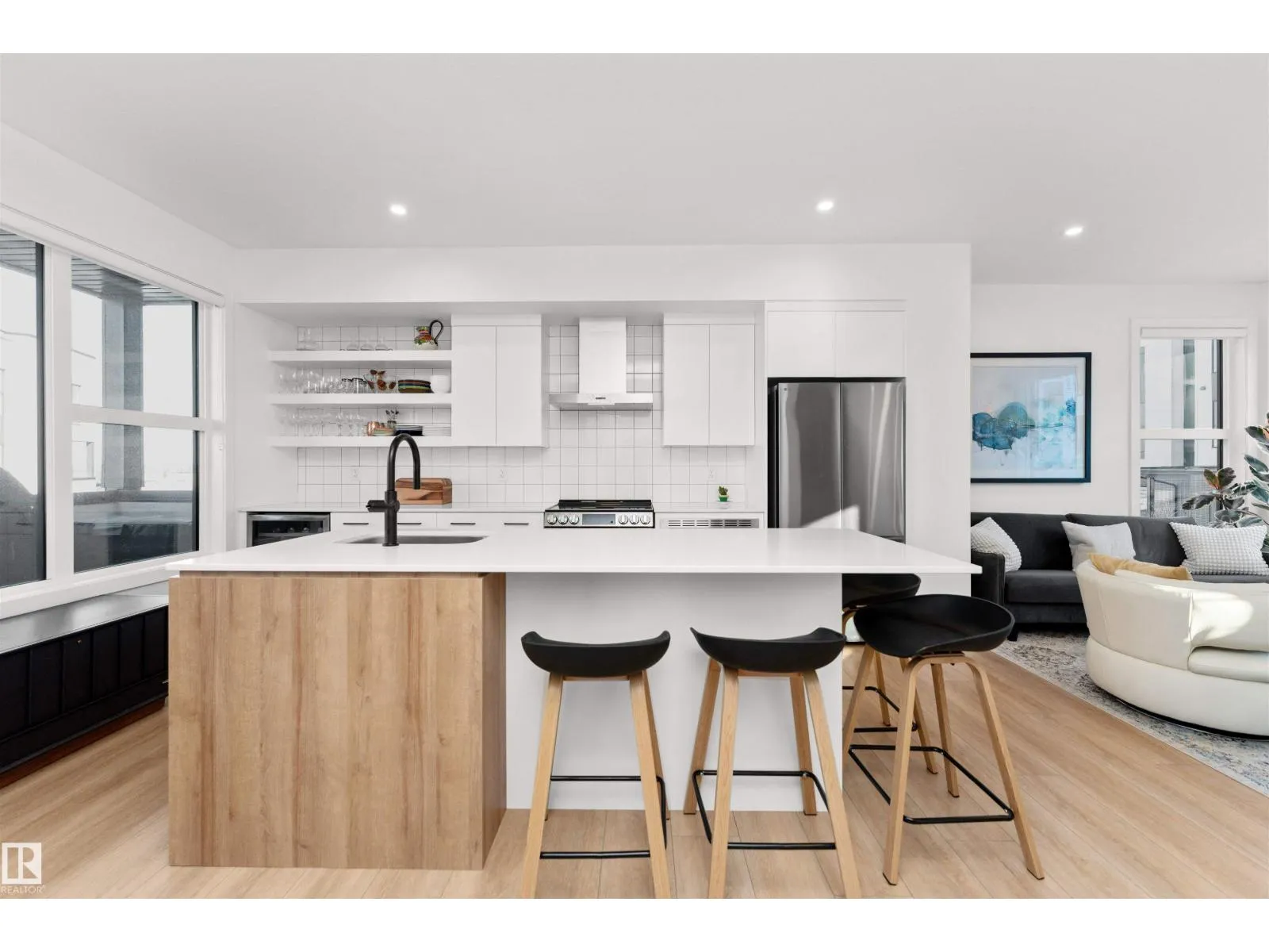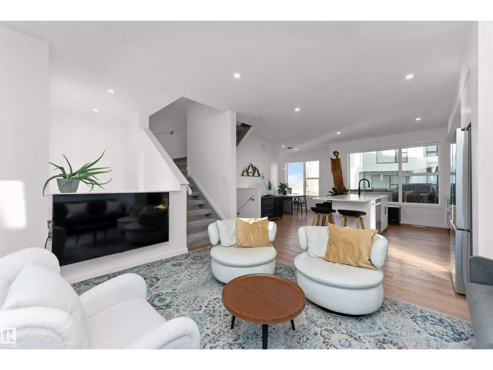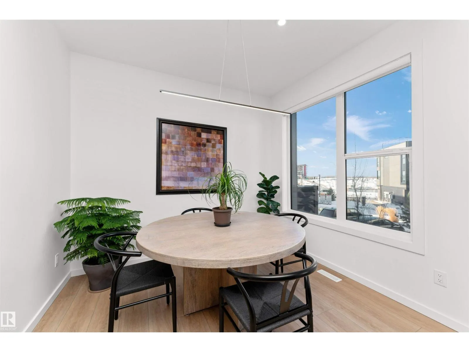 This exceptional end-unit, corner townhome offers 1,775ft2 of contemporary living, thoughtfully designed for those who appreciate elevated finishes, & effortless indoor-outdoor living. With 9ft ceilings & expansive windows, the main level is flooded w/ natural light, creating a sophisticated & inviting atmosphere. At the centre of the home is a chef-inspired kitchen, full-depth custom cabinetry with open shelving, quartz counters, outdoor deck, & upgraded LG Smart appliances. An open-concept layout flows into the dining & living areas, enhanced by luxury vinyl plank flooring that offers both elegance & durability. The upper level is a private retreat, offering two large bedrooms & upgraded full-size laundry room. The ground floor is a versatile flex space provides the perfect setting for home office or fitness studio. Addt. upgrades include central AC & custom blackout & privacy blinds. With west-facing exposure, the oversized rooftop patio is a true showpiece. Welcome to Midtown, welcome home. (id:27476)