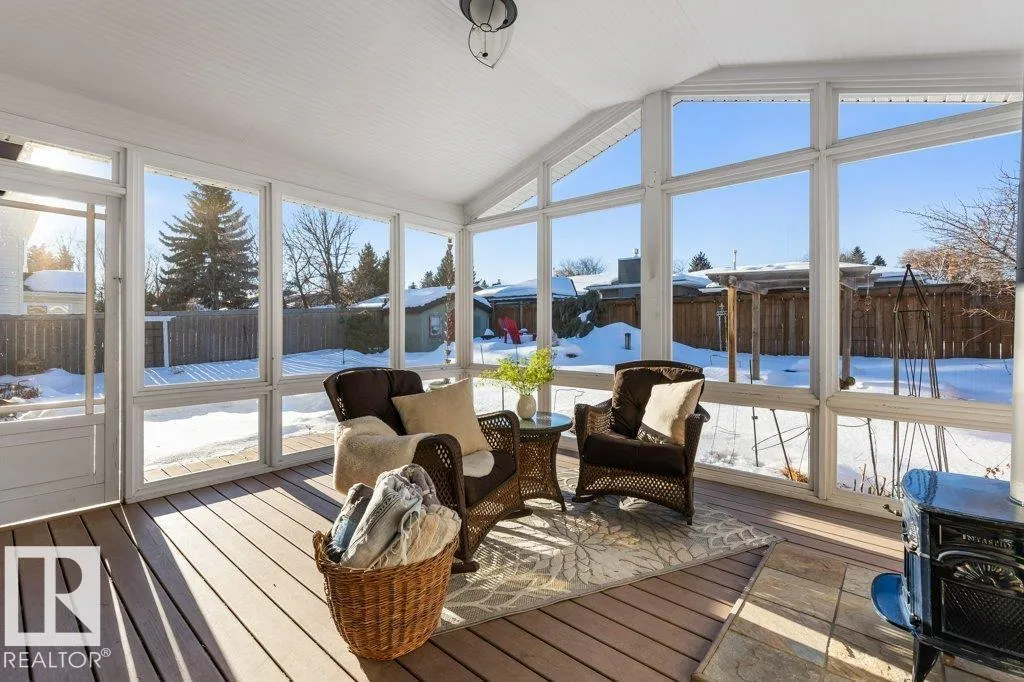 Welcome to this beautifully upgraded 2,320 sq ft home in the heart of Woodlands! With 4 bedrooms + 3.5 baths, thereâs space for family, guests & work-from-home needs. Step inside to warm, inviting living spaces including a front living room, formal dining room & a chefâs kitchen w/gas range overlooking a cozy family room w/gas f/p. From here, walk out to the screened 3-season room featuring a wood stove & maintenance-free deckâperfect for relaxing or entertaining. Upstairs, unwind in the stunning primary suite w/a spa-style ensuite including barrier-free shower, plus a dream laundry & dressing room. 2 additional bdrms & a luxurious main bath w/jacuzzi, separate shower & water closet complete this level. Throughout, youâll appreciate the high-end metal-clad Marvin windows & doors, heated bath floors, & newer furnaces & AC. Outside, the yard offers newer fencing & professionally designed perennial gardens w/tranquil pond and waterfall. A basement workshop w/access to the attached garage completes this home! (id:27476)