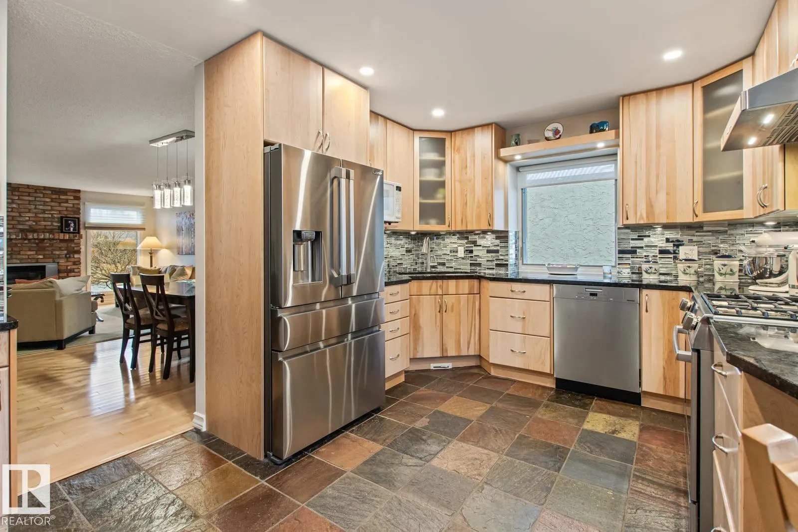 ONE OF A KIND! Set on a quiet close, steps from schools, parks, river trails & Woodlands Water Park, this extensively upgraded, original-owner home offers refined living in an exceptional location. A sun-filled living & dining space leads to a stunning chefâs kitchen with granite counters, glass tile backsplash, elegant cabinetry & premium stainless appliances. A primary bedroom with 3 pc ensuite, 2 more spacious bedrooms & 4 pc bath complete the main level. The lower level expands your lifestyle with a large rec room for entertaining or cozy movie nights, a 4th bedroom, 3 pc bath/laundry area, den & flexible space for hobbies, gaming, or workouts. Major improvements include kitchen, appliances, flooring, paint, lighting, gas F/P, windows, doors, central A/C, tankless hot water, roof, siding, driveway, paths & patio. The SW facing backyard oasis is perfect for relaxing or gathering with family & friends. Enjoy the tranquil setting filled with flower beds, perennials, mature shrubs, and trees. (id:27476)