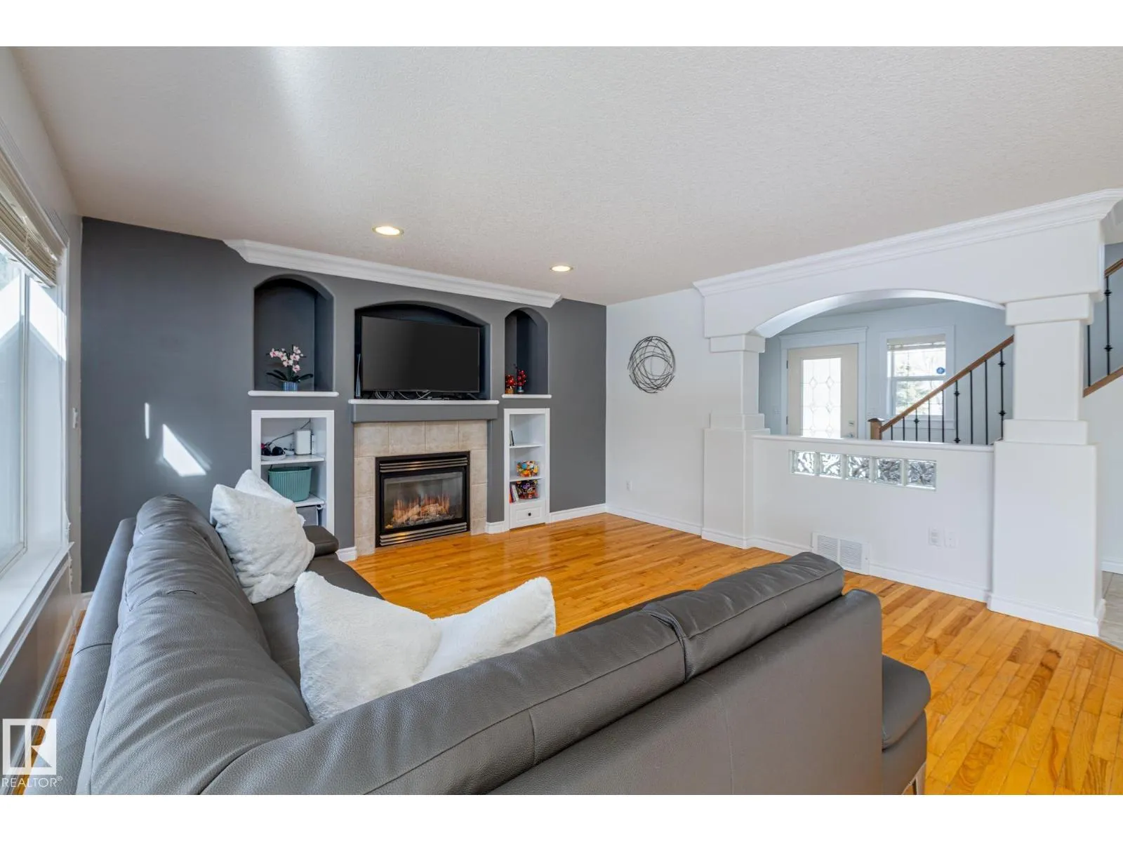 Welcome home to Erin Ridge, one of St. Albert's most sought after communities. This beautifully maintained 4 bedroom, 2.5 bath home is designed for everyday family life, offering over 3000 sq. ft. of functional living space, including a fully finished basement. The bright, open-concept main floor features beautiful hardwood flooring and a cozy electric fireplace, creating a warm and inviting space for everyday living. Upstairs you will find a MASSIVE bonus room, ideal for movie nights in or a kids playroom. The west-facing backyard features a large deck with a gazebo, perfect for summer entertaining. Additional features include: fresh paint (2025), a newer furnace, A/C, and an oversized garage. Conveniently located in the heart of St. Albert, close to parks, playgrounds, schools, and shopping, this is the perfect place to call home. (id:27476)