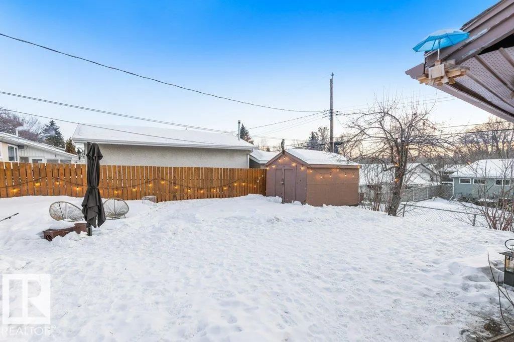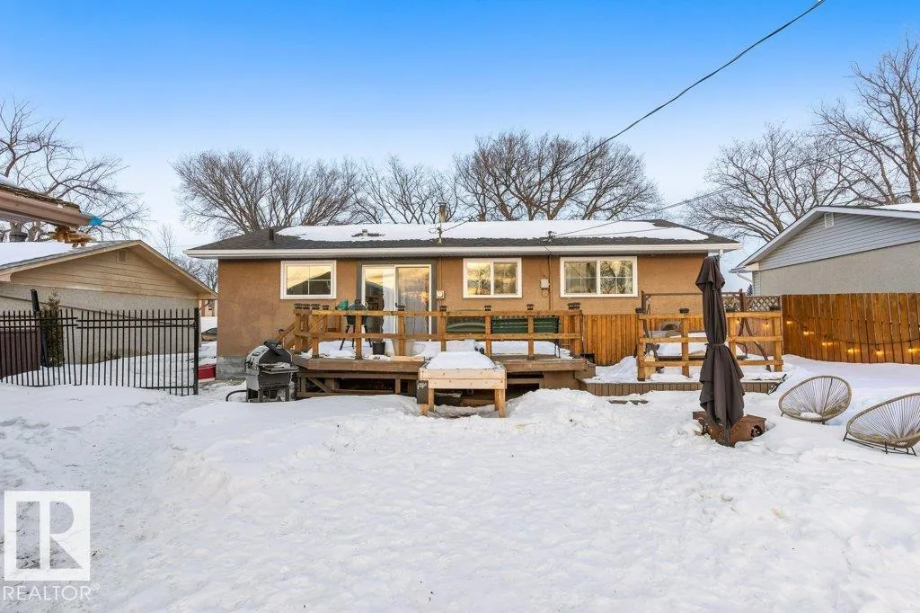 Welcome to this well-maintained 1,018 sq. ft. bungalow, perfectly situated on a quiet, family-friendly street across from a schoolâan ideal location for families or investors. This home features a heated double detached garage and a functional layout with 3 bedrooms on the main floor, plus 1 additional bedroom in the partially finished basement. The main level offers a bright living space, a 4-piece bathroom, and a kitchen with newer appliances, making it move-in ready. New upstairs windows (2025) and a hot water tank replaced in 2019 add peace of mind. The partially finished basement expands the living area with a spacious recreation room, fourth bedroom, and 3-piece bathroom. The layout provides excellent potential to develop a legal or in-law suite (subject to municipal approval) making this a strong option for investors or multi-generational living. Conveniently located close to shopping, amenities, and quick access to the Anthony Henday, this home blends comfort, practicality, and long-term value. (id:27476)