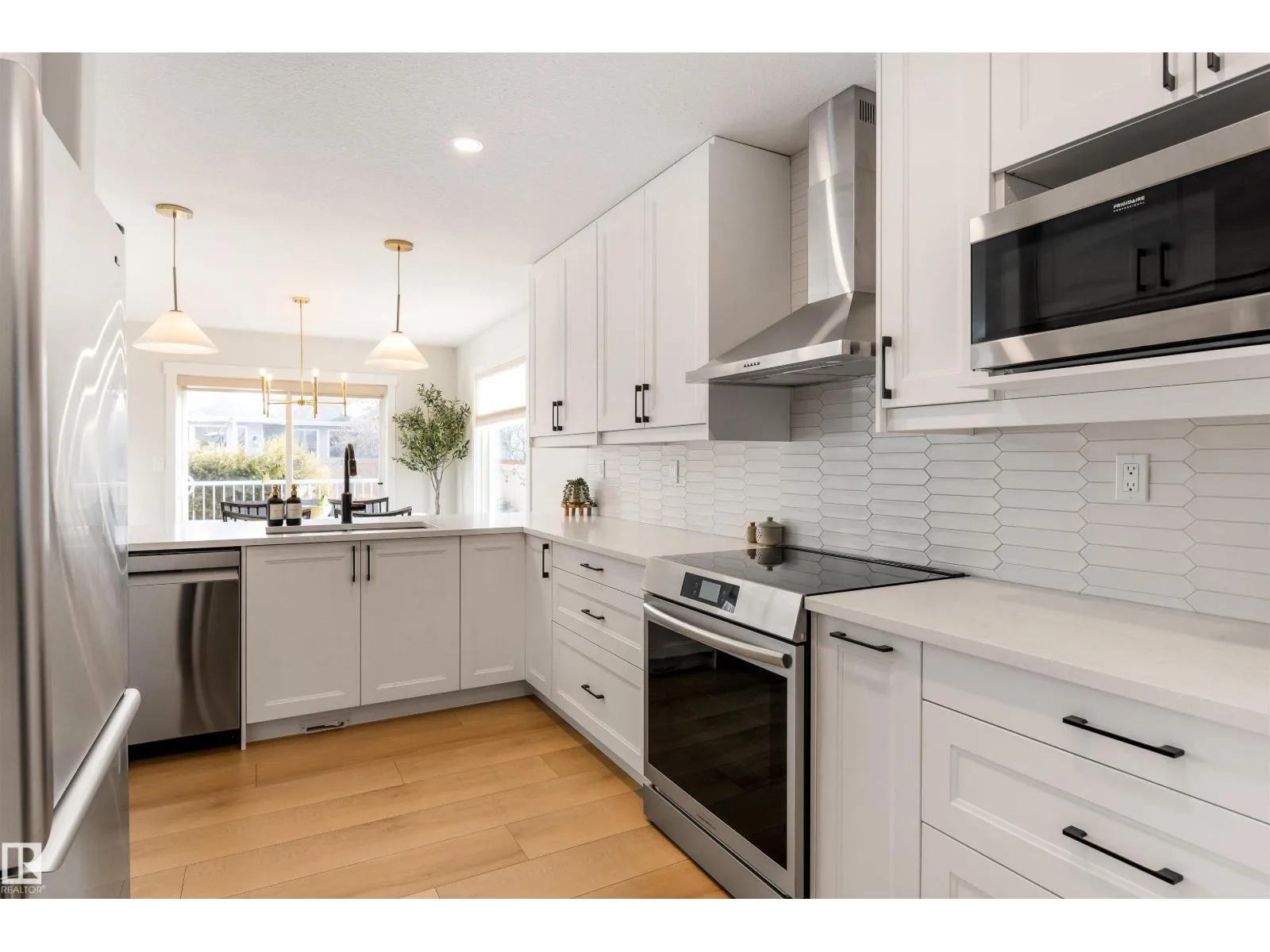 Welcome to this beautifully RENOVATED home in sought after North Ridge. The main floor features new VINYL PLANK flooring throughout, a brand new white kitchen with full height cabinets, custom pantry area with trendy coffee bar station, QUARTZ counter tops, and new appliances. There is a large dining nook with glass doors to the two tiered deck, a warm and inviting living room with a corner gas fireplace with new tile and a renovated half bathroom. Upstairs offers 3 large bedrooms (all with new vinyl plank) and a main 4pce bathroom. The primary bedroom has double closets and a 4pce ENSUITE. The basement is FULLY FINISHED and features fresh paint with a large family room, 4th bedroom, 4pce bathroom and laundry room. This home has an CENTRAL AIR CONDITIONING and a double attached HEATED garage. With new paint, lighting, trim, doors and baseboards - there is nothing to do except move in and enjoy! (id:27476)