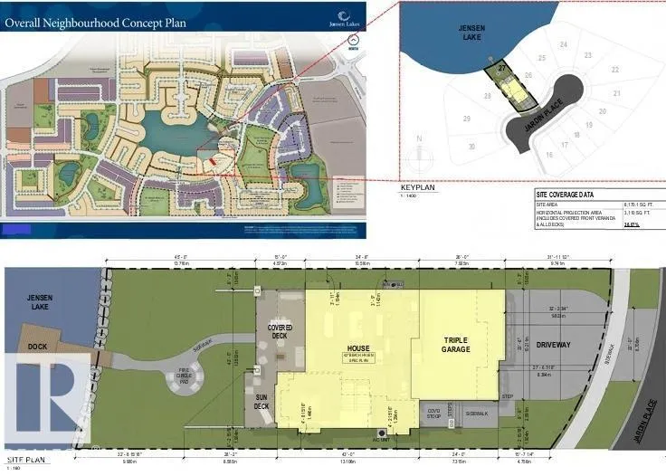 AMAZING URBIS WATERFRONT CREATION IN ST. ALBERT. Please to present this 5 bedroom WALKOUT masterpiece in Jensen Lakes. Over 5830 sqft of luxury living starts with wide open main floor featuring soaring ceilings and magnificent two island kitchen containing all the high end built-in's you would want. Numerous lake facing windows flood the main with warm natural light while you cozy up to the f/p. Upper level is host to the primary bedroom oasis along with 3 other bedrooms all with their own ensuites. Conveniently, the laundry is on the upper level as well. Rise up a little higher to the office loft area with lake facing windows/doors, bathroom and f/p. The finished basement is host to a large family/games area with bar and gym. Undeveloped flex space for golf sim? Also another bedroom and bathroom on this level. Multiple covered/open deck options adorn the lake side of this home. Park with ease in the triple attached garage that provides access to the mudroom and walkthru pantry. Pictures all renderings. (id:27476)