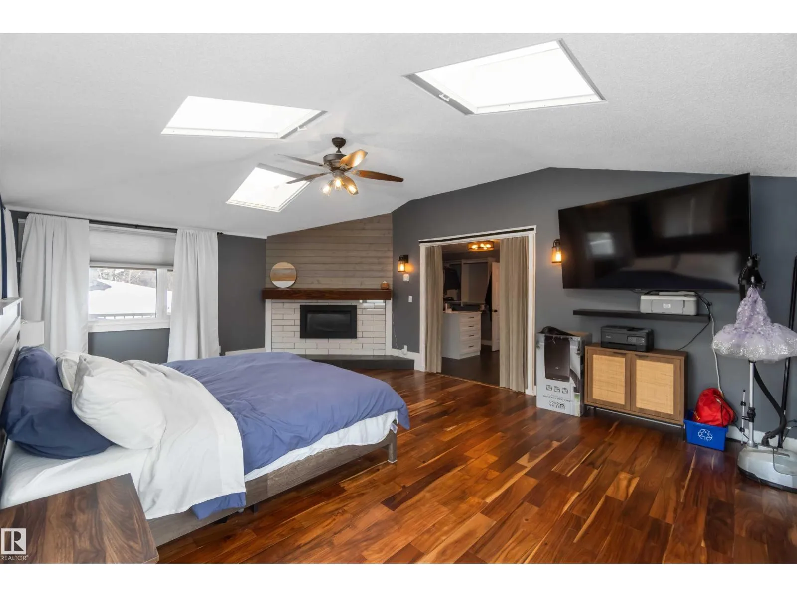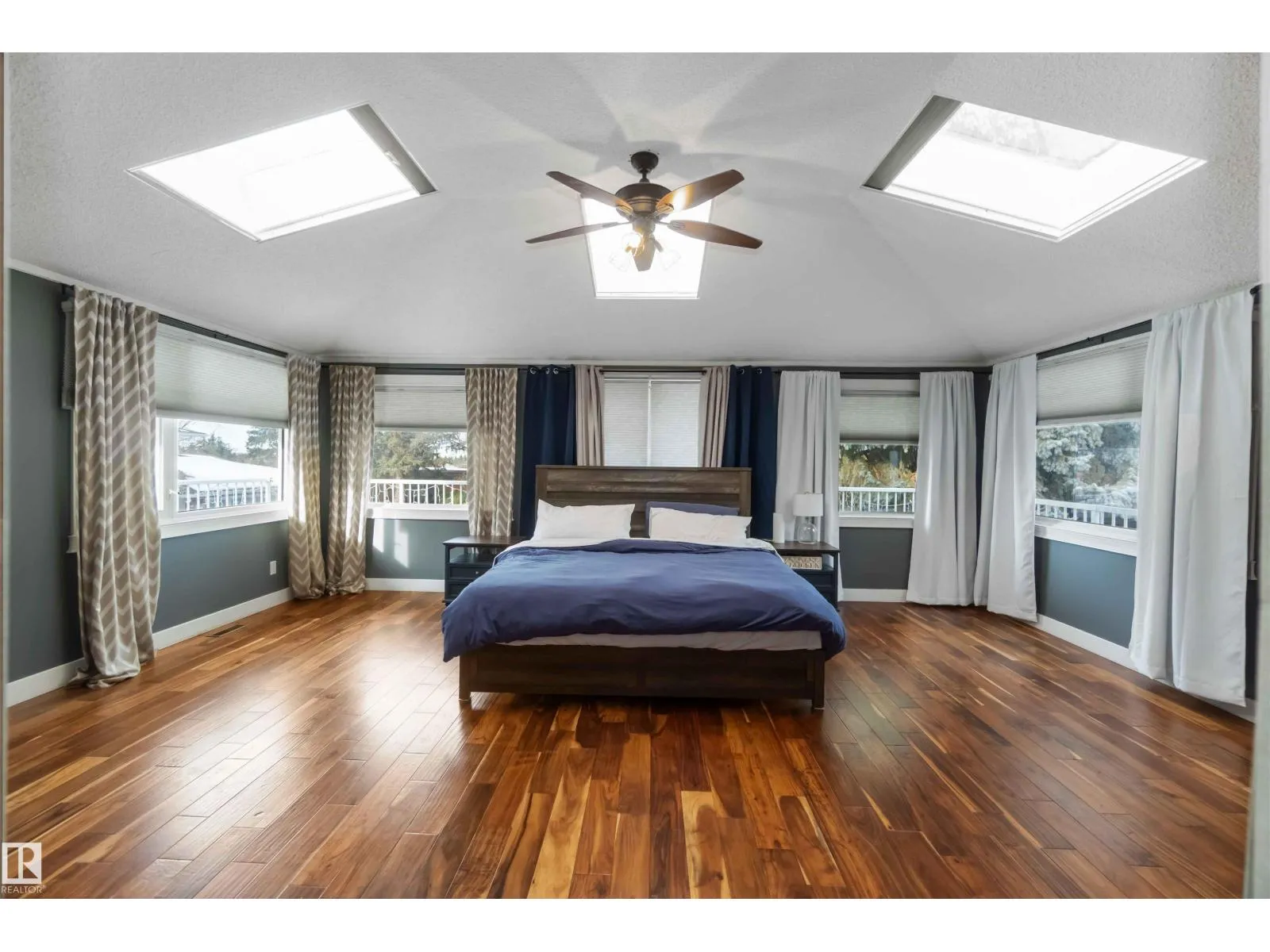 Set an an EXPANSIVE pie shaped lot, this beautifully renovated 2574 sq ft mid century modern gem is truly one of a kind. Offering five bedrooms and 2 1/2 bathrooms, this home showcases rich chestnut hardwood flooring throughout and blends timeless character with thoughtful updates. Step into a spacious front entry that immediately feels welcoming. Just off the entrance, you'll find a main floor bedroom, perfect for guests or an ideal work from home office. Continue through to the fully renovated kitchen and dining area, designed for both every day, living an effortless entertaining. The primary retreat is impressively sized and features a huge walk-in closet, a luxurious five piece ensuite, and its own cosy gas fireplace. Enjoy direct access to the private patio, creating a peaceful escape right at home. The massive backyard is a rare once you find, complete with double gates for easy access, RV parking and an oversized shed workshop, making it perfect for hobbyists, storage, or extra vehicle (id:27476)