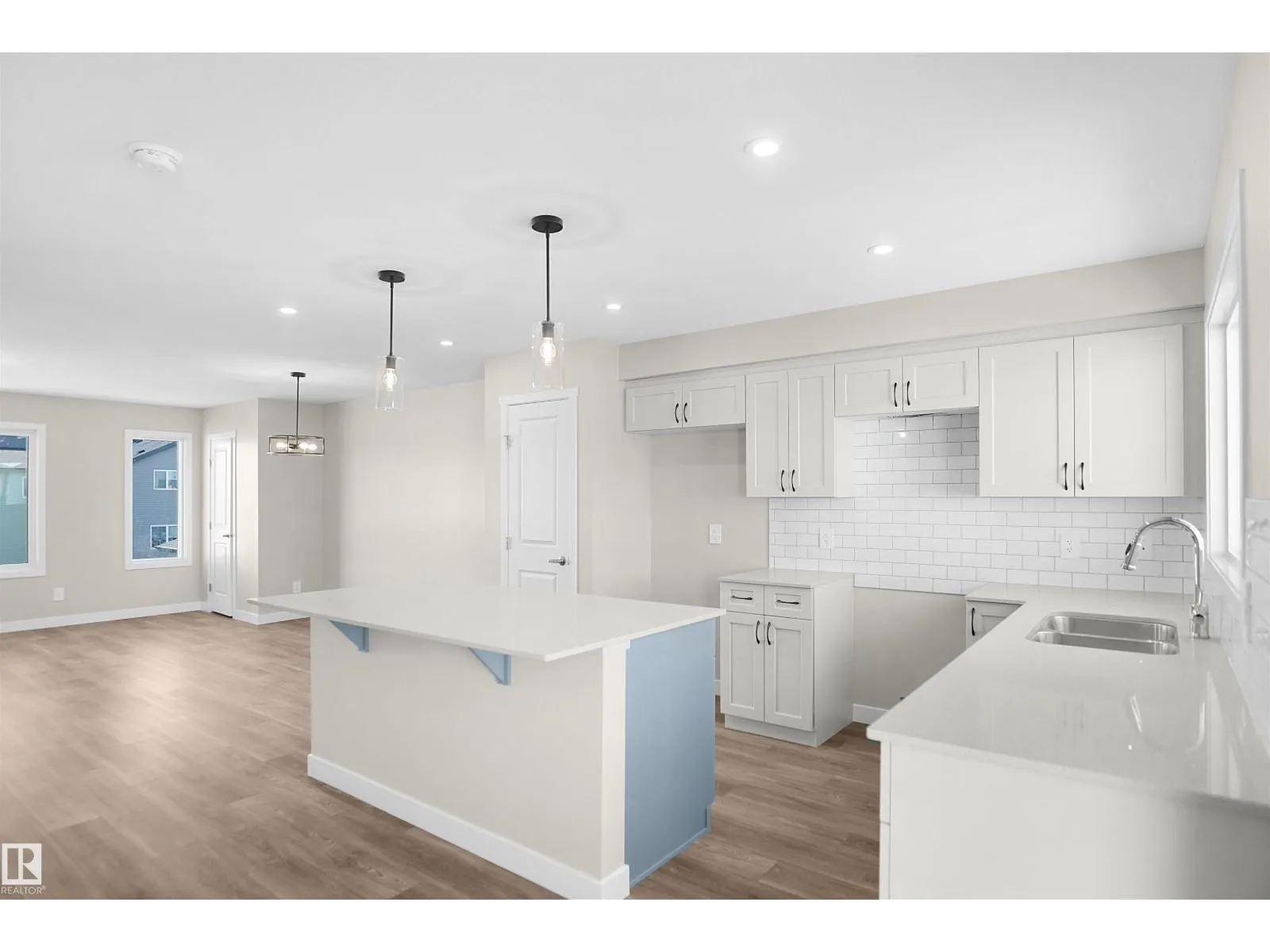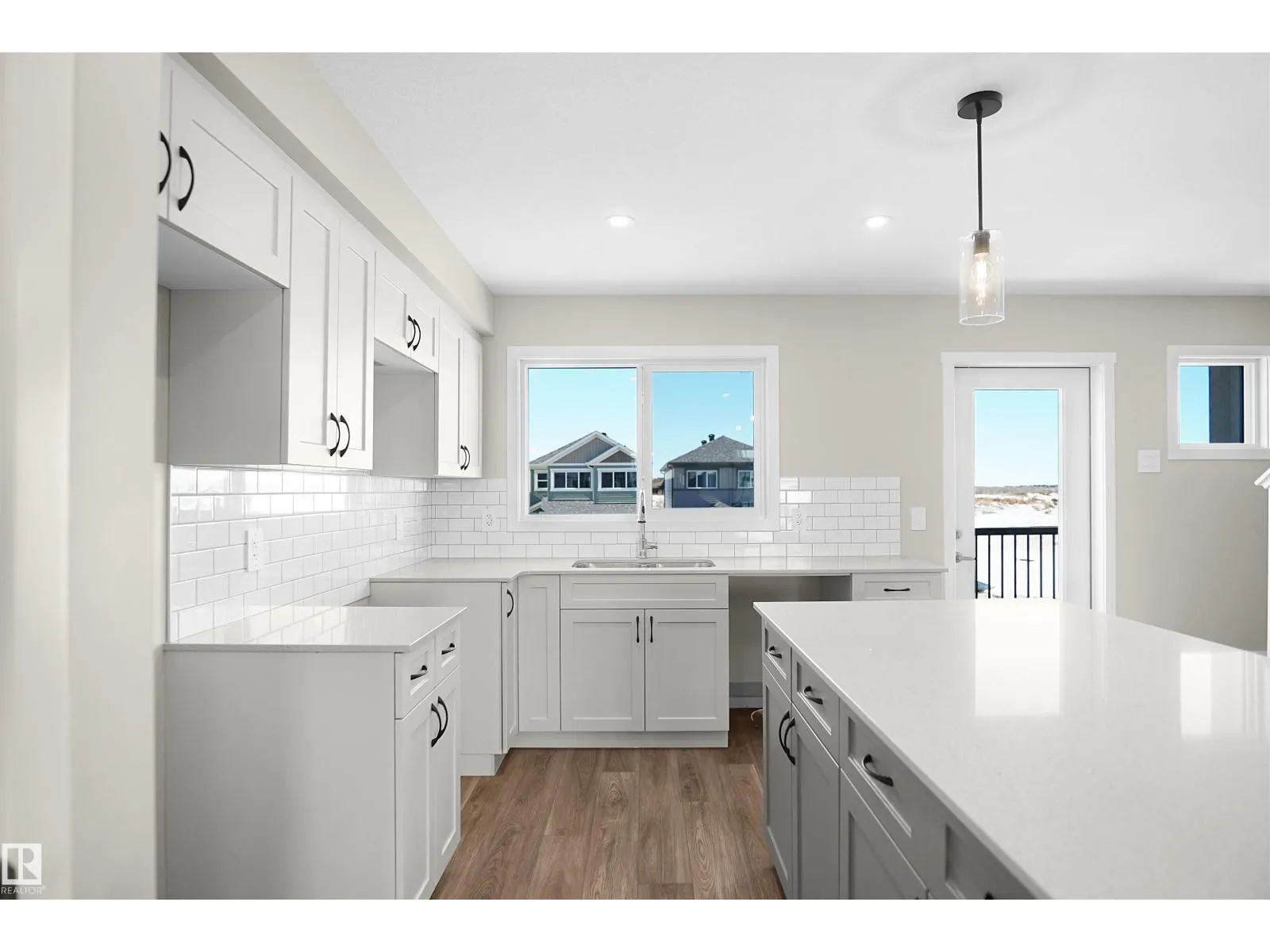 NO CONDO FEES and AMAZING VALUE! You read that right welcome to this brand new townhouse unit the âBryceâ Built by the award winning builder Pacesetter homes and is located in one of St Alberts nicest communities of Nouveau . With over 1370+ square Feet, this opportunity is perfect for a young family or young couple. Your main floor as you enter has a flex room/ Bedroom that is next to the entrance from the garage with a 3 piece bath. The second level has a beautiful kitchen with upgraded cabinets, upgraded counter tops and a tile back splash with upgraded luxury Vinyl plank flooring throughout the great room. The upper level has 2 bedrooms and 2 full bathrooms. This home also comes completed with front and back landscaping and a attached garage. This home is now move in ready! (id:27476)