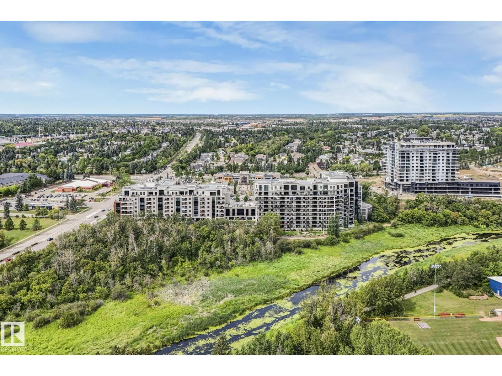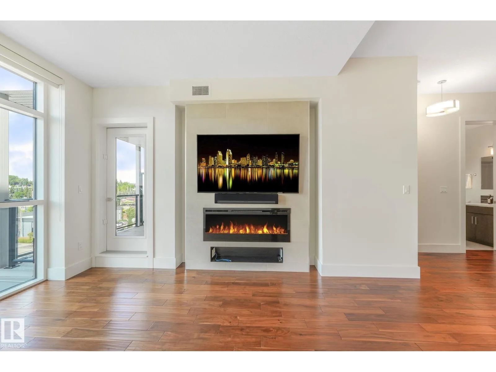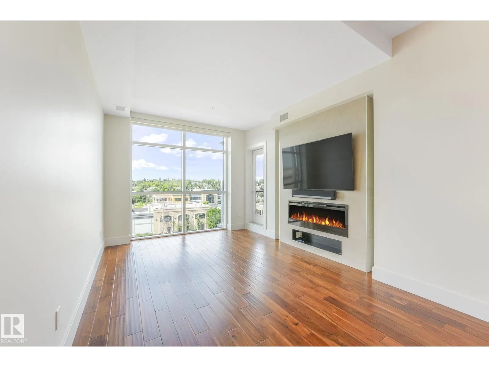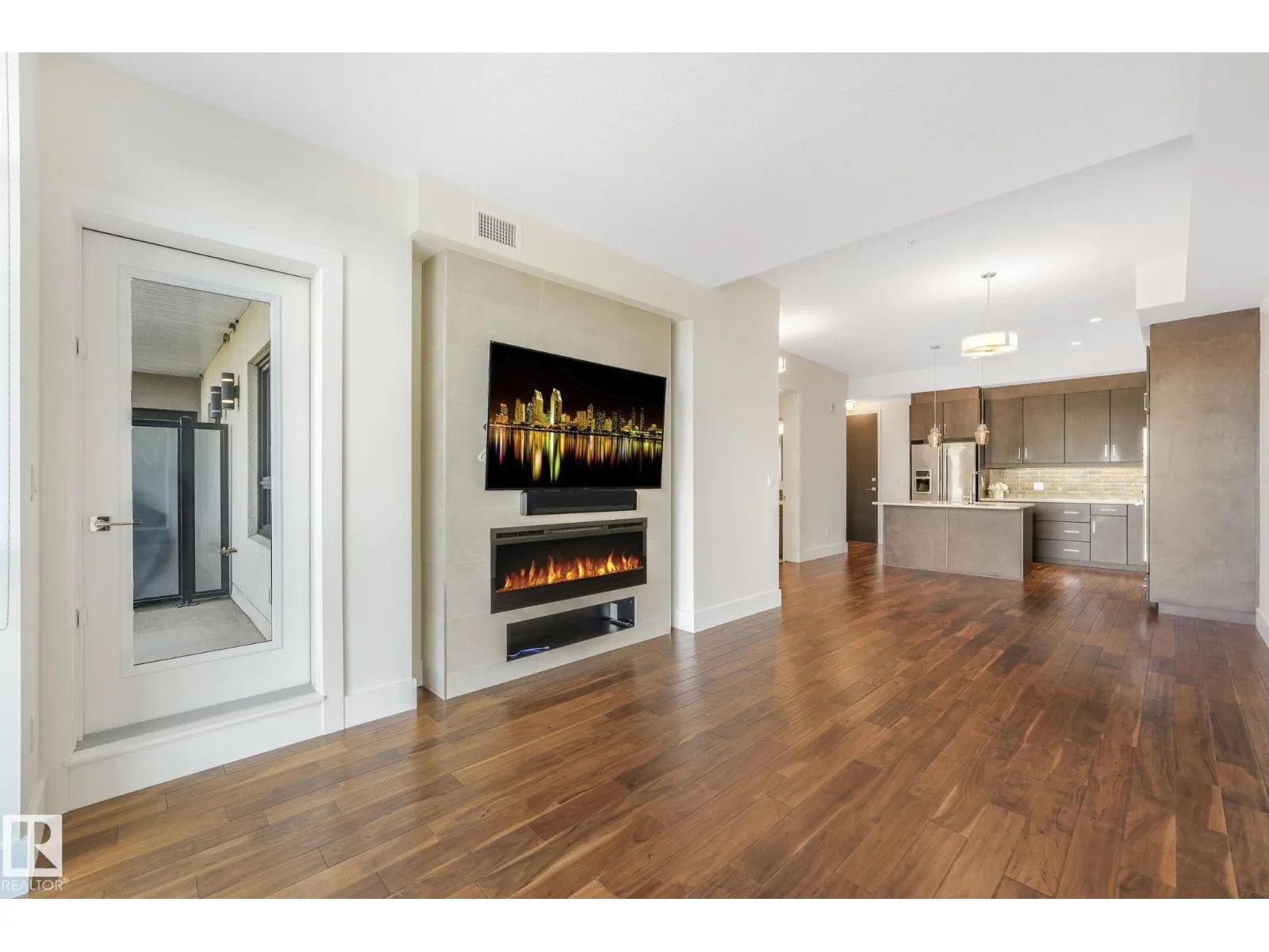 ELEGANT! 10 foot ceilings, oversized windows w/custom zebra shades, oversize interior & entry door plus upgraded finishes! ESPRESSO kitchen has quartz countertops, MIELE appliances, ultra quiet dishwasher, gorgeous metallic gold backsplash, touchless faucet, refrigerator w/ ice/water & custom pendant lighting. Main living space has beautiful engineered hardwood flooring. Bathroom w/ heated tile flooring, quartz countertops. Living room w/ fireplace & floor to ceiling tile surround, 65 inch SONY TV & Sonos sound bar. Balcony has all the conveniences for condo living - gas for BBQ & water tap. Concrete/steel bldg & heated underground prkg- full storage cage incl w/steel rack. A/C. Deck has water and gas outlet. Amenities; social rm, exercise rm, roof top terrace & guest suite!! Shop at Italian Bakeryâs Mercato or walk to a restaurant of your choice. Extensive river valley trails right behind the building!! GORGEOUS VIEWS facing northwest for perfect sunsets! (id:27476)