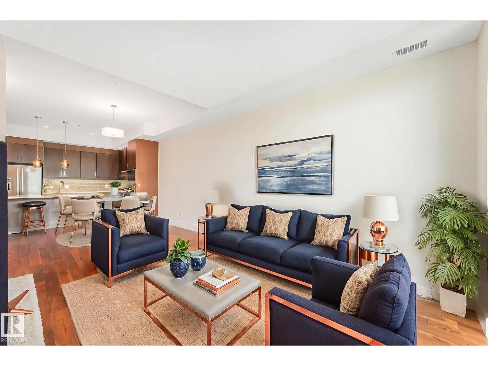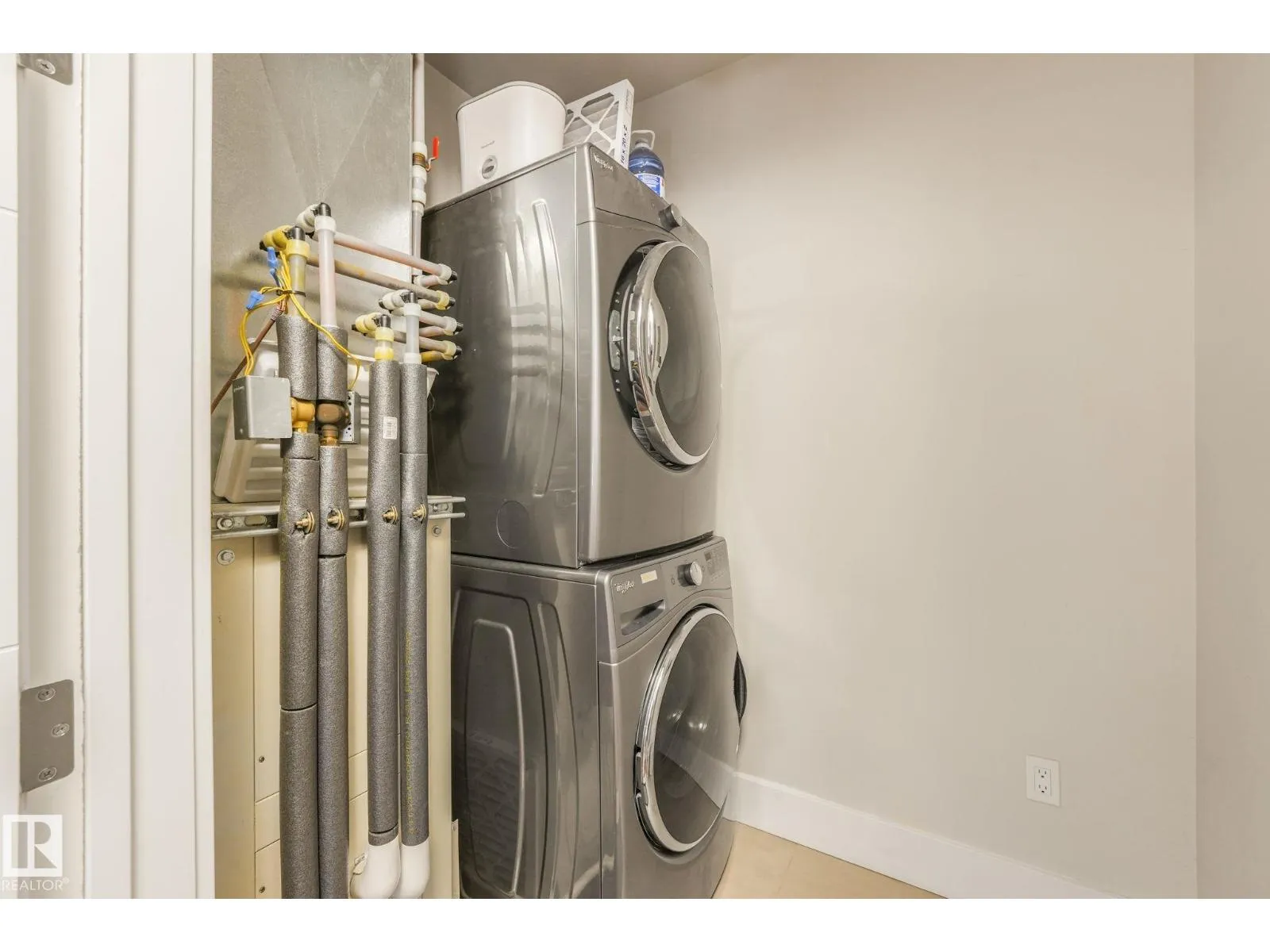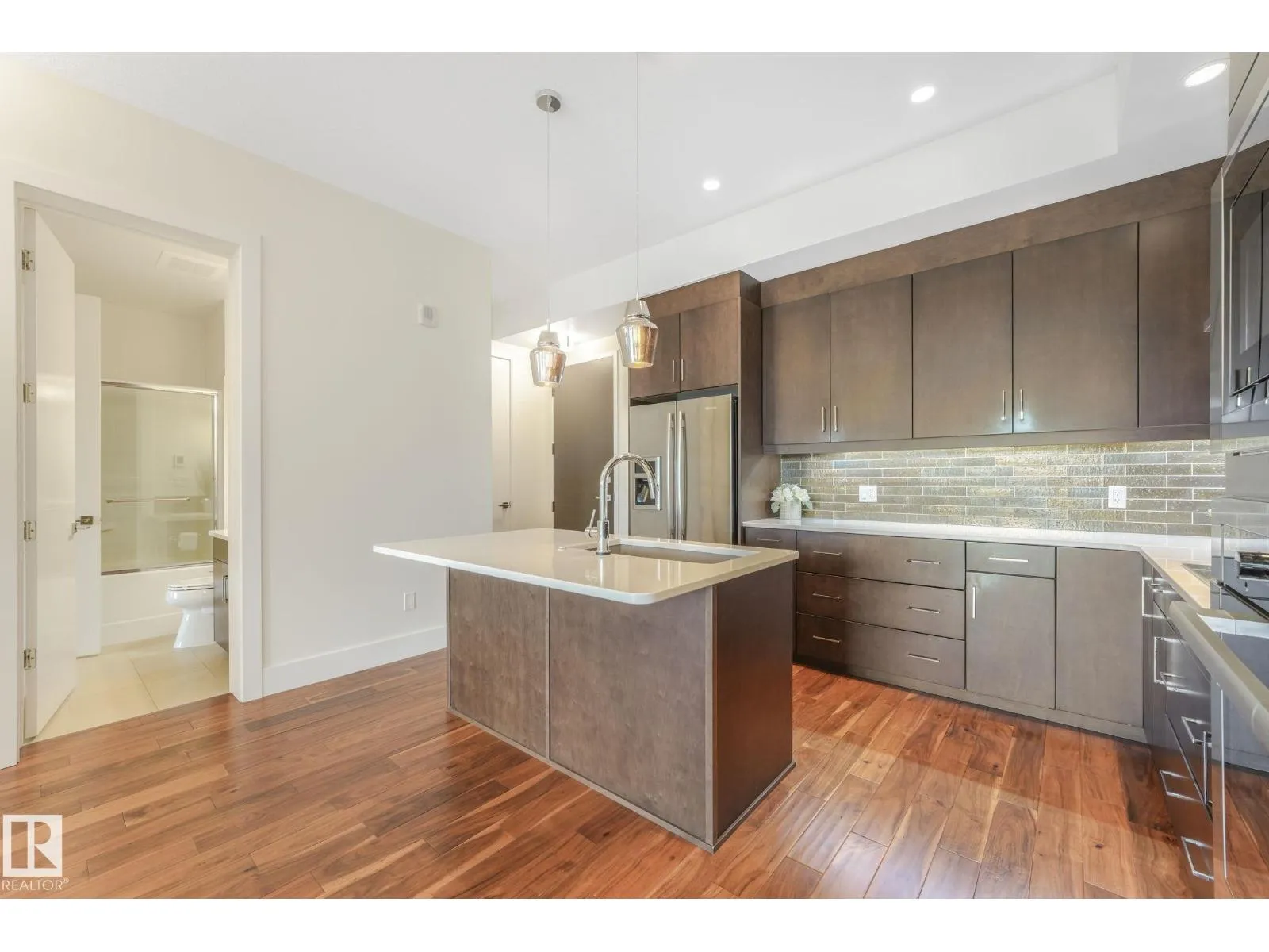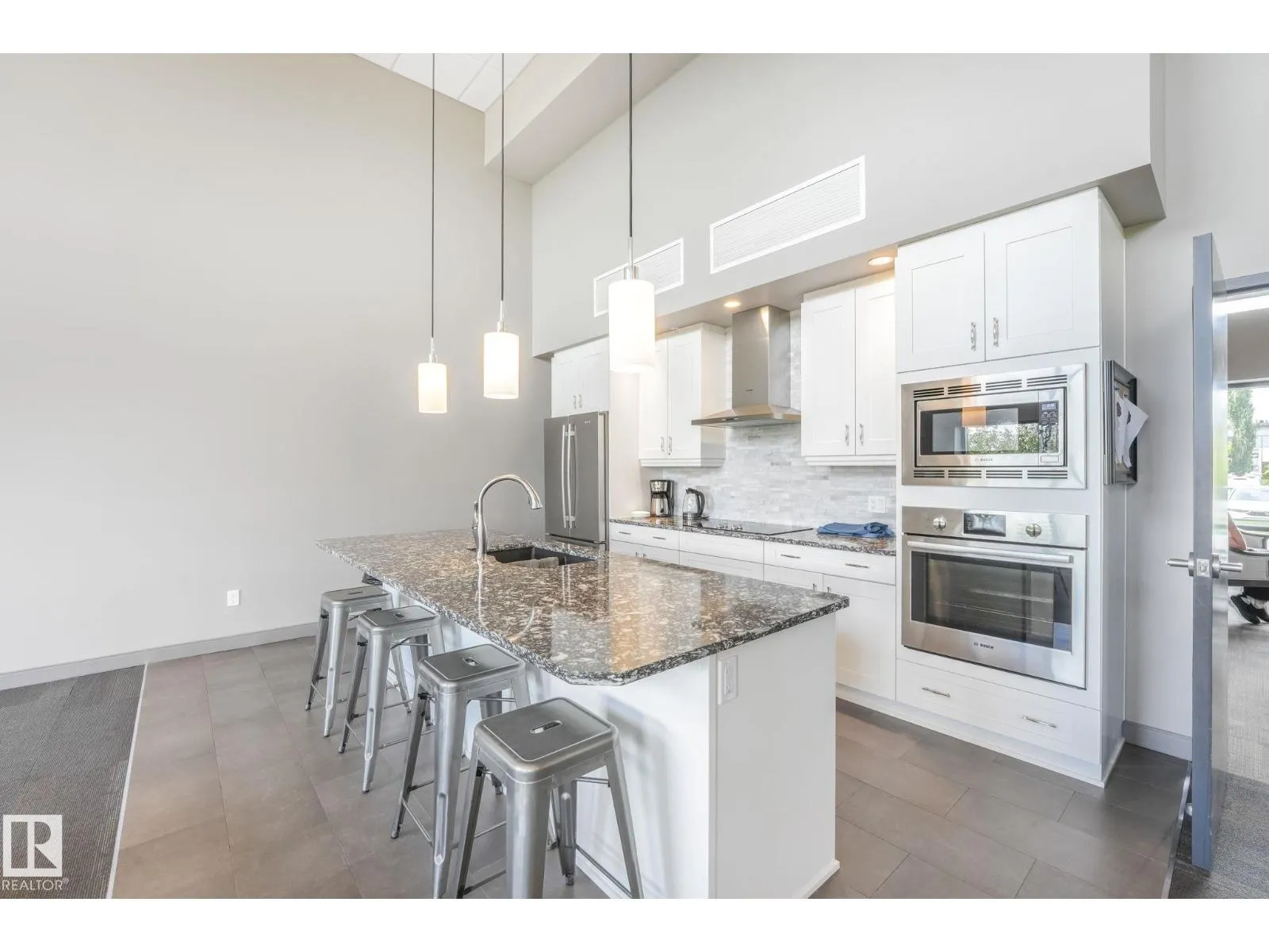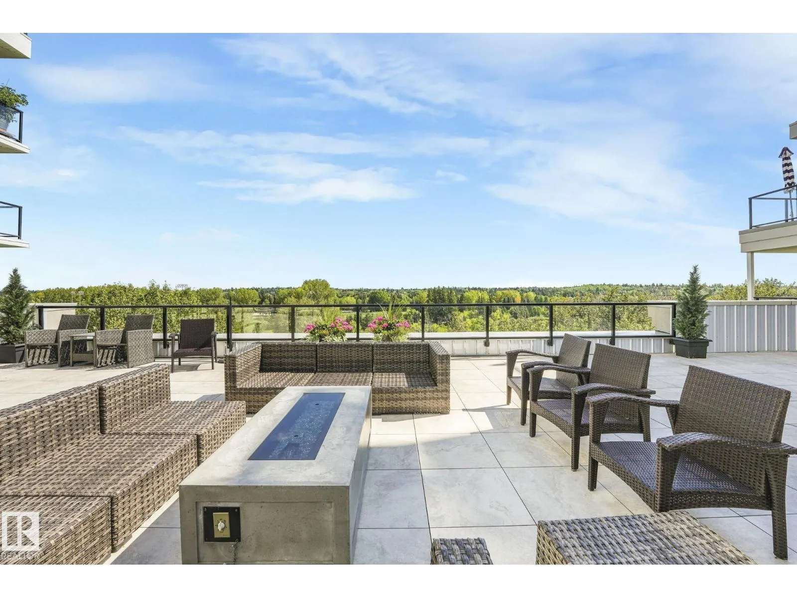 ELEGANT! 10 foot ceilings, oversized windows w/custom zebra shades, oversize interior & entry door plus upgraded finishes! ESPRESSO kitchen has quartz countertops, MIELE appliances, ultra quiet dishwasher, gorgeous metallic gold backsplash, touchless faucet, refrigerator w/ ice/water & custom pendant lighting. Main living space has beautiful engineered hardwood flooring. Bathroom w/ heated tile flooring, quartz countertops. Living room w/ fireplace & floor to ceiling tile surround, 65 inch SONY TV & Sonos sound bar. Balcony has all the conveniences for condo living - gas for BBQ & water tap. Concrete/steel bldg & heated underground prkg- full storage cage incl w/steel rack. A/C. Deck has water and gas outlet. Amenities; social rm, exercise rm, roof top terrace & guest suite!! Shop at Italian Bakeryâs Mercato or walk to a restaurant of your choice. Extensive river valley trails right behind the building!! GORGEOUS VIEWS facing northwest for perfect sunsets! (id:27476)