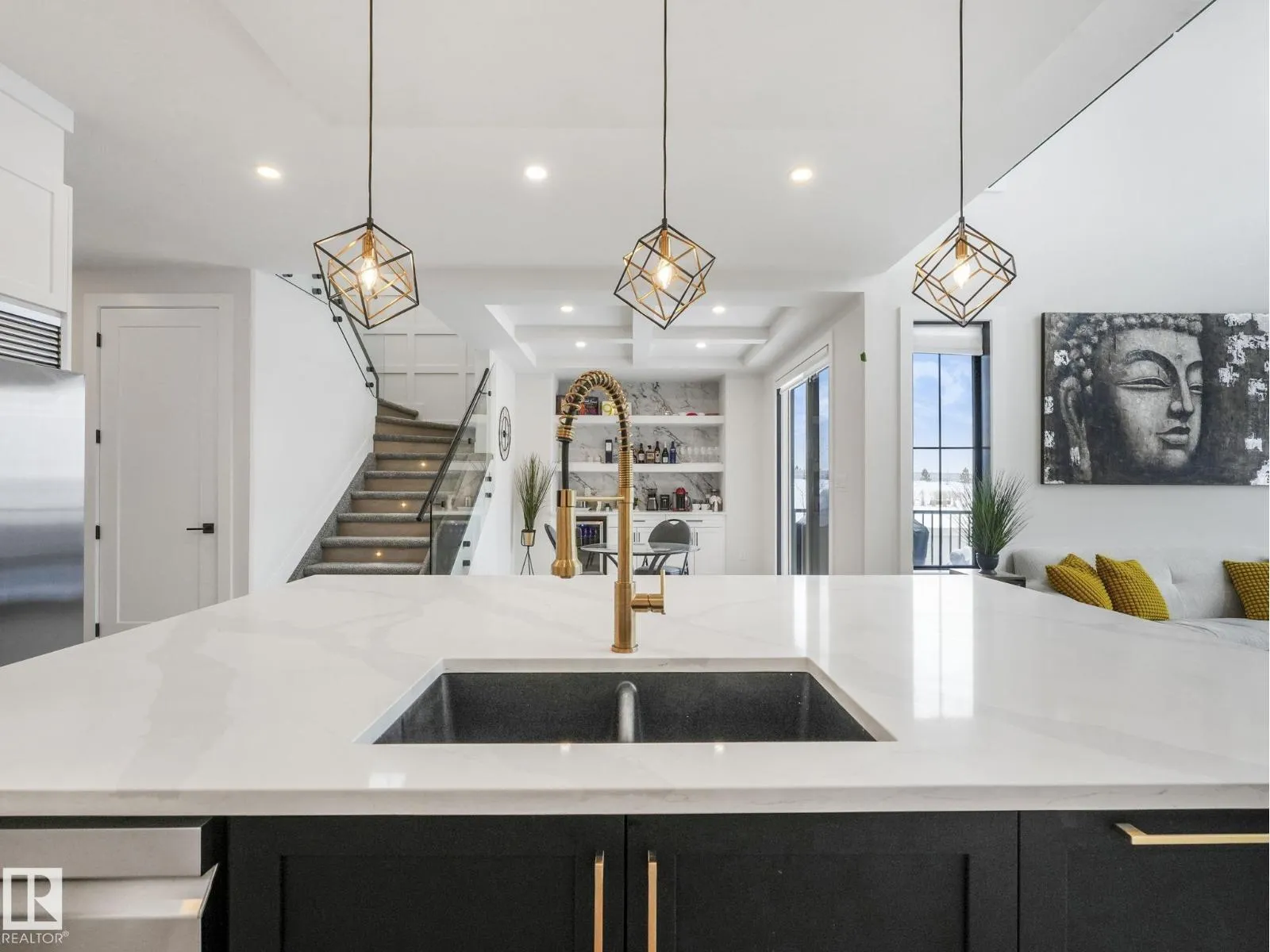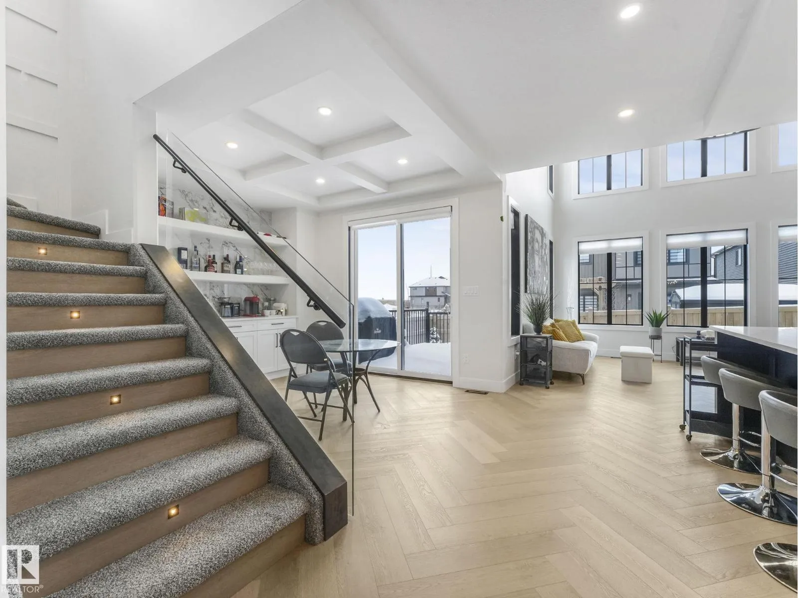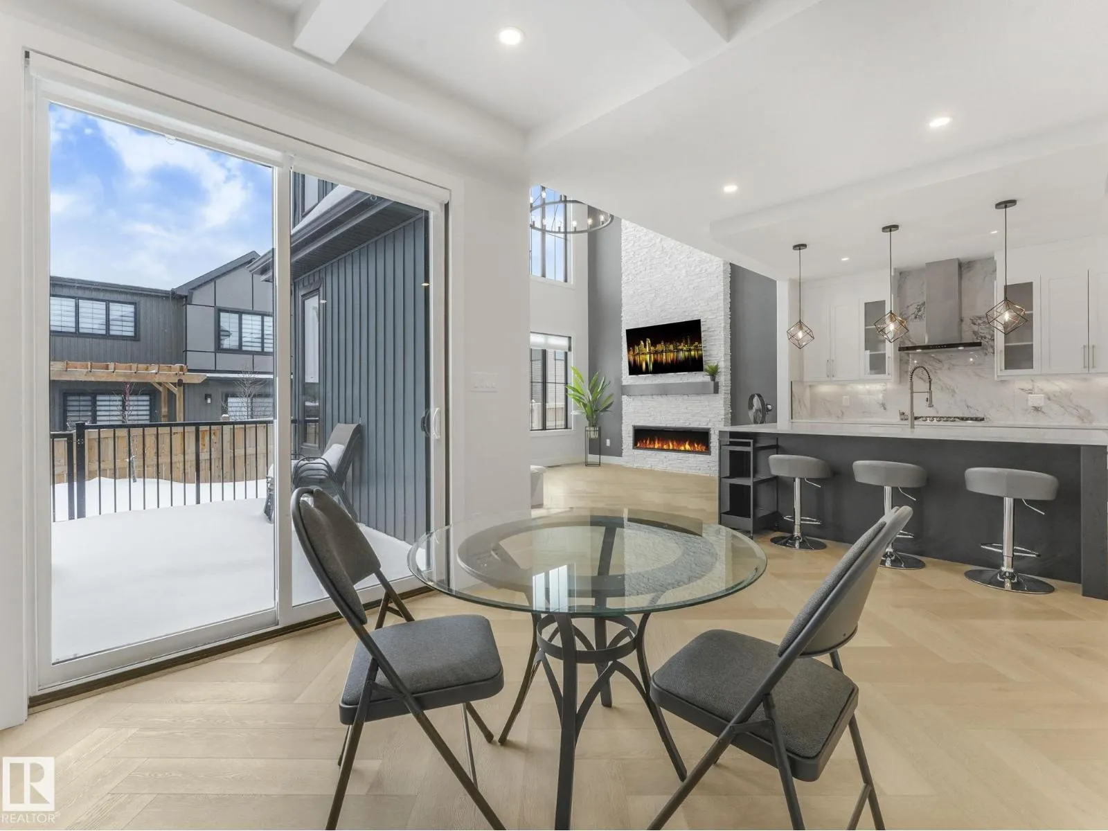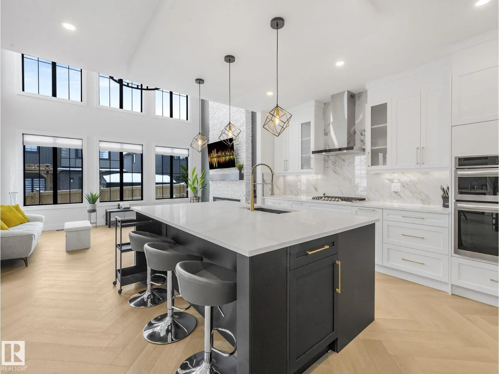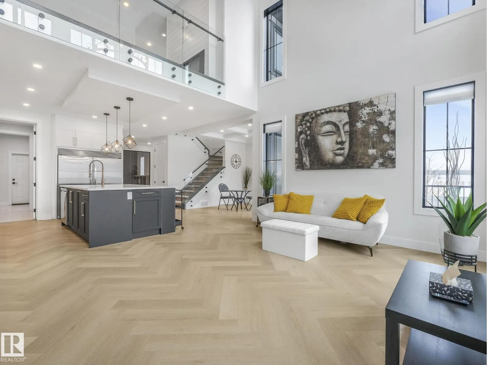 Better Than New! The award-winning Oxford floor plan delivers a breathtaking open-to-below living space designed to impress. As an end unit, this home is flooded with natural light thanks to additional windows throughout. Fully landscaped and complete with window coverings and appliances already installed, it offers true turnkey convenience. Ideally located next to a park, walking trails, and a scenic pond, the setting is just as exceptional as the home itself. Every available upgrade was selected during construction, including upgraded chef appliances, a main floor office with a stunning glass wall, and even a dog shower in the mud room. The primary bedroom features vaulted ceilings and an amazing spa-inspired ensuite. To make it even more appealing, the majority of the furniture can remain with the home if the buyer chooses. Style, comfort, and value â all wrapped into one incredible opportunity. (id:27476)
