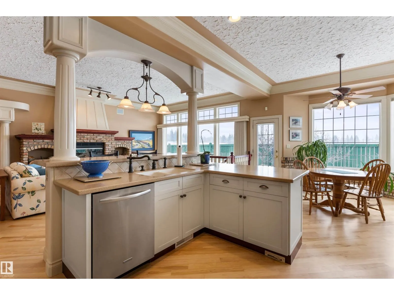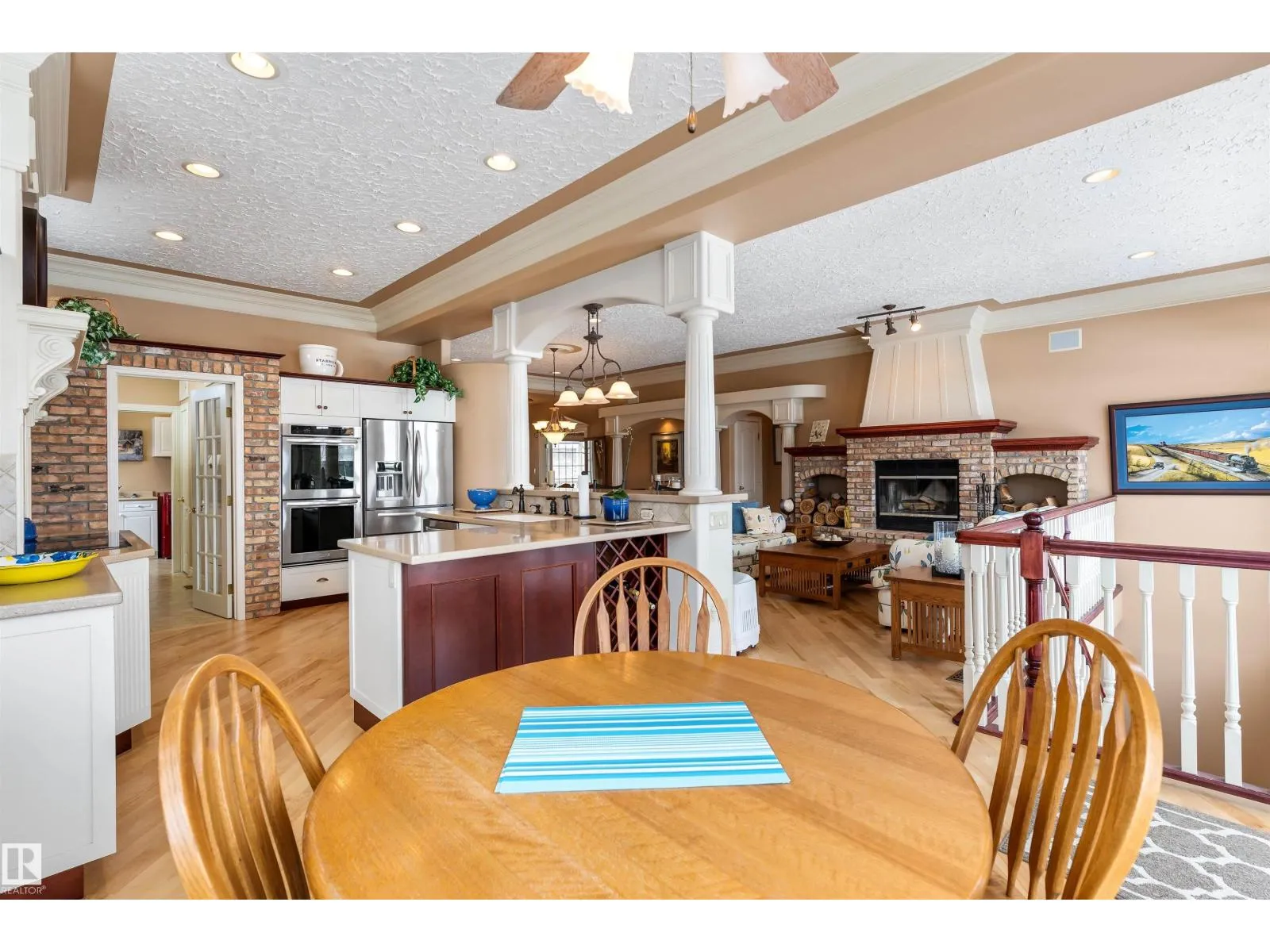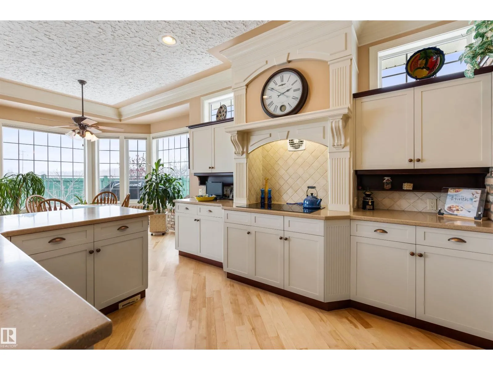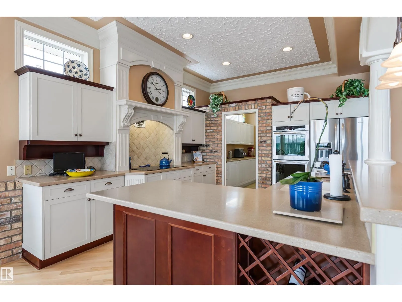 Welcome to this custom-built Heredity bungalow! The entrance has beautiful ceiling detail & overlooks the open design. French doors lead into a flex room w/ large windows looking out front. At the centre of the home is the dining space which can accommodate large scale entertaining. The living room has a grand wood-burning f/p w/ extensive brick character. The kitchen has a butler style walk through pantry, Corian counters, eating bar island, s/s appliances, double built in wall ovens & pot/pan drawers. The dining nook has access to the backyard wrap around deck & exposed aggregate patio. A convenient walk-through closet is located between the front door & the garage entry. The spacious laundry room has lots of natural light. The primary bedroom has large windows, a walk in closet & a 4pce ensuite which has a 2 person tub w/ jets. The FULLY FINISHED basement has a massive rec room, dry bar, 3 large bedrooms w/ their own walk in closet & a 3pce bath. A TRIPLE ATTACHED GARAGE with drive through! (id:27476)