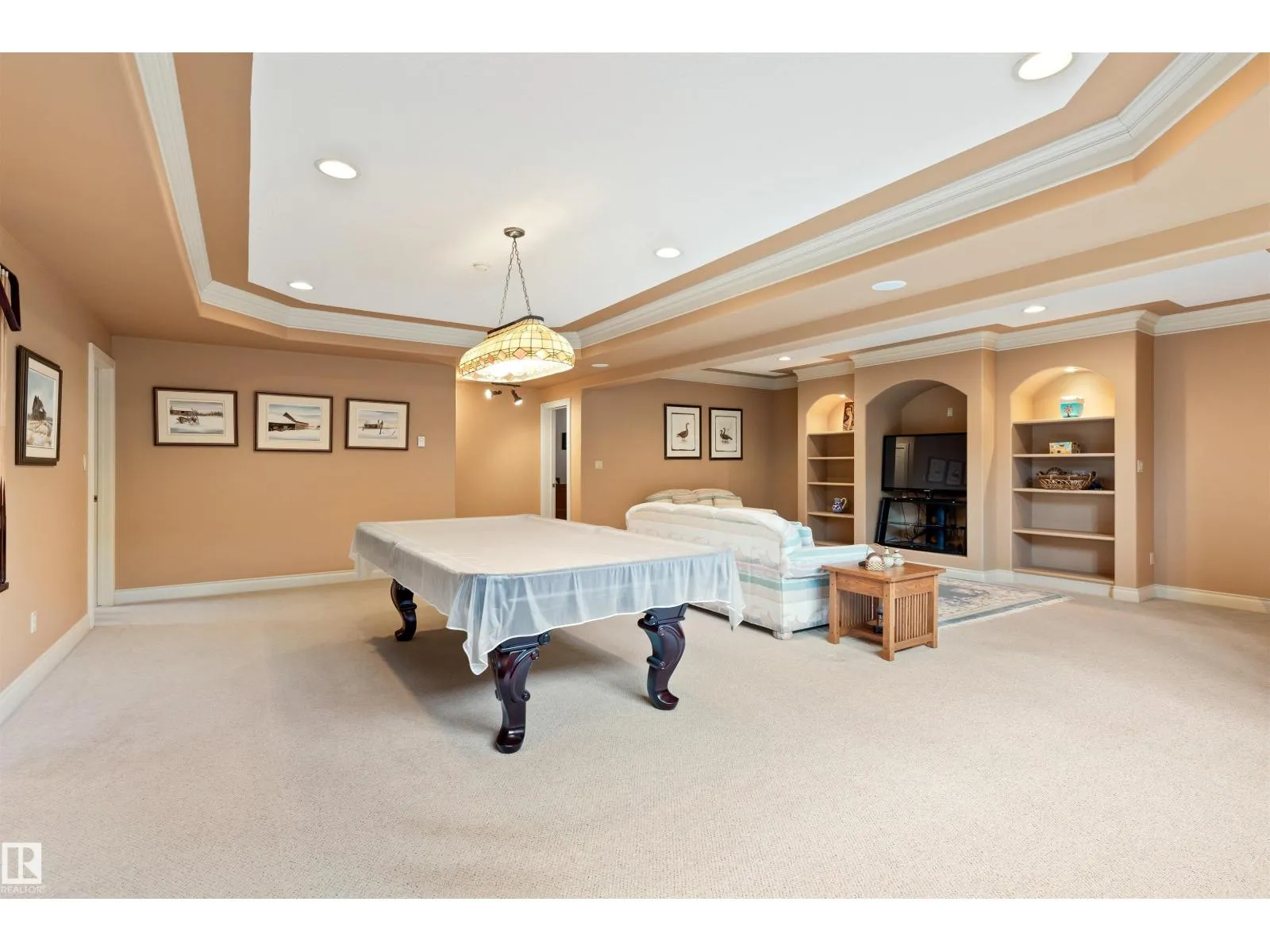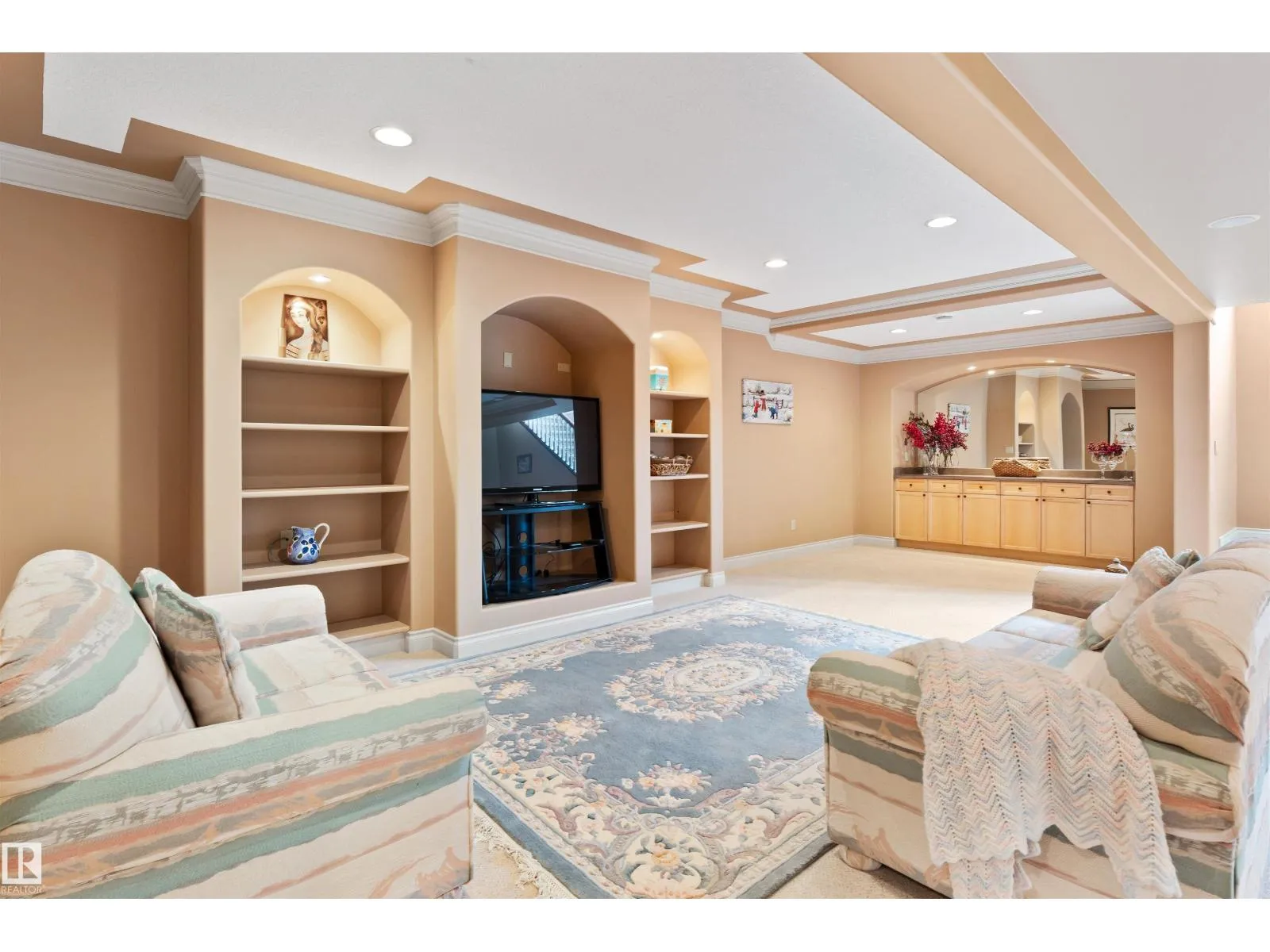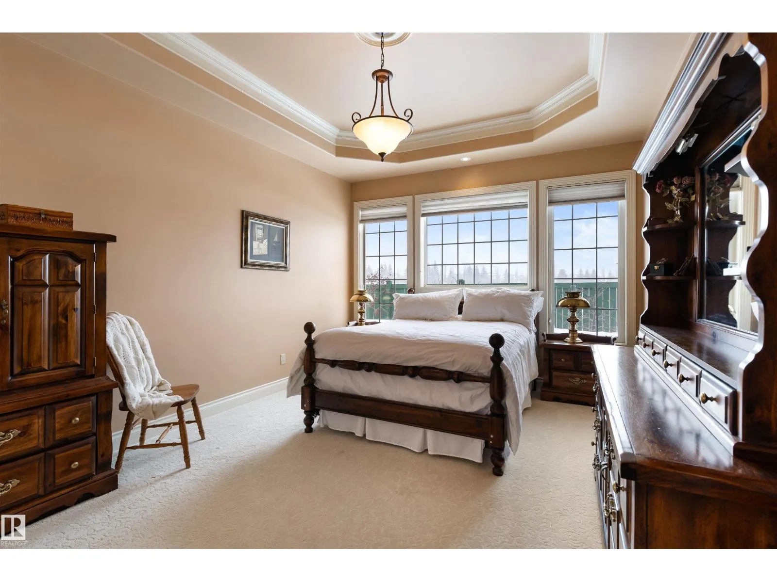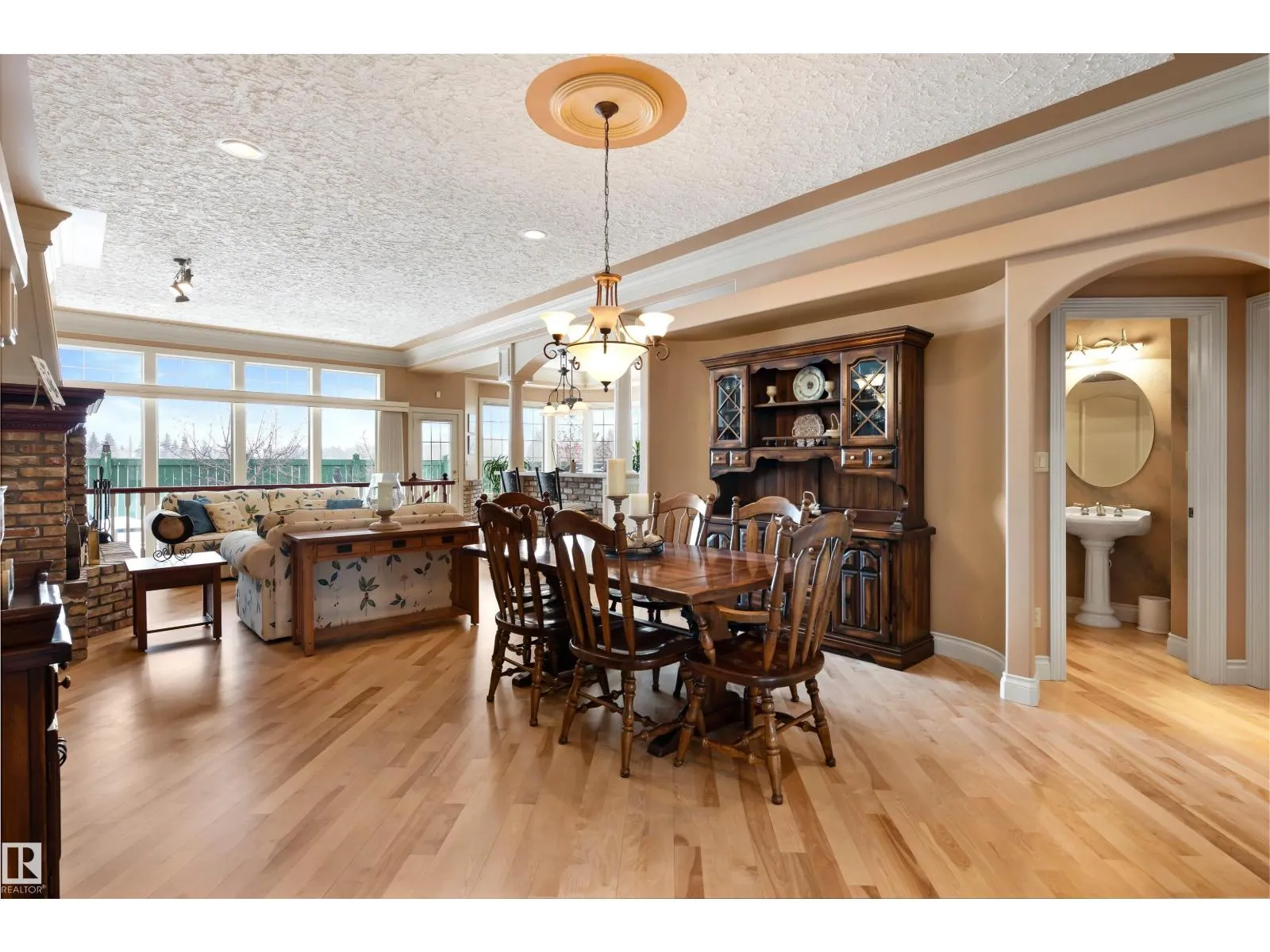Welcome to this custom-built Heredity bungalow! The entrance has beautiful ceiling detail & overlooks the open design. French doors lead into a flex room w/ large windows looking out front. At the centre of the home is the dining space which can accommodate large scale entertaining. The living room has a grand wood-burning f/p w/ extensive brick character. The kitchen has a butler style walk through pantry, Corian counters, eating bar island, s/s appliances, double built in wall ovens & pot/pan drawers. The dining nook has access to the backyard wrap around deck & exposed aggregate patio. A convenient walk-through closet is located between the front door & the garage entry. The spacious laundry room has lots of natural light. The primary bedroom has large windows, a walk in closet & a 4pce ensuite which has a 2 person tub w/ jets. The FULLY FINISHED basement has a massive rec room, dry bar, 3 large bedrooms w/ their own walk in closet & a 3pce bath. A TRIPLE ATTACHED GARAGE with drive through! (id:27476)