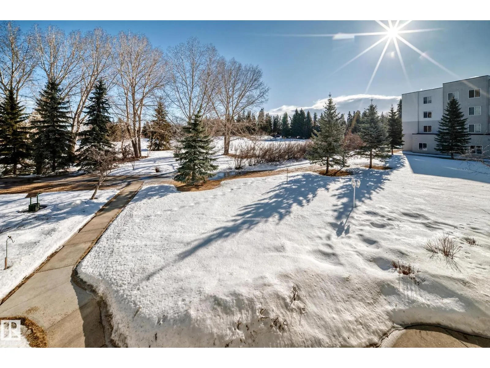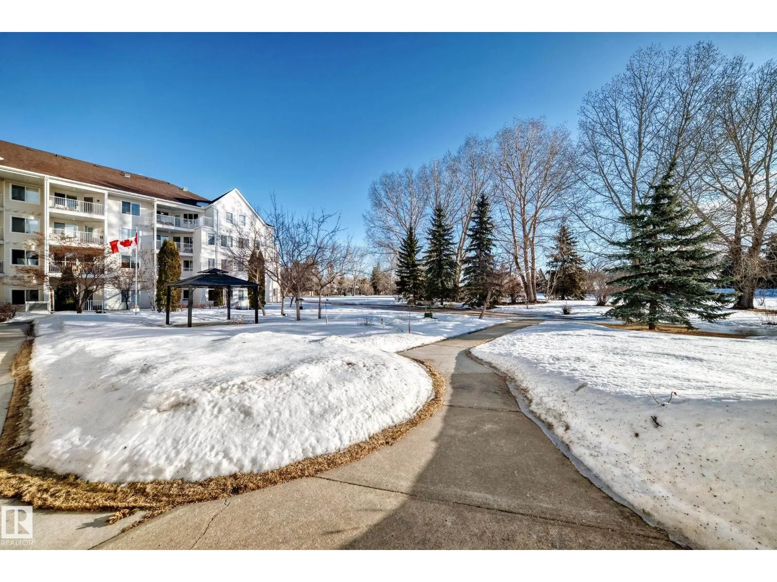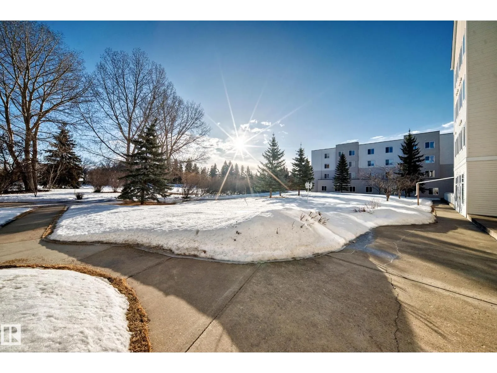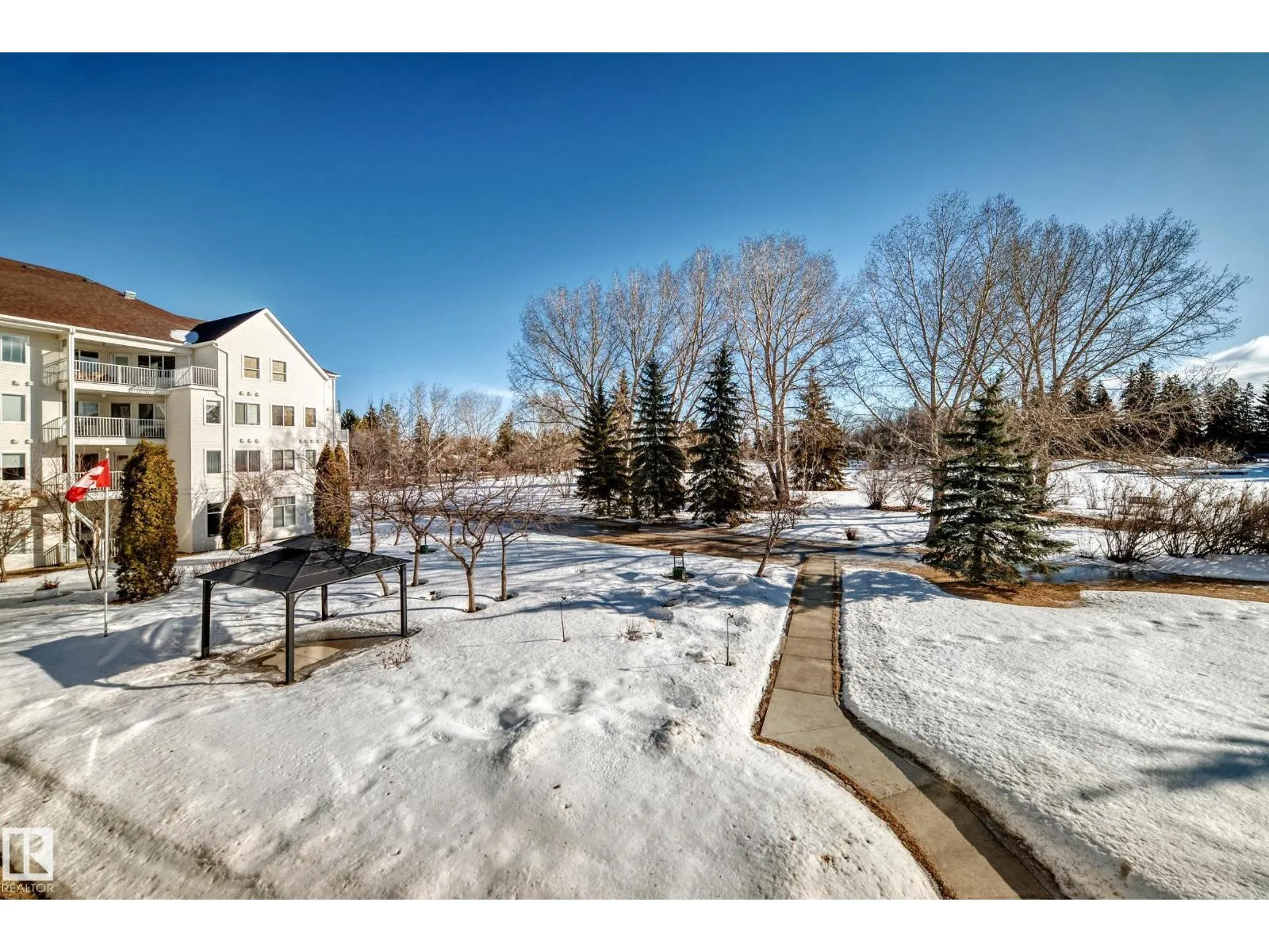 Savor the stunning views of St. Albert from this 1-bedroom condo on the quiet east side of this incredible 55+ building. Spacious rooms, along with upgrades in the kitchen & flooring, make this unit both comfortable & inviting. There is in-suite laundry & storage room for added convenience. Enjoy the extra outdoor space & morning sun from your covered balcony, perfect for relaxing or entertaining. The building offers so many amenities!!! Social spaces, libraries, dining room (currently you can order lunch & dinners 5 days a week), craft room, exercise room, multi-media room, games room with a variety of options, workshop, gazebo, hair salon, gift shop & more! An on-site administrator is available MonâFri. Beautiful gardens surround the property, along with a peaceful pond on the east side. Prefer the west side? No problemâyouâll love the large patio there as well. The second floor also features another library overlooking the main living room & 4 guest suites are available for visiting family & friends. (id:27476)
