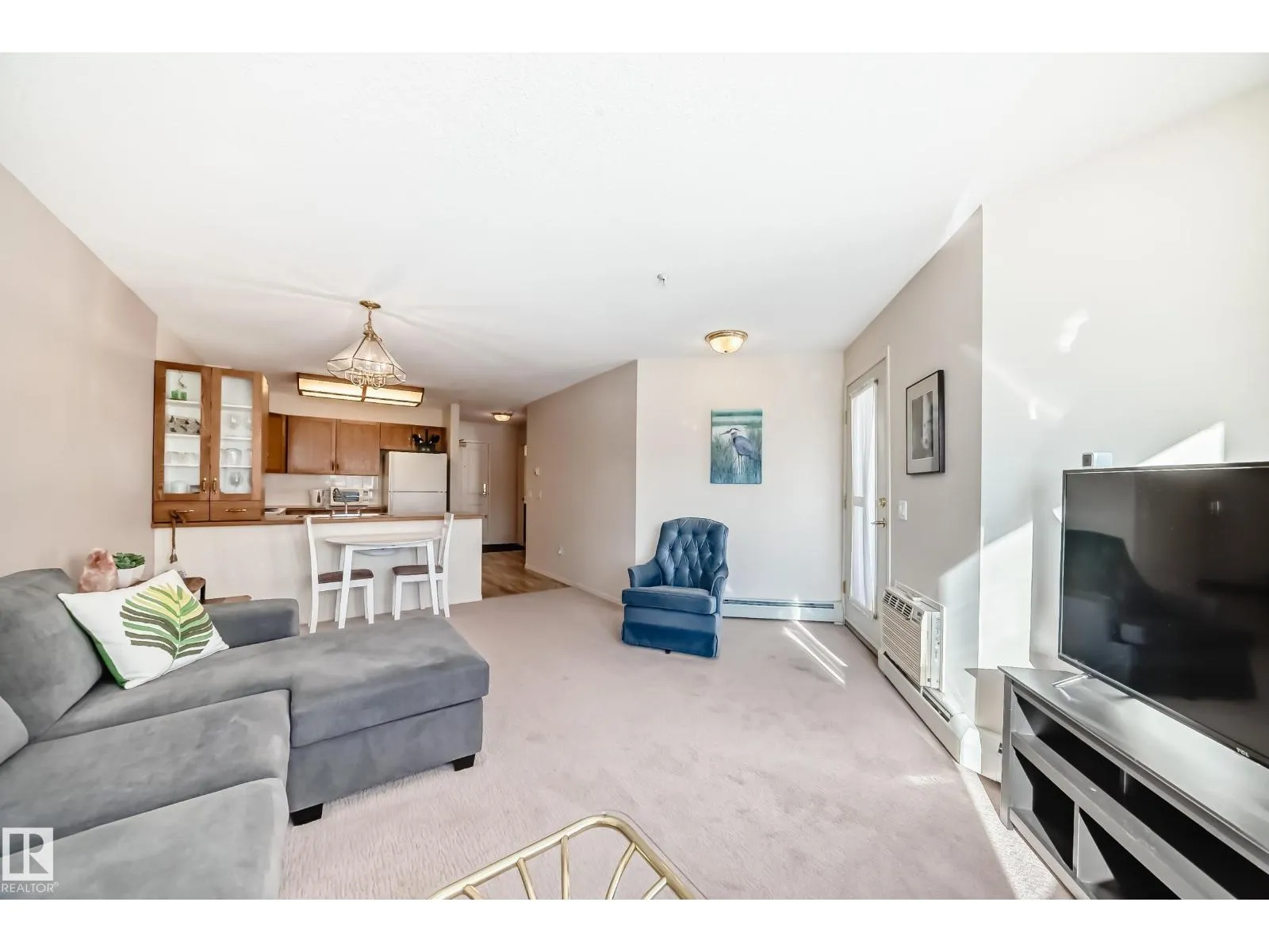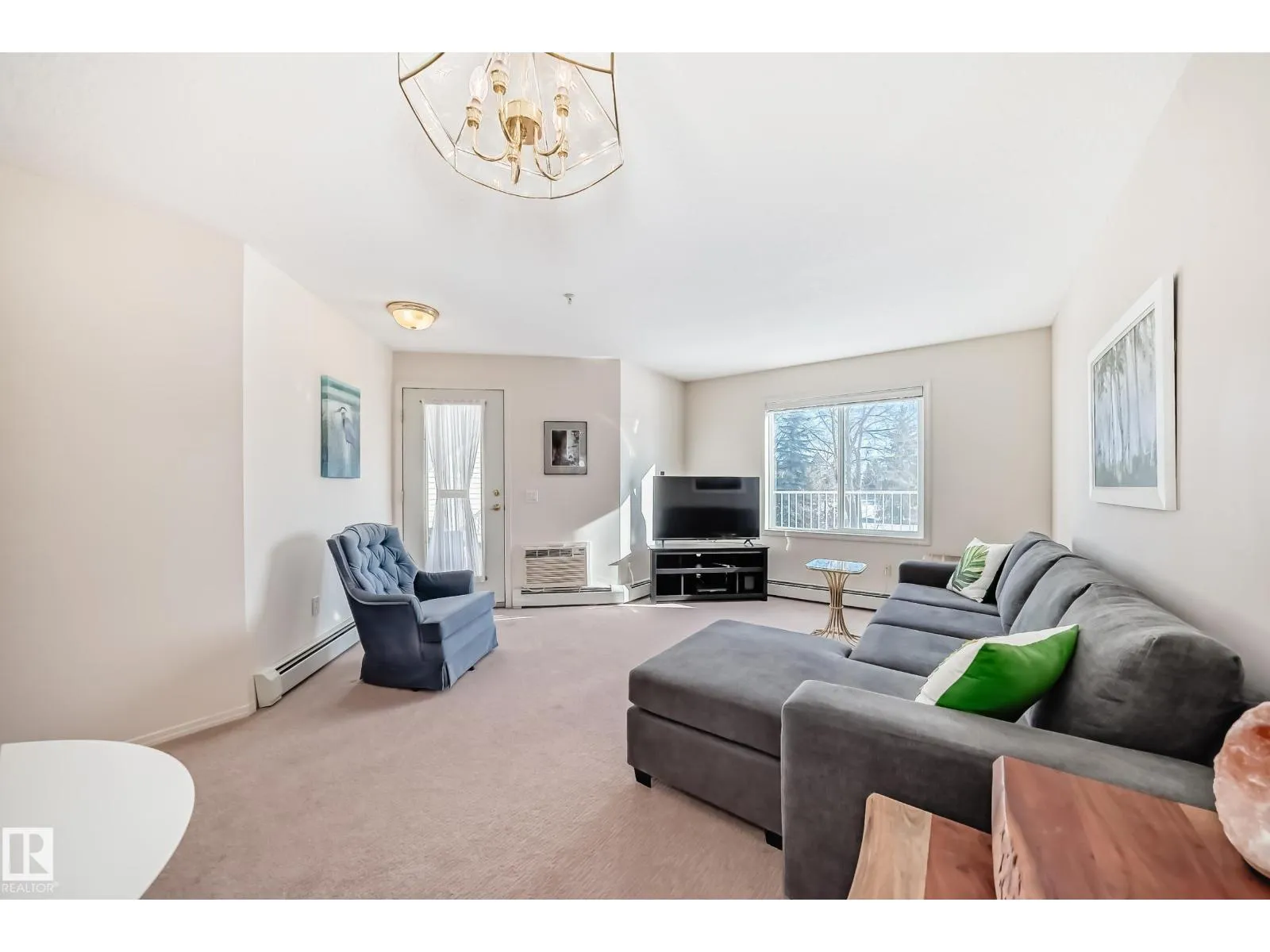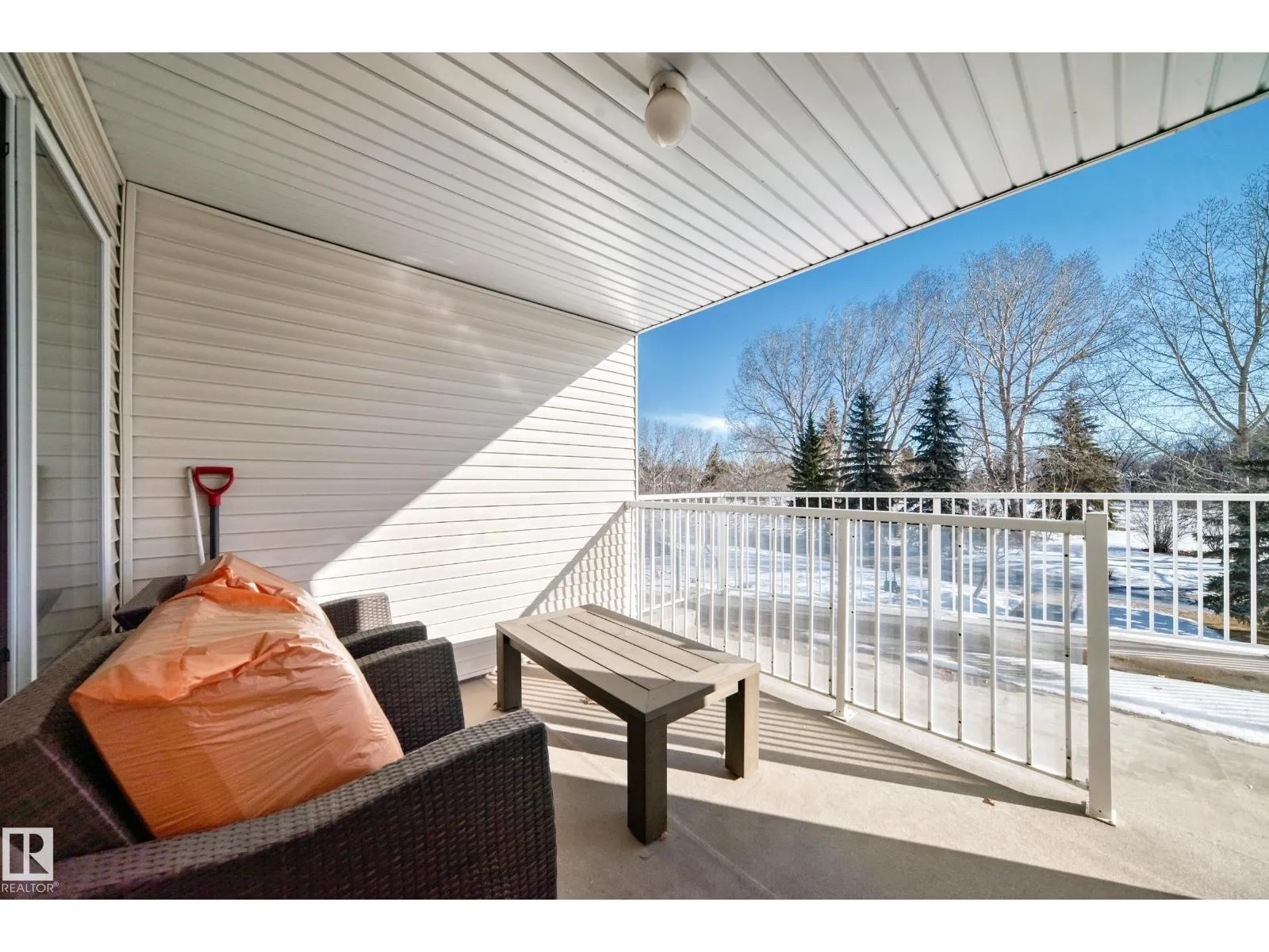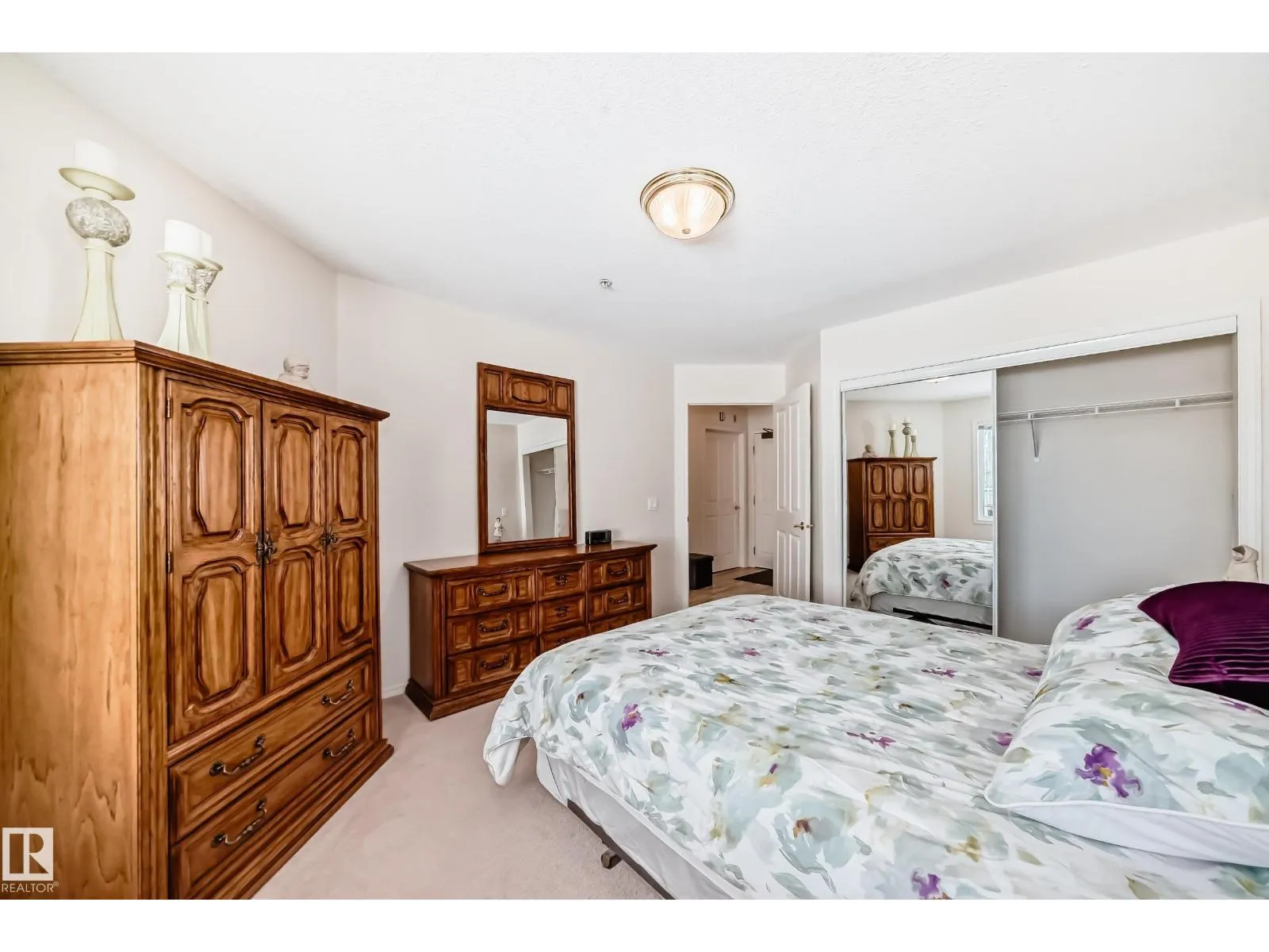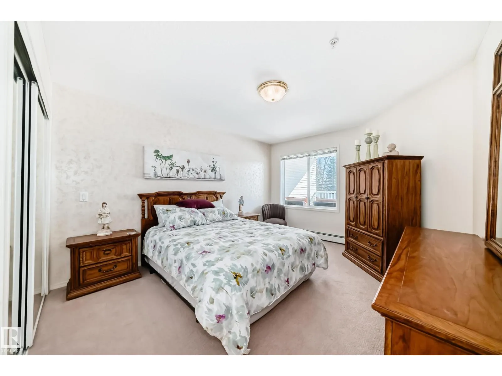 Savor the stunning views of St. Albert from this 1-bedroom condo on the quiet east side of this incredible 55+ building. Spacious rooms, along with upgrades in the kitchen & flooring, make this unit both comfortable & inviting. There is in-suite laundry & storage room for added convenience. Enjoy the extra outdoor space & morning sun from your covered balcony, perfect for relaxing or entertaining. The building offers so many amenities!!! Social spaces, libraries, dining room (currently you can order lunch & dinners 5 days a week), craft room, exercise room, multi-media room, games room with a variety of options, workshop, gazebo, hair salon, gift shop & more! An on-site administrator is available MonâFri. Beautiful gardens surround the property, along with a peaceful pond on the east side. Prefer the west side? No problemâyouâll love the large patio there as well. The second floor also features another library overlooking the main living room & 4 guest suites are available for visiting family & friends. (id:27476)