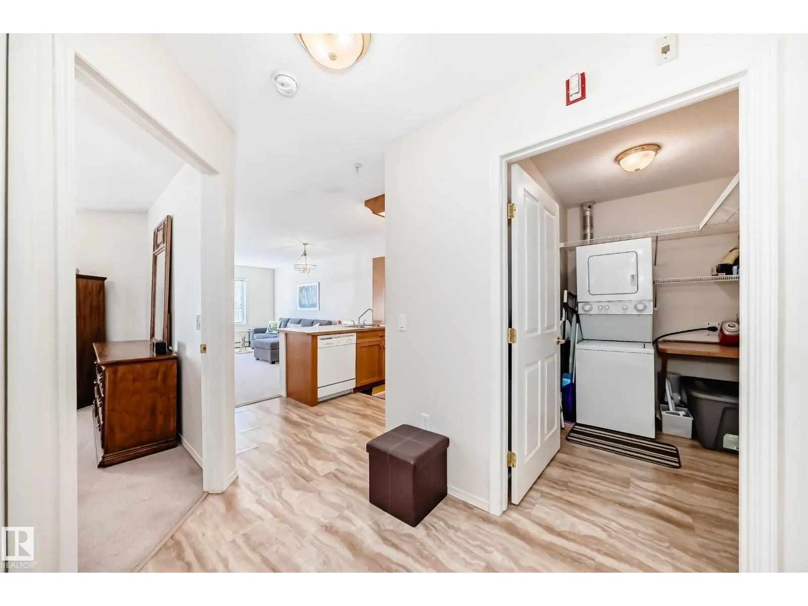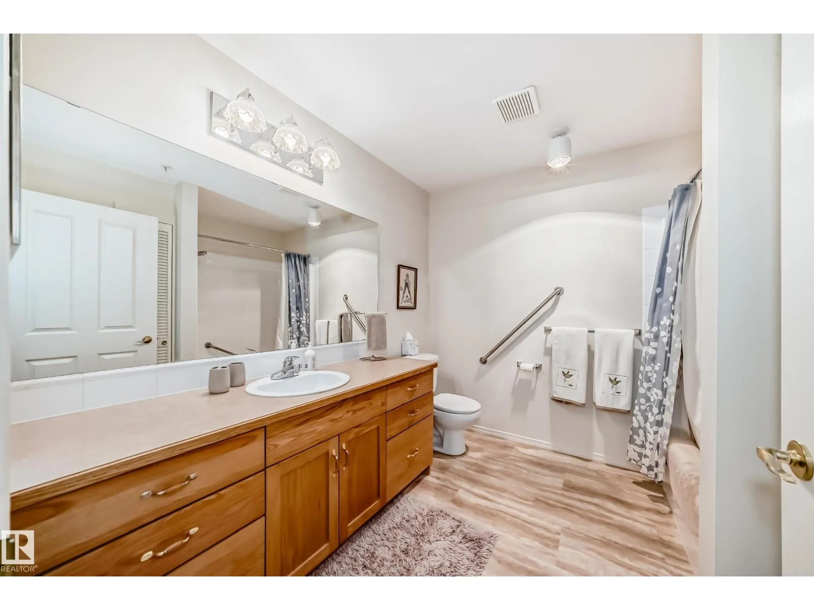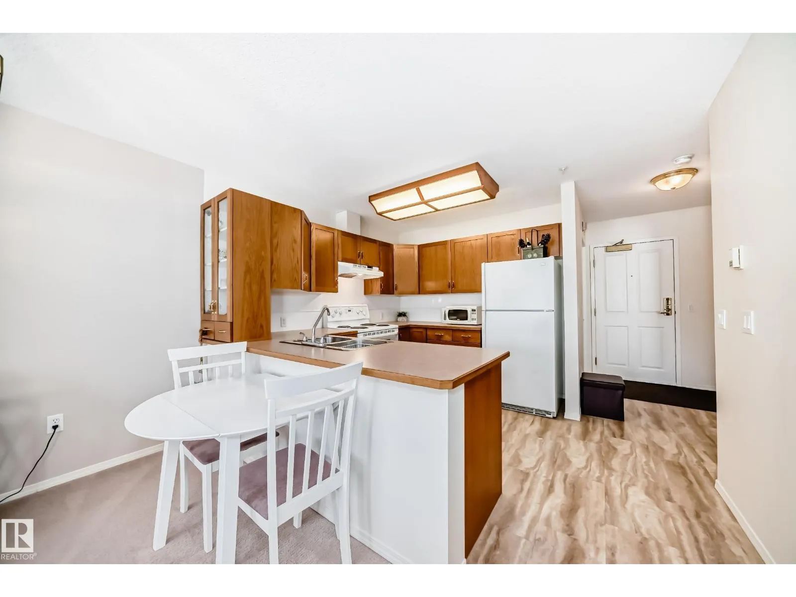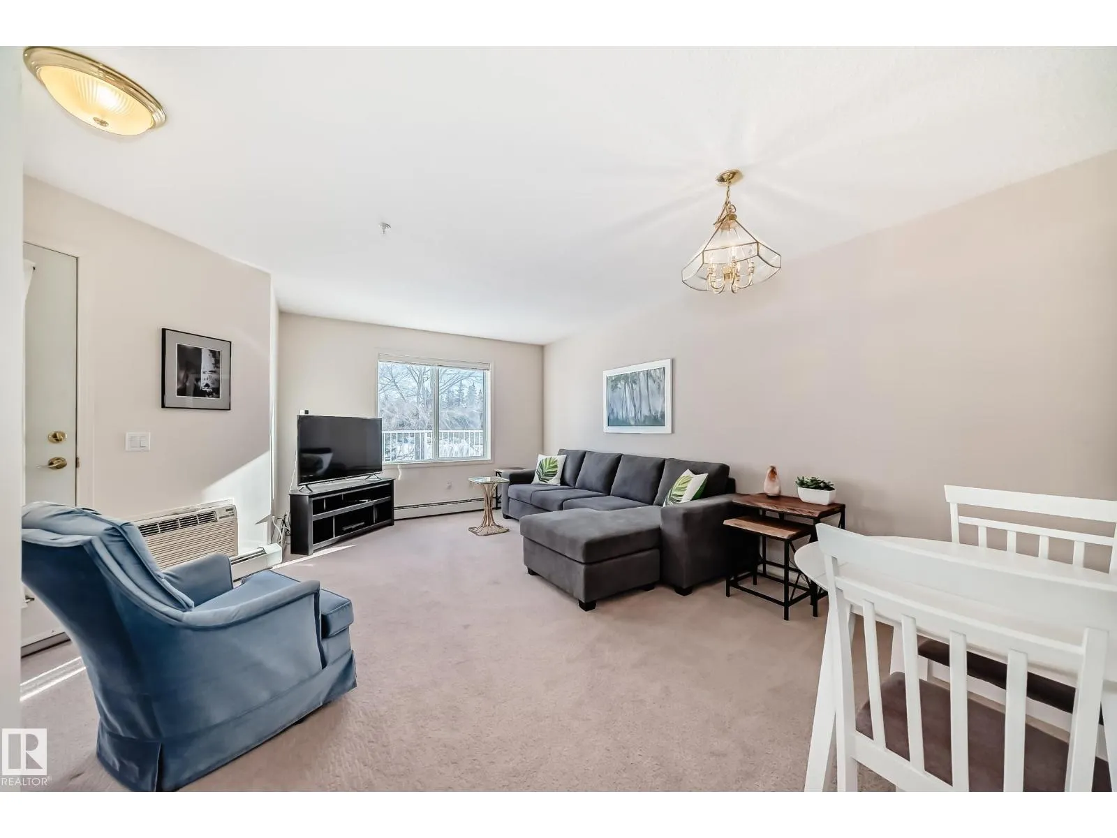 Savor the stunning views of St. Albert from this 1-bedroom condo on the quiet east side of this incredible 55+ building. Spacious rooms, along with upgrades in the kitchen & flooring, make this unit both comfortable & inviting. There is in-suite laundry & storage room for added convenience. Enjoy the extra outdoor space & morning sun from your covered balcony, perfect for relaxing or entertaining. The building offers so many amenities!!! Social spaces, libraries, dining room (currently you can order lunch & dinners 5 days a week), craft room, exercise room, multi-media room, games room with a variety of options, workshop, gazebo, hair salon, gift shop & more! An on-site administrator is available MonâFri. Beautiful gardens surround the property, along with a peaceful pond on the east side. Prefer the west side? No problemâyouâll love the large patio there as well. The second floor also features another library overlooking the main living room & 4 guest suites are available for visiting family & friends. (id:27476)