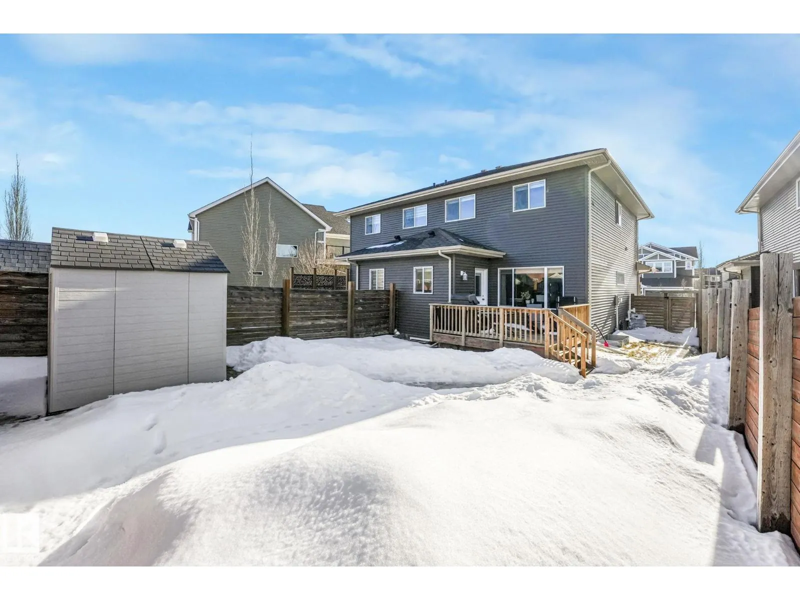 This beautifully maintained Daytona Homes half duplex offers +2100sqft of stylish living space in St. Albertâs premier beach community. The bright, open main floor features a modern kitchen with ample cabinetry, pantry, and generous counter space flowing into the dining area and bright living room. A convenient half bath and rear entry with backyard access complete the main level. Upstairs offers 3 comfortable bedrooms, including a spacious primary retreat with walk-in closet and 3-piece ensuite, plus a full bathroom and convenient upper-floor laundry. The fully finished basement adds great flexibility with a 4th bedroom, another full bathroom, and two additional living spaces, perfect for relaxing or a home office. Outside, the yard is fully landscaped and fenced with a deck to enjoy summer evenings. Jensen Lakes amenities include a park, private beach with winter skating &ice fishing, BBQ area, new tennis courts coming this year, plus plenty of community events that make it easy to enjoy the outdoors! (id:27476)