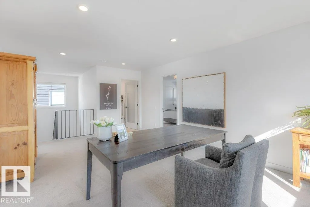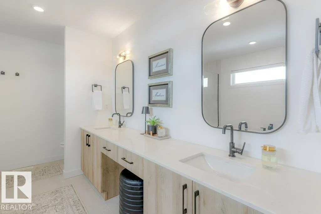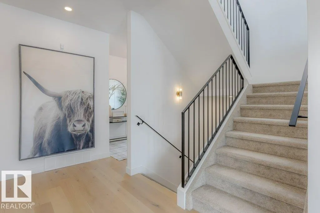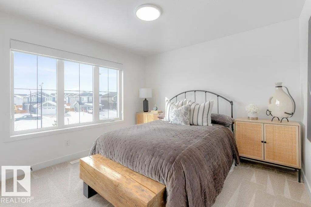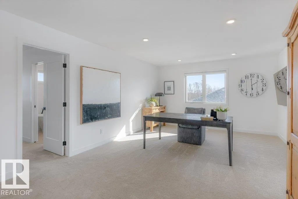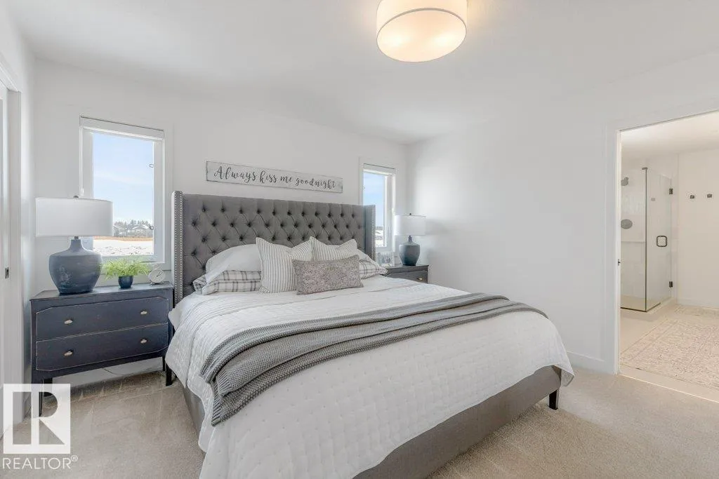 Stunning custom-built estate home in Riverside, St. Albert offering 2,633 sq. ft. of beautifully finished living space. This move-in ready home features 10â ceilings, gorgeous engineered hardwood floors and a bright great room with stunning stone gas fireplace. The chefâs kitchen is designed for entertaining with a 13-ft island, farmhouse faucet, quartz backsplash, 6-burner gas stove with custom shiplap feature wall and a fully equipped butlerâs pantry with sink, bar fridge and built-in shelving. A striking wine room with fluted glass door adds a unique touch. Upstairs offers a large bonus room, a spa-like primary suite with 2 walk-in closets and luxurious ensuite, plus two spacious bedrooms connected by a Jack & Jill bathroom. Upper floor laundry room as well. Enjoy central A/C, hot water on demand, security system and roughed-in EV charger. The professionally landscaped yard features a composite deck, rock retaining wall and lighting. Oversized insulated triple garage completes this exceptional home. (id:27476)
