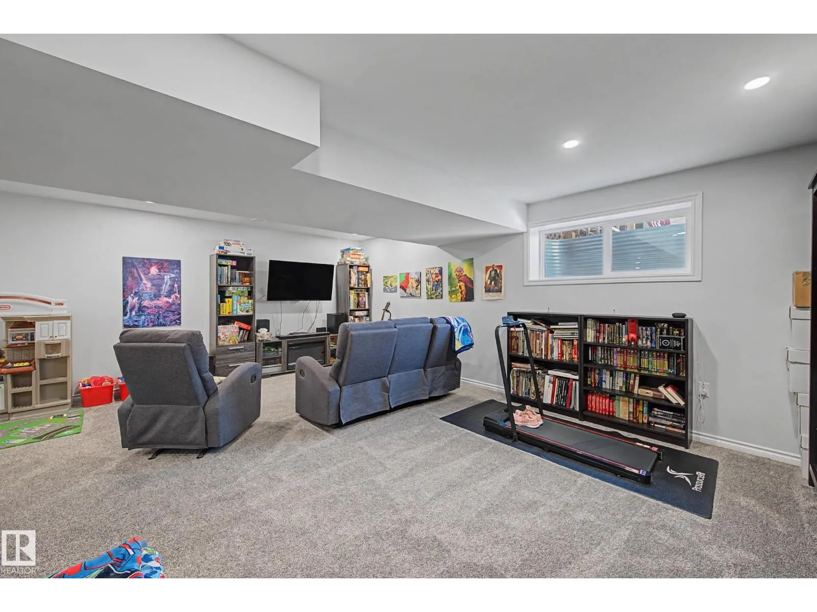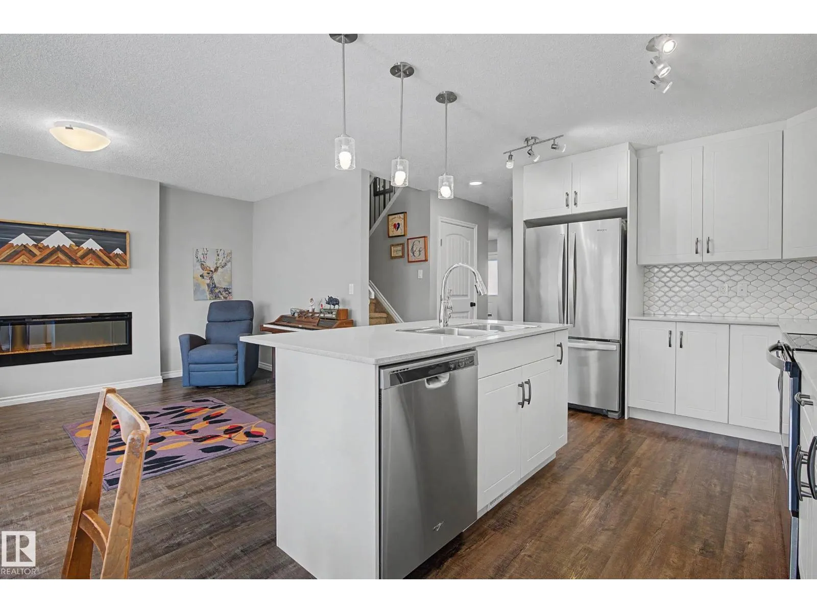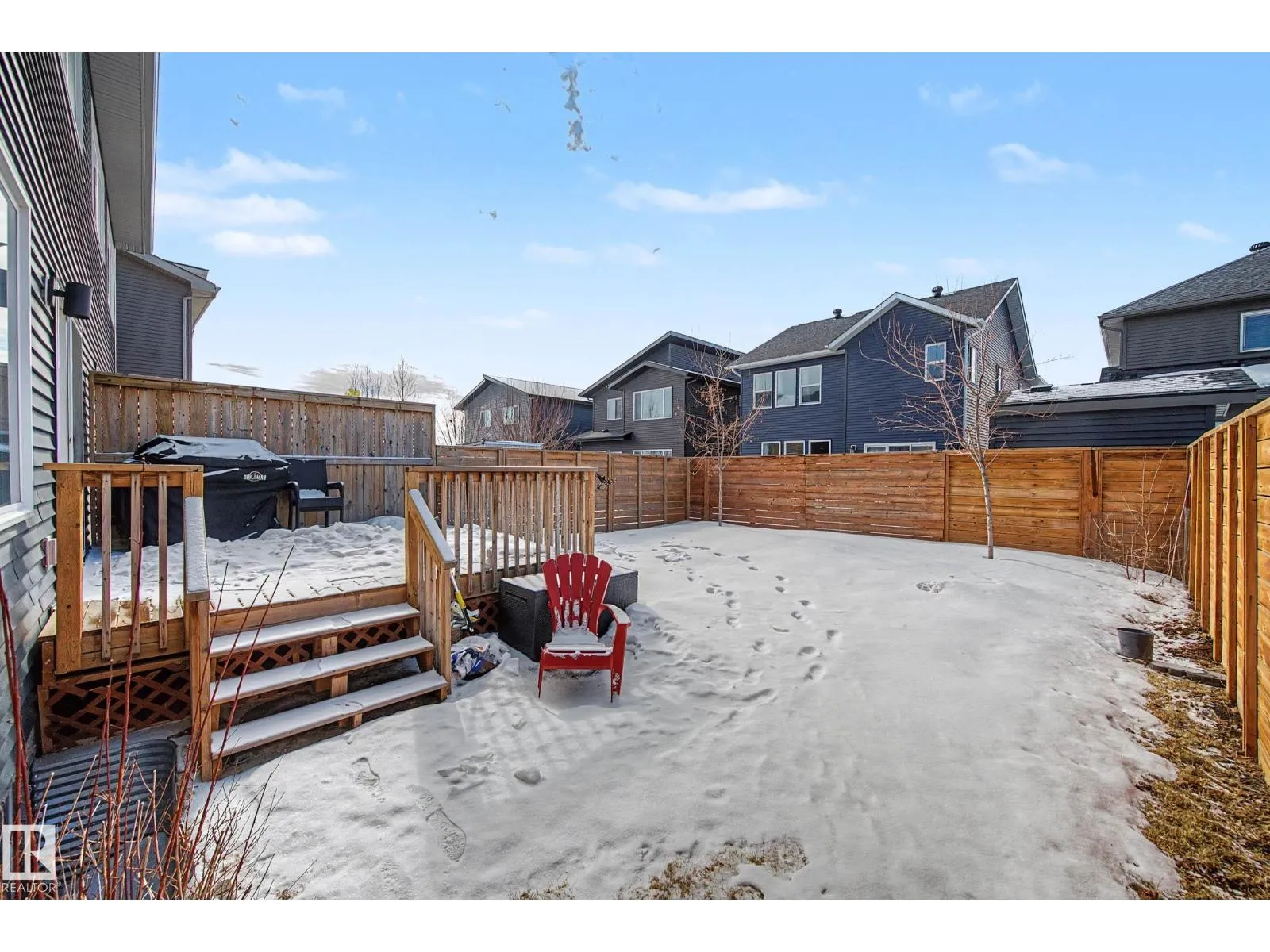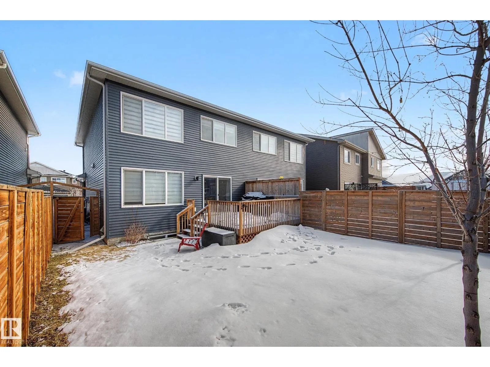 This beautifully maintained 3 bedroom home offers a bright, modern layout and fantastic upgrades throughout. The fully fenced, landscaped backyard is perfect for kids and pets, with plenty of room to play while you relax or BBQ on the spacious deck. Inside, the home features luxury vinyl plank flooring, quartz countertops, stylish lighting, and a Wi-Fiâenabled furnace. The inviting great room centers around a cozy fireplace, while the kitchenâs large island and generous prep space make everyday cooking and entertaining effortless. The dining area comfortably fits an 8-person table. Upstairs, the open railing leads to a sun-filled west-facing bonus room, creating the perfect spot to unwind. The primary suite includes a private ensuite with dual sinks and a spacious walk-in closet. The professionally finished basement adds even more functional living space and includes a roughed-in bathroom. Located close to parks with quick access to the Henday, this home blends comfort and style. (id:27476)