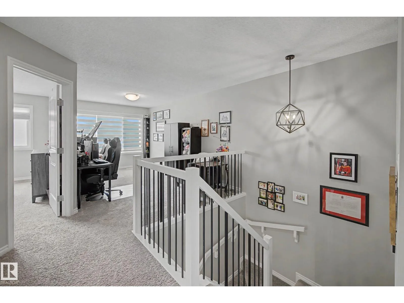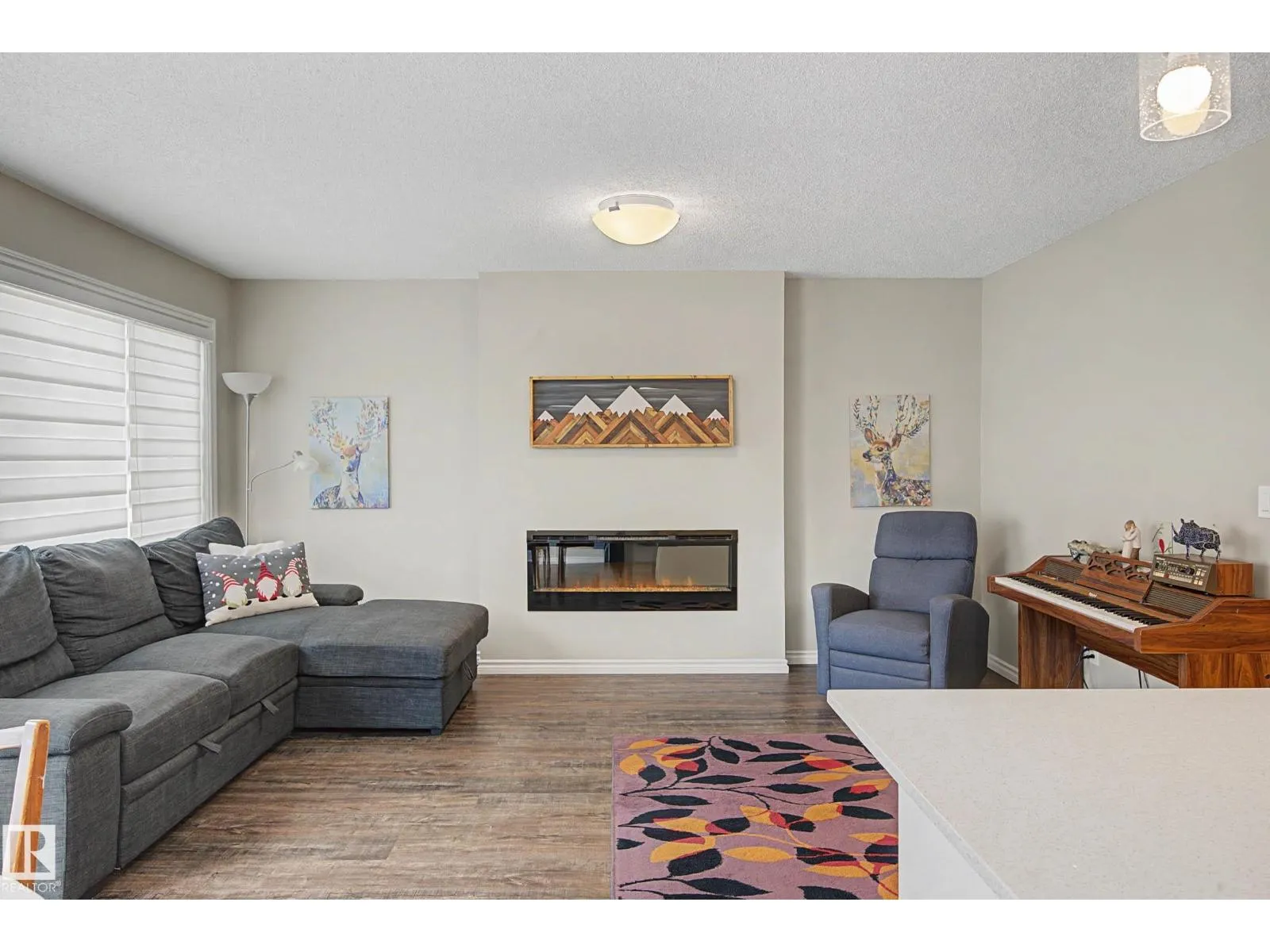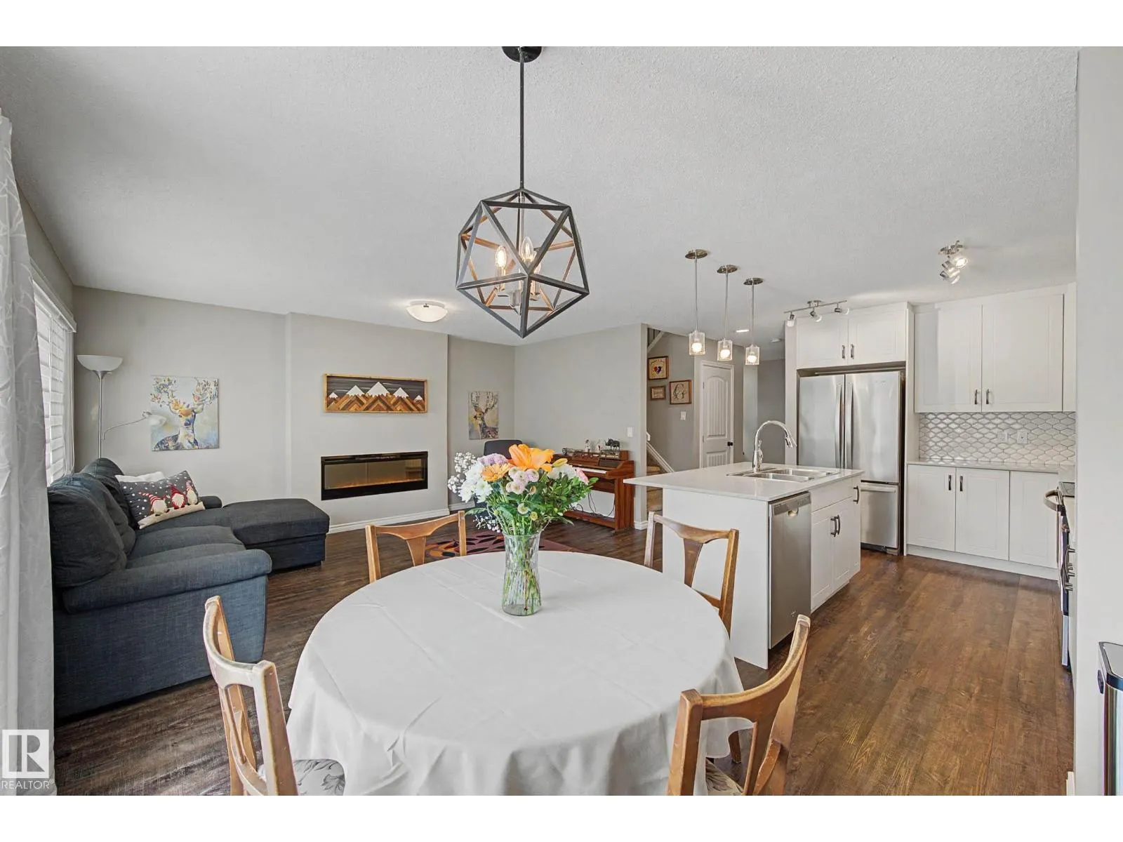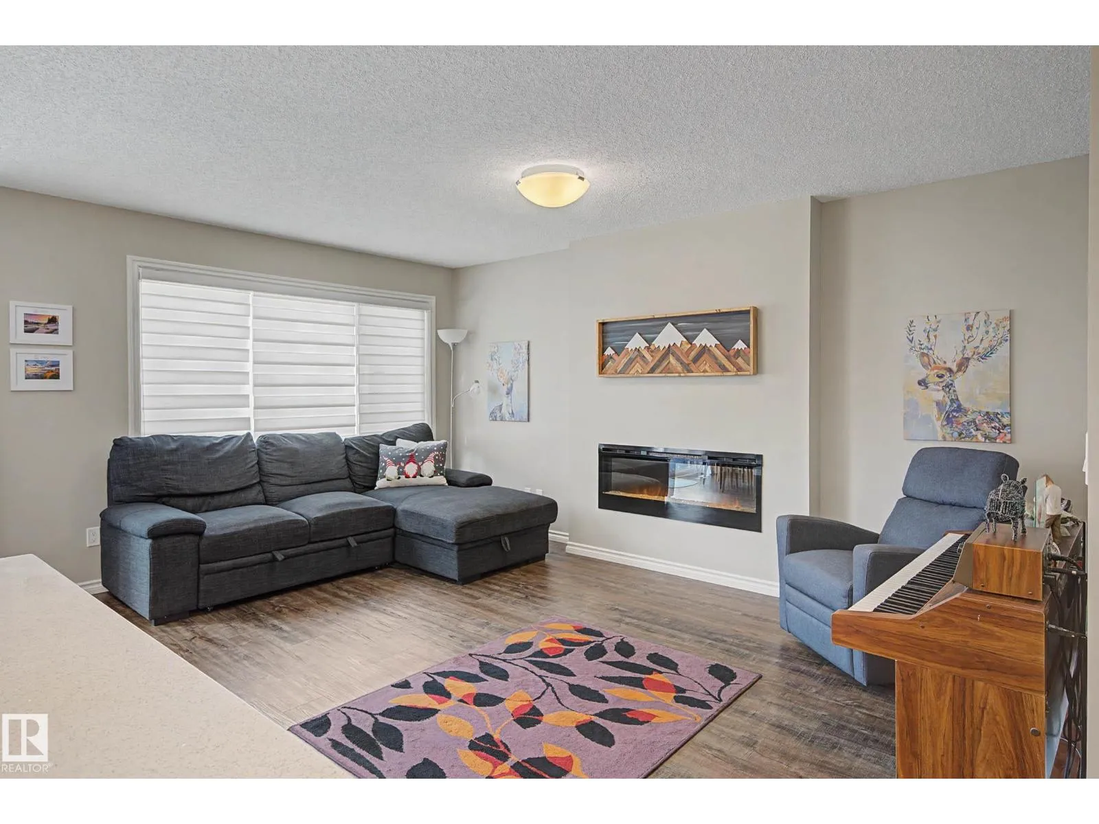 This beautifully maintained 3 bedroom home offers a bright, modern layout and fantastic upgrades throughout. The fully fenced, landscaped backyard is perfect for kids and pets, with plenty of room to play while you relax or BBQ on the spacious deck. Inside, the home features luxury vinyl plank flooring, quartz countertops, stylish lighting, and a Wi-Fiâenabled furnace. The inviting great room centers around a cozy fireplace, while the kitchenâs large island and generous prep space make everyday cooking and entertaining effortless. The dining area comfortably fits an 8-person table. Upstairs, the open railing leads to a sun-filled west-facing bonus room, creating the perfect spot to unwind. The primary suite includes a private ensuite with dual sinks and a spacious walk-in closet. The professionally finished basement adds even more functional living space and includes a roughed-in bathroom. Located close to parks with quick access to the Henday, this home blends comfort and style. (id:27476)