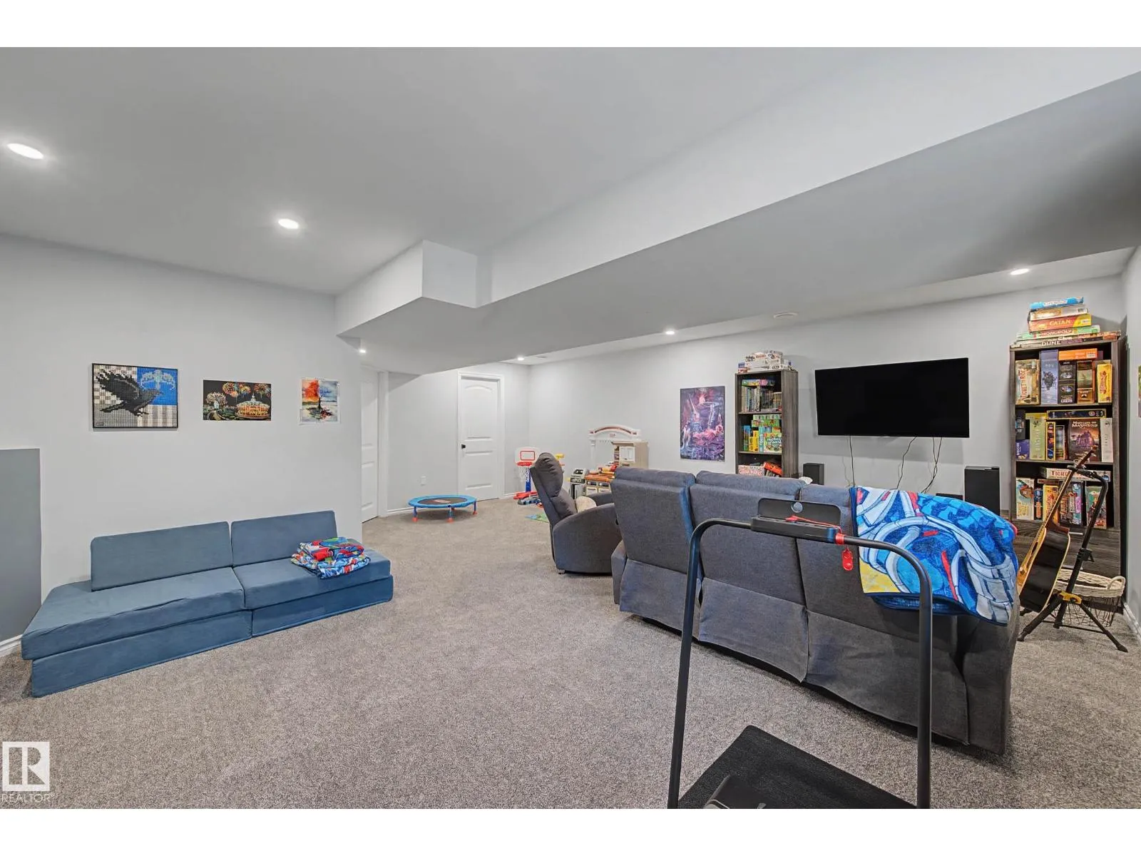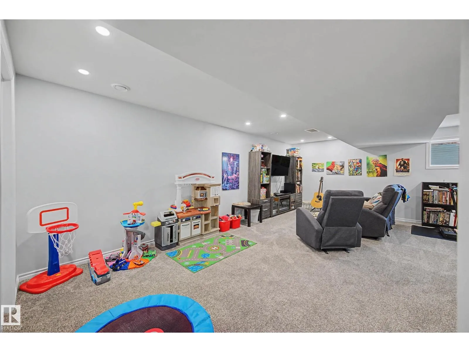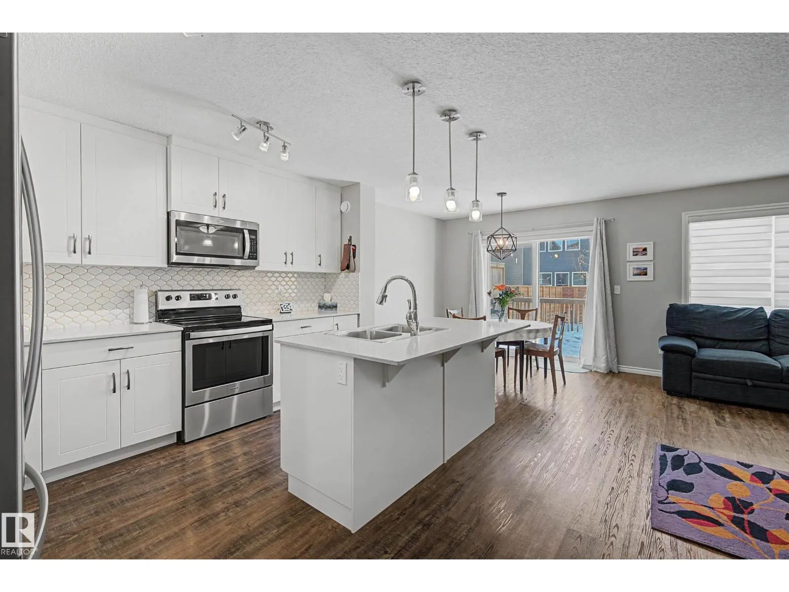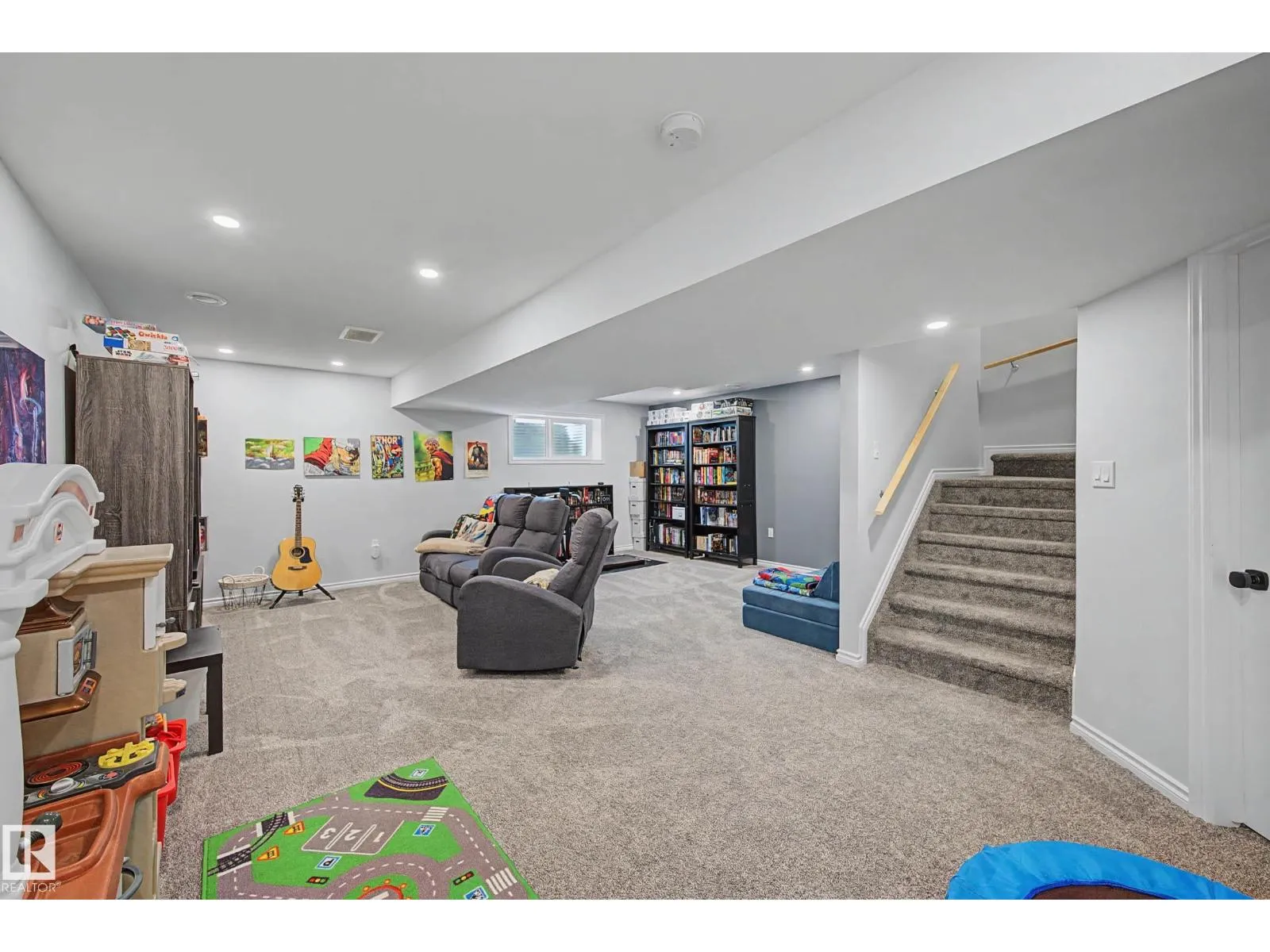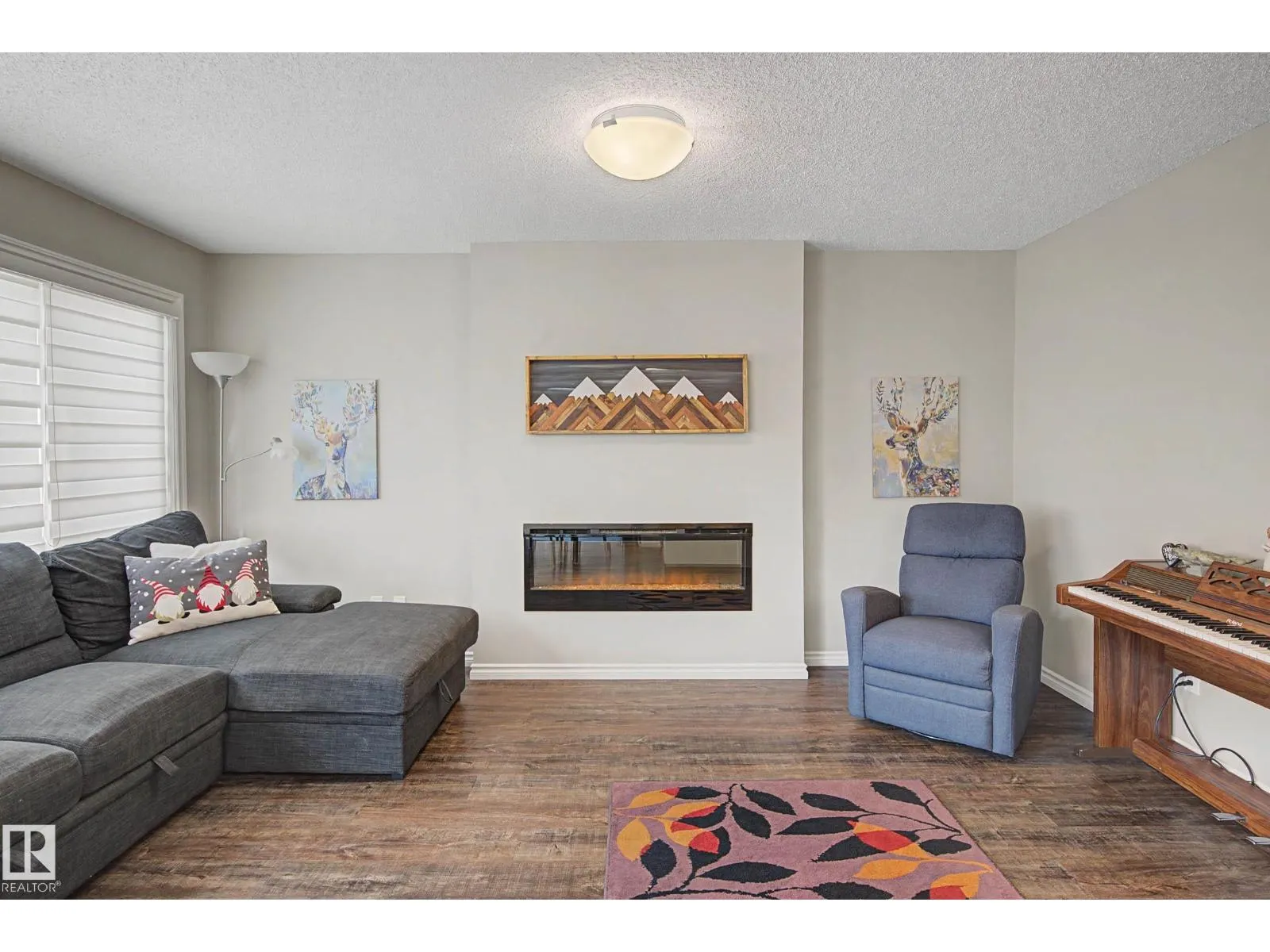This beautifully maintained 3 bedroom home offers a bright, modern layout and fantastic upgrades throughout. The fully fenced, landscaped backyard is perfect for kids and pets, with plenty of room to play while you relax or BBQ on the spacious deck. Inside, the home features luxury vinyl plank flooring, quartz countertops, stylish lighting, and a Wi-Fiâenabled furnace. The inviting great room centers around a cozy fireplace, while the kitchenâs large island and generous prep space make everyday cooking and entertaining effortless. The dining area comfortably fits an 8-person table. Upstairs, the open railing leads to a sun-filled west-facing bonus room, creating the perfect spot to unwind. The primary suite includes a private ensuite with dual sinks and a spacious walk-in closet. The professionally finished basement adds even more functional living space and includes a roughed-in bathroom. Located close to parks with quick access to the Henday, this home blends comfort and style. (id:27476)
