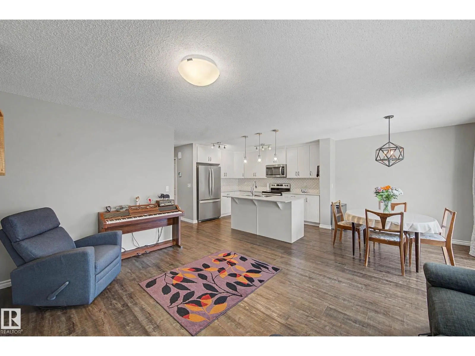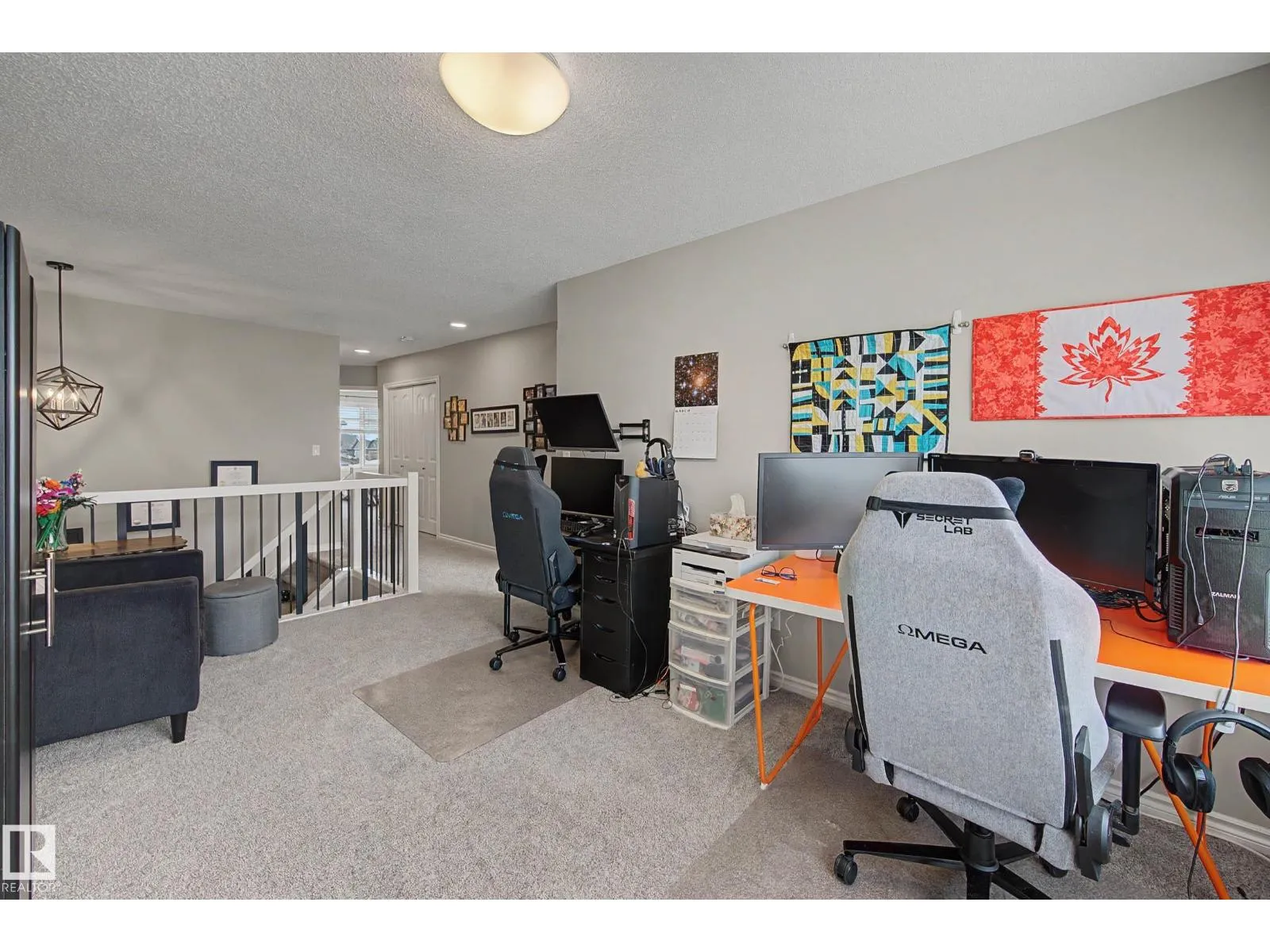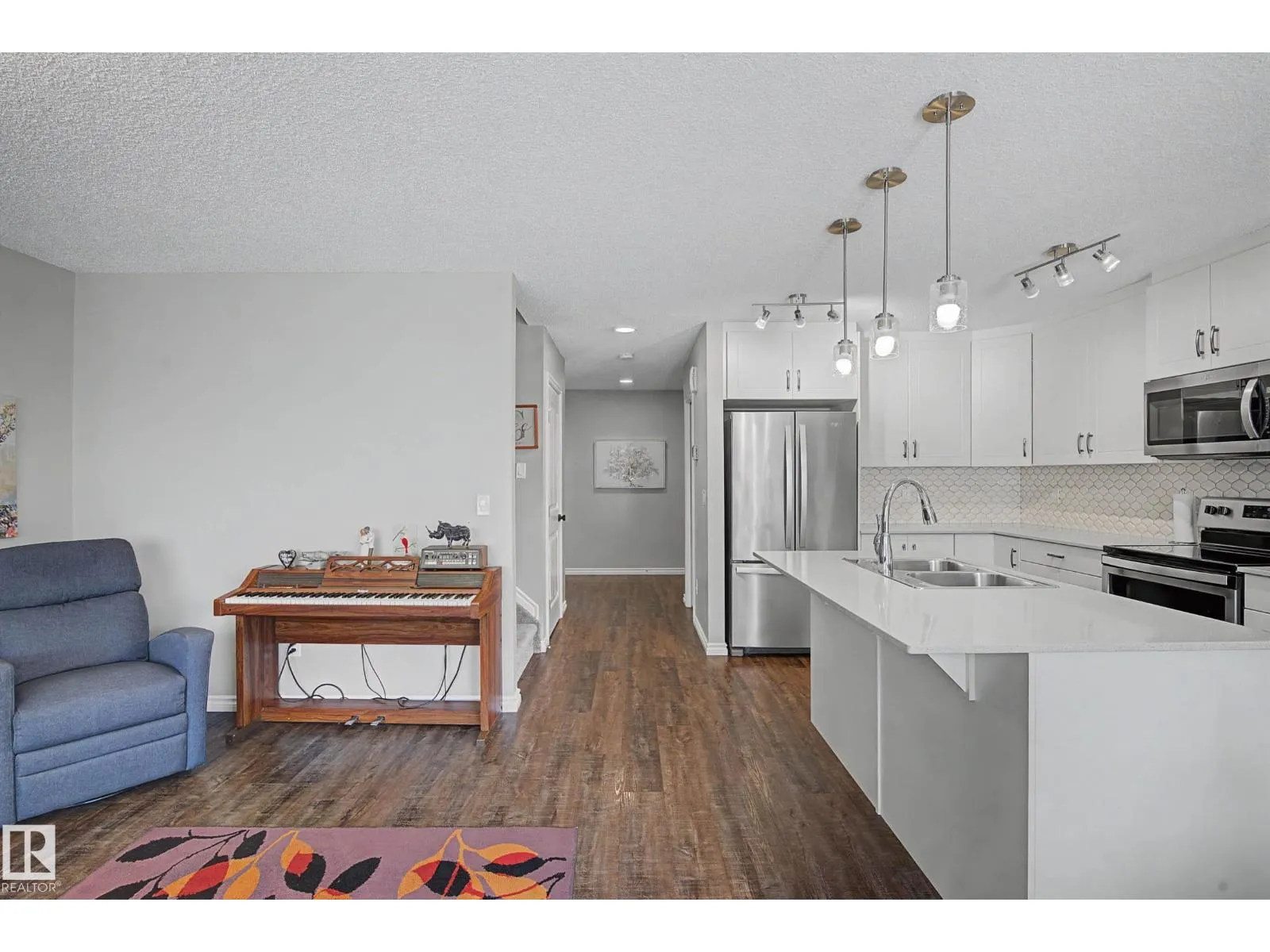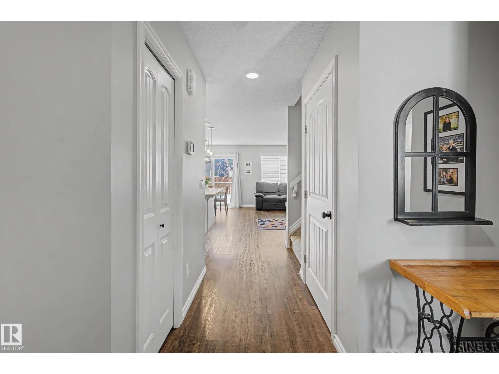 This beautifully maintained 3 bedroom home offers a bright, modern layout and fantastic upgrades throughout. The fully fenced, landscaped backyard is perfect for kids and pets, with plenty of room to play while you relax or BBQ on the spacious deck. Inside, the home features luxury vinyl plank flooring, quartz countertops, stylish lighting, and a Wi-Fiâenabled furnace. The inviting great room centers around a cozy fireplace, while the kitchenâs large island and generous prep space make everyday cooking and entertaining effortless. The dining area comfortably fits an 8-person table. Upstairs, the open railing leads to a sun-filled west-facing bonus room, creating the perfect spot to unwind. The primary suite includes a private ensuite with dual sinks and a spacious walk-in closet. The professionally finished basement adds even more functional living space and includes a roughed-in bathroom. Located close to parks with quick access to the Henday, this home blends comfort and style. (id:27476)