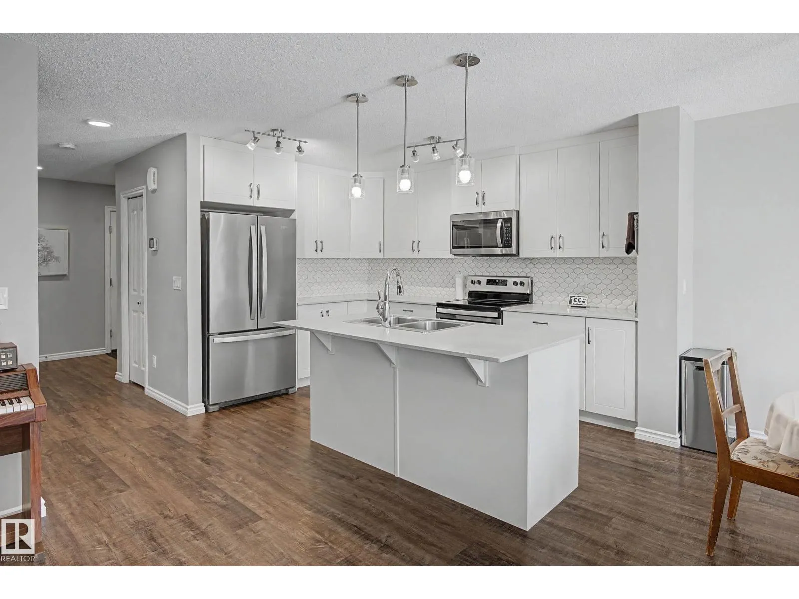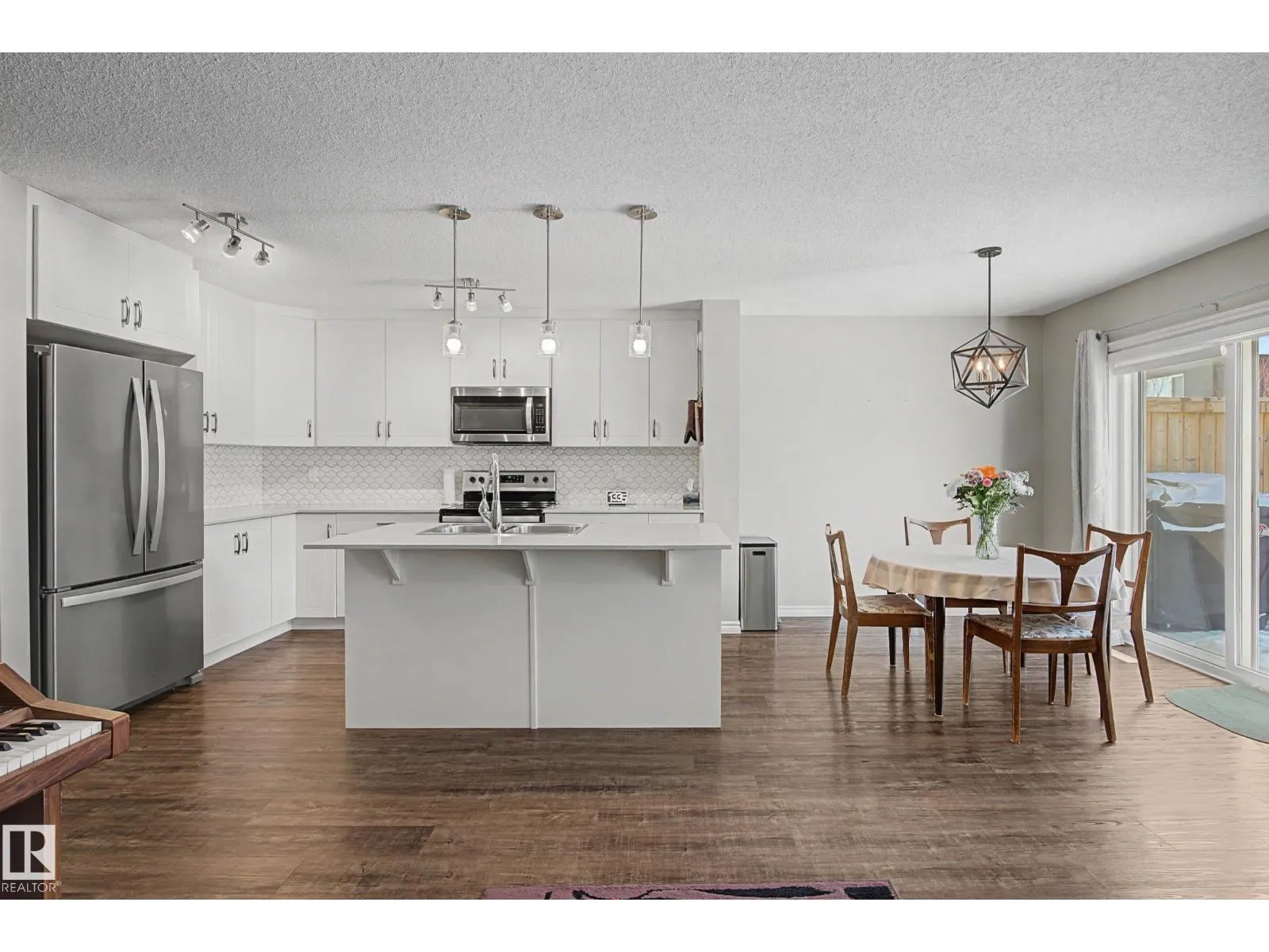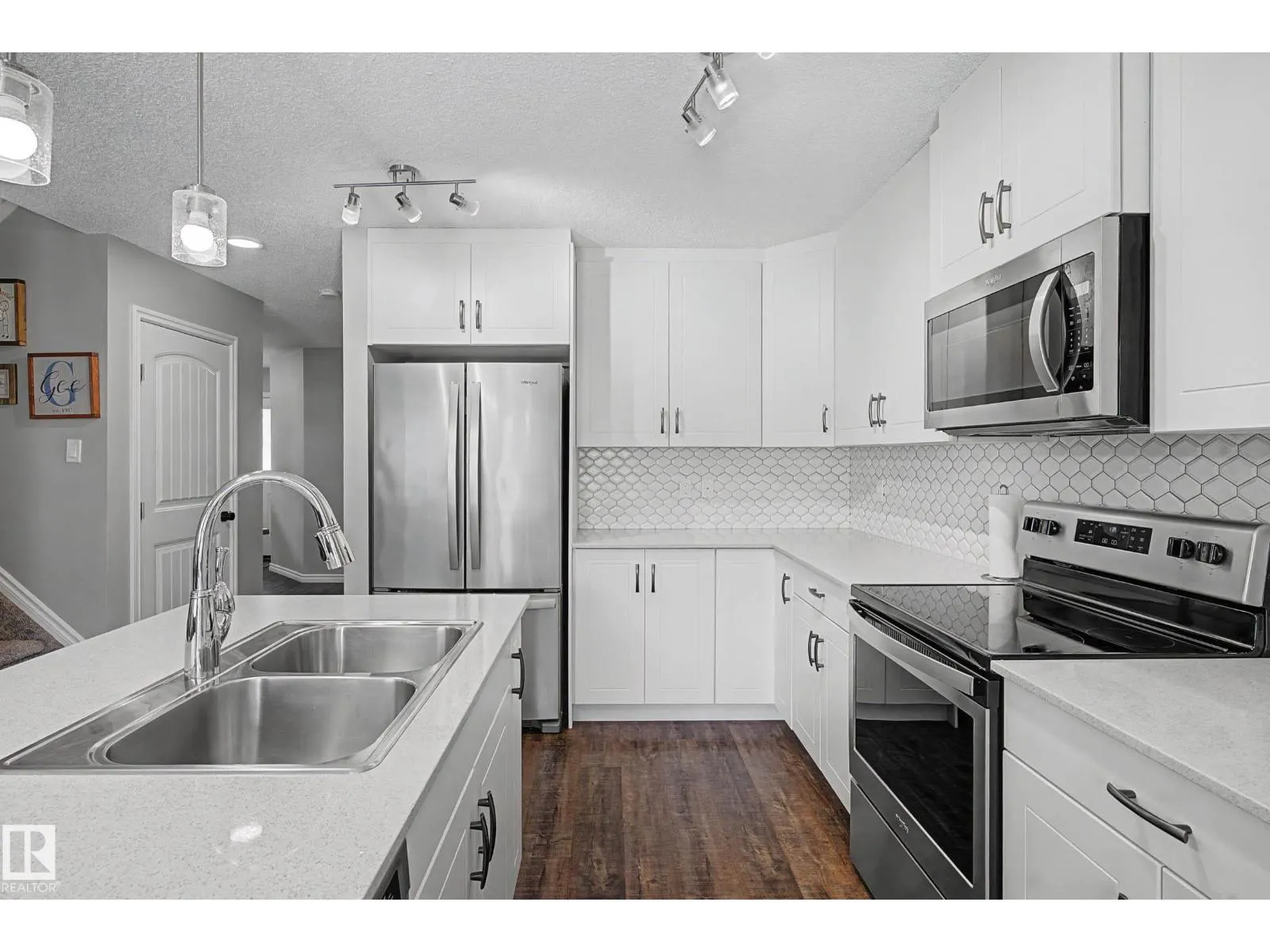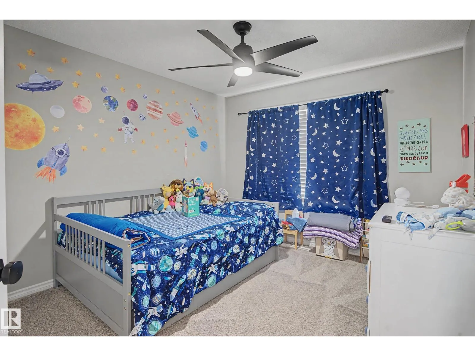 This beautifully maintained 3 bedroom home offers a bright, modern layout and fantastic upgrades throughout. The fully fenced, landscaped backyard is perfect for kids and pets, with plenty of room to play while you relax or BBQ on the spacious deck. Inside, the home features luxury vinyl plank flooring, quartz countertops, stylish lighting, and a Wi-Fiâenabled furnace. The inviting great room centers around a cozy fireplace, while the kitchenâs large island and generous prep space make everyday cooking and entertaining effortless. The dining area comfortably fits an 8-person table. Upstairs, the open railing leads to a sun-filled west-facing bonus room, creating the perfect spot to unwind. The primary suite includes a private ensuite with dual sinks and a spacious walk-in closet. The professionally finished basement adds even more functional living space and includes a roughed-in bathroom. Located close to parks with quick access to the Henday, this home blends comfort and style. (id:27476)