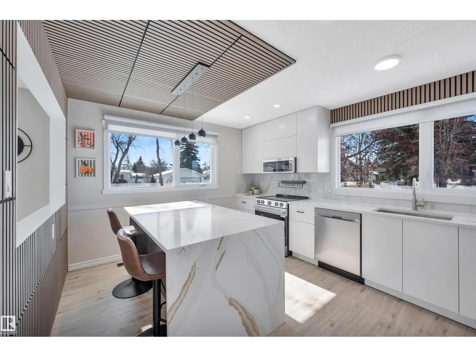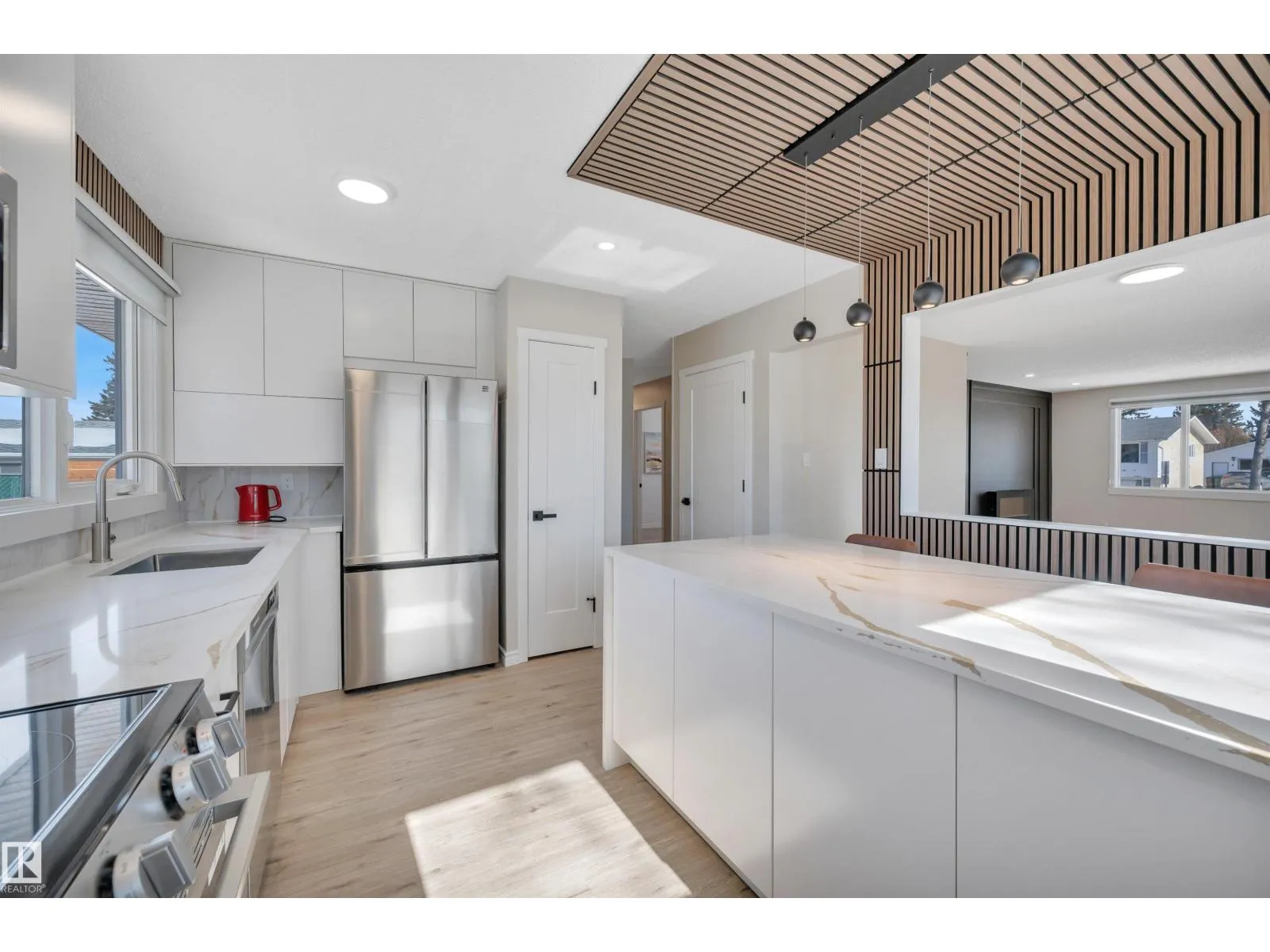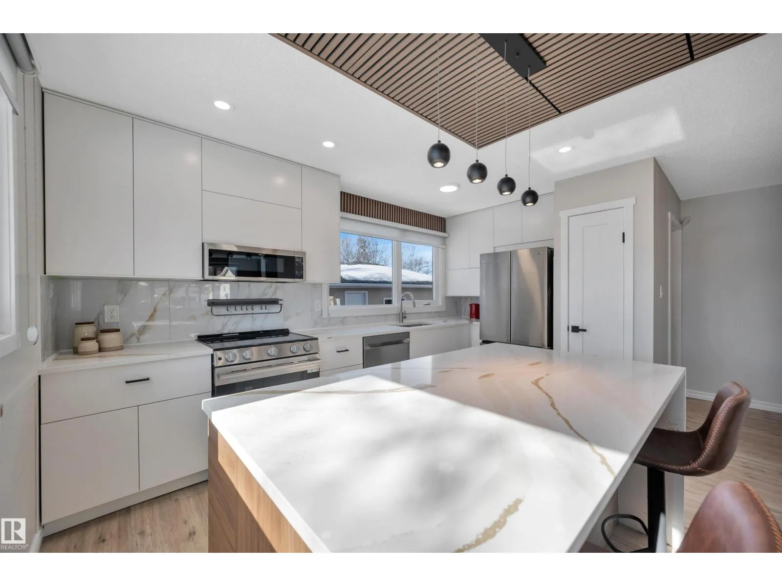Discover this modern luxury family home situated on a large corner lot in desirable Lacombe Park just steps from an elementary school & park! This beautifully RENOVATED move-in ready bungalow offers over 2300 sqft of developed living space. The main floor features a BRAND NEW KITCHEN featuring a massive waterfall island, new stainless steel appliances, PREMIUM QUARTZ counters & a spacious living & dining room w/ electric f/p. The primary bedroom includes a convenient 2pce ensuite. 2 additional bedrooms & a 5pce bath complete the main floor. The FULLY FINISHED BASEMENT has a rec room w/ a wood-burning f/p, a WET BAR w/ TWO BURNER COOKTOP perfect for a second kitchen, a 4th bedroom & den w/ potential for a large dressing room or an office, plus a 3pce bath w/ built in DRY SAUNA, laundry & ample storage. Front & rear decks, an OVERSIZED HEATED DOUBLE GARAGE (21'5 x 23'5) & plenty of parking complete this fantastic home! (id:27476)
