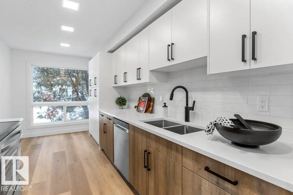 STYLISHLY RENOVATED & MOVE-IN READY! This beautifully updated 1,162 sq ft condo offers modern comfort and effortless living. The brand-new kitchen is a standout, featuring quartz countertops, tile backsplash, new cabinetry with pantry space, and updated appliancesâperfect for everyday living and entertaining. New vinyl plank flooring and plush carpet flow throughout, complemented by updated light fixtures and sleek new pot lights that brighten every space. The bathrooms have been fully refreshed with a new stand-up shower, new bathtub, modern tilework, and updated plumbing fixtures for a clean, contemporary feel. Additional upgrades include a newer hot water tank, adding peace of mind. Thoughtfully renovated from top to bottom, this home offers a fresh, modern look with nothing left to do but move in and enjoy. Conveniently located close to schools, shopping, and quick access to the Anthony Henday, making daily commutes and errands easy. Ideal for first-time buyers, downsizers. (id:27476)