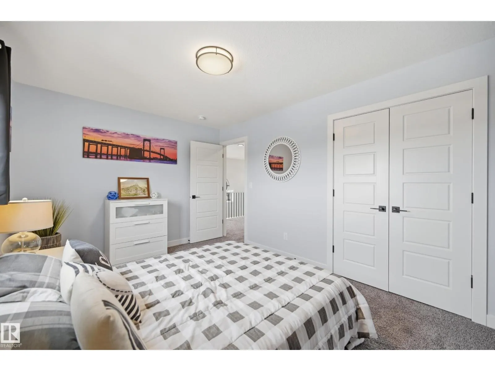 Located in the desirable Riverside area, this San Rufo built 2 storey home is sure to impress. Situated on a HUGE lot, this home hosts a gorgeous open concept main floor features, 9â ceilings, styled features throughout, and a good sized kitchen including a huge central island w/ farmhouse sink and custom coffee bar. A custom pantry, large dining space and living room with electric fireplace complete this space. The main level also features a 2 pce bathroom + a mudroom w/ custom built ins w/ access to the oversized double garage. Upstairs features 3 good sized bedrooms incl. the primary suite w/ 4 pce ensuite & walk-in closet, a bonus room, another 4 pce bathroom and laundry room. The basement is unspoiled except for a developed 4 pce bathroom & all the exterior electrical work complete. Additional features include: A/C, custom exterior lighting and designer details! Close to all amenities, central St. Albert & easy Ray Gibbon / Henday access. (id:27476)