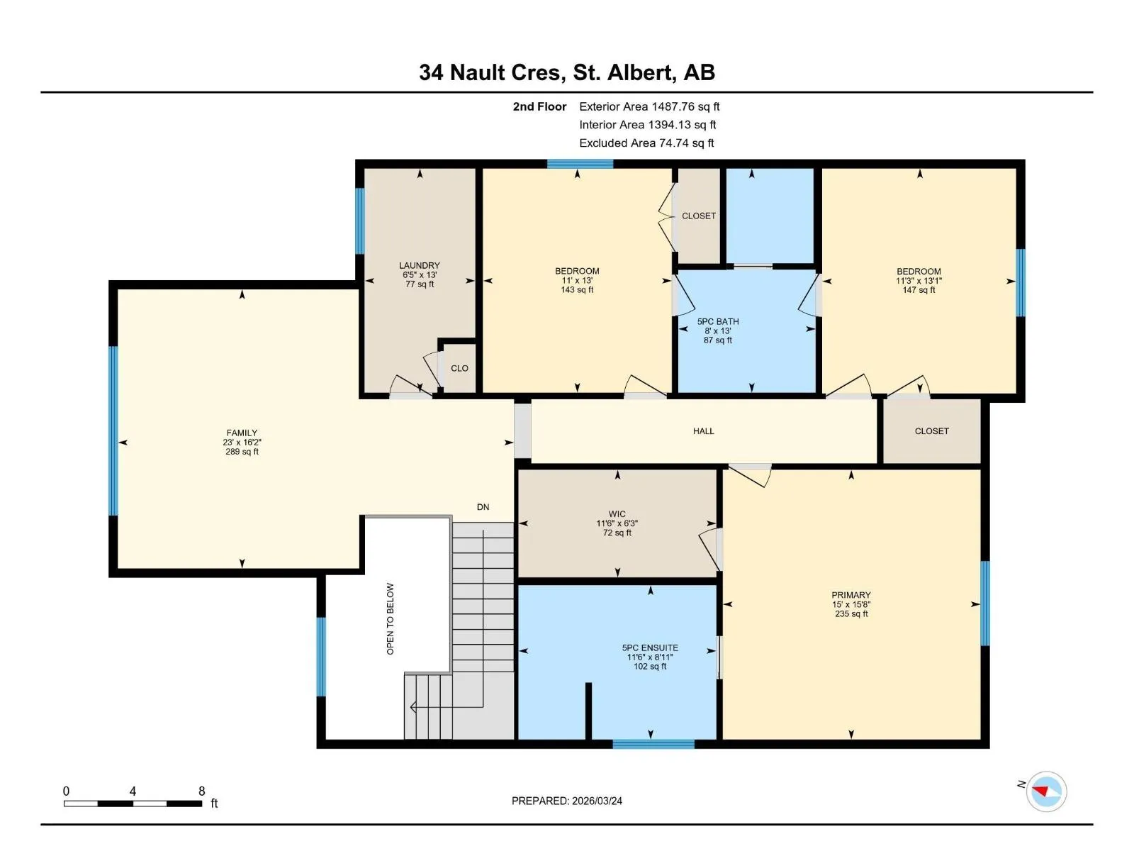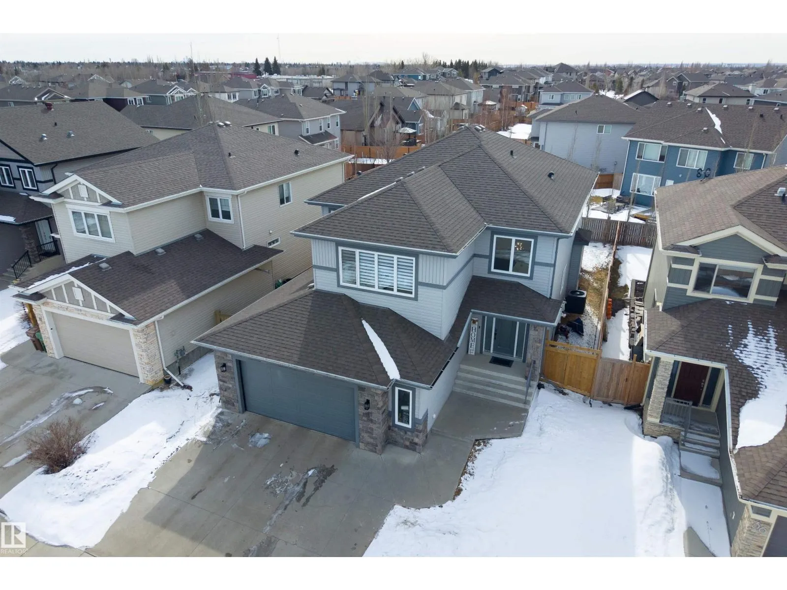 On a crescent in North Ridge sits this spacious 2 storey home w/ over 2800 sqft above grade. The entrance welcomes guests w/ tile flooring & a soaring, 2 storey ceiling. The main floor has a flex room w/ French doors & hardwood flooring. The living room has huge windows overlooking the backyard & a gas f/p. The dining nook has access out to the south-facing backyard. The kitchen has quartz counters, stainless steel appliances, a huge eating bar island & a spacious walk through pantry. There is a 2pce bathroom next to the large family size mudroom. The 2nd floor has 3 large bedrooms, a bonus room & an amazing Jack-and-Jill bathroom, which is divided so the tub/shower & toilet are separate from the double vanity. The 5pce ensuite is very spacious w/ a jetted tub. The primary bedroom features a large walk in closet. The 2nd floor is complete w/ a laundry room featuring many cabinets. The basement is unspoiled. The HEATED double attached garage is 25'2 x 27'3. This is an excellent property to call home! (id:27476)