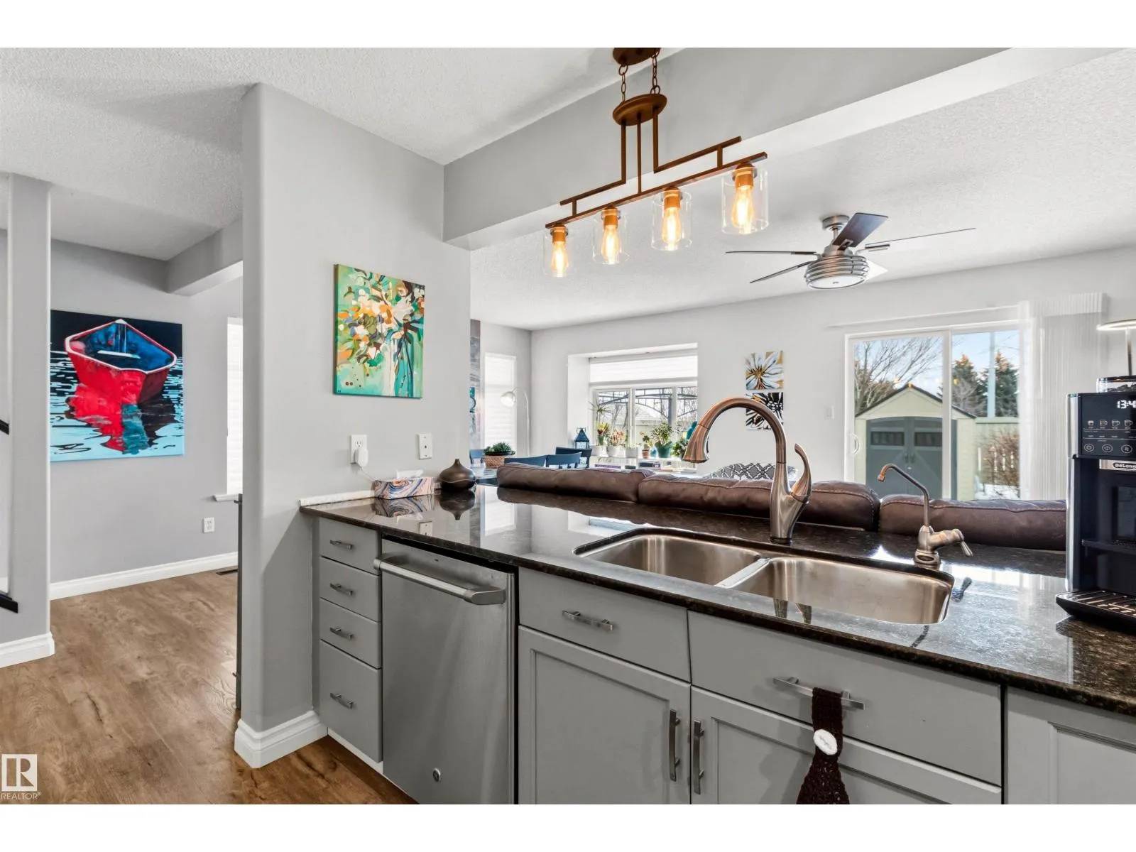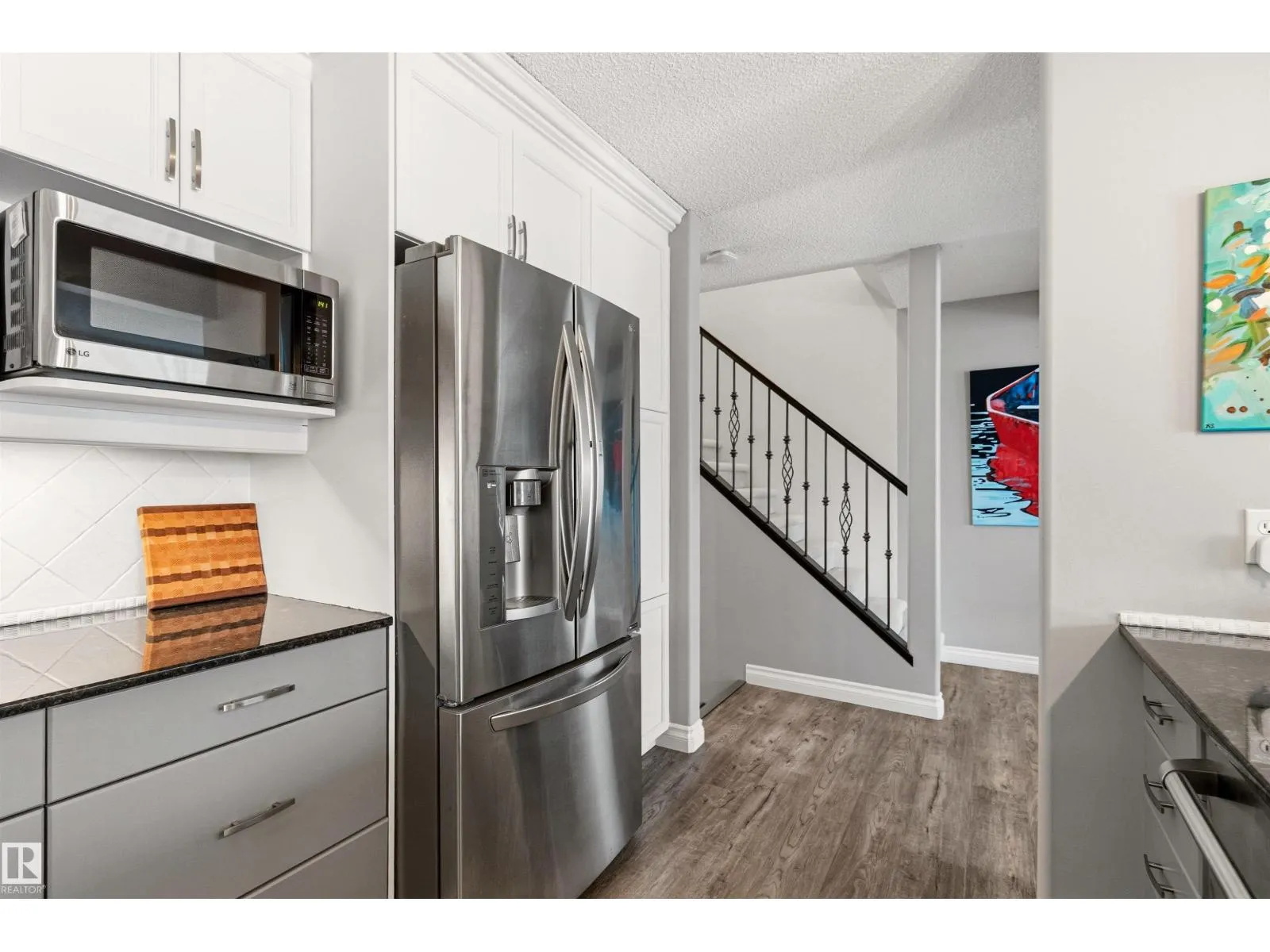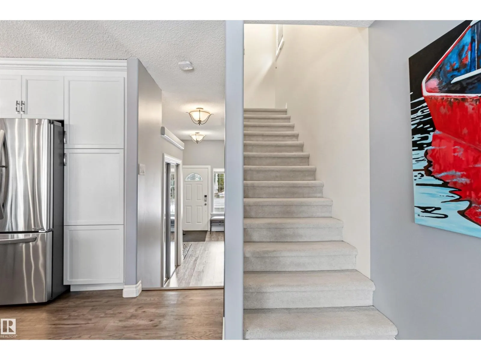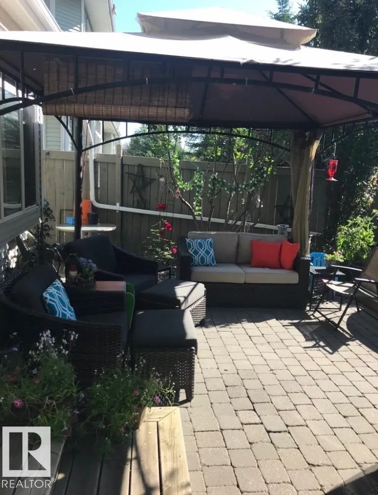 This is one of the nicest Duplex Townhomes in its price range on the local market. This desirable Erin Ridge Lane offers beautiful upgrades throughout. Nicely upgraded kitchen, granite counters, modern finished cabinets and open to the dining and living area. The living room features a gas fireplace, and a window bench seat overlooking the inviting south facing private yard complete with Gazebo, stone patio and perennial shrubs and plants. The dining area gives access to the yard. Main level offers a great sized entry, a convenient two-piece guest bath and inside entry to the garage. The finished basement includes a 3 pce bathroom, great family room area with built in wall unit and tons of storage. Upstairs are 3 good sized bedrooms. The huge primary bedroom includes a ensuite bath and walk-in closet. 4 bathrooms in total. The single attached garage also has 2 extra parking spaces on the driveway. Low condo fees of $155.00 a month! You will be impressed w/modern colors and is move ready. (id:27476)