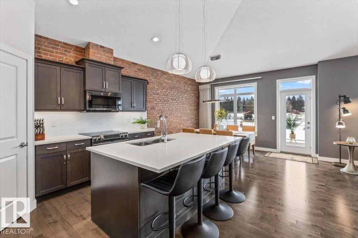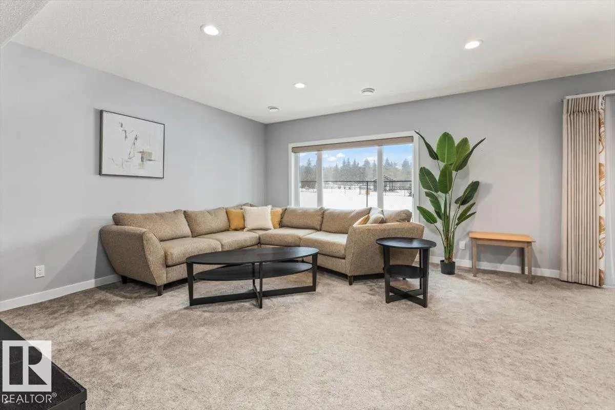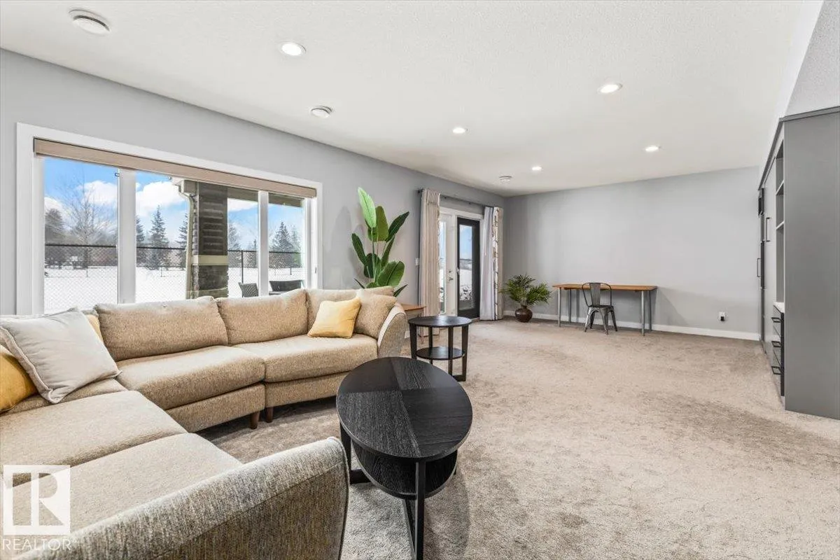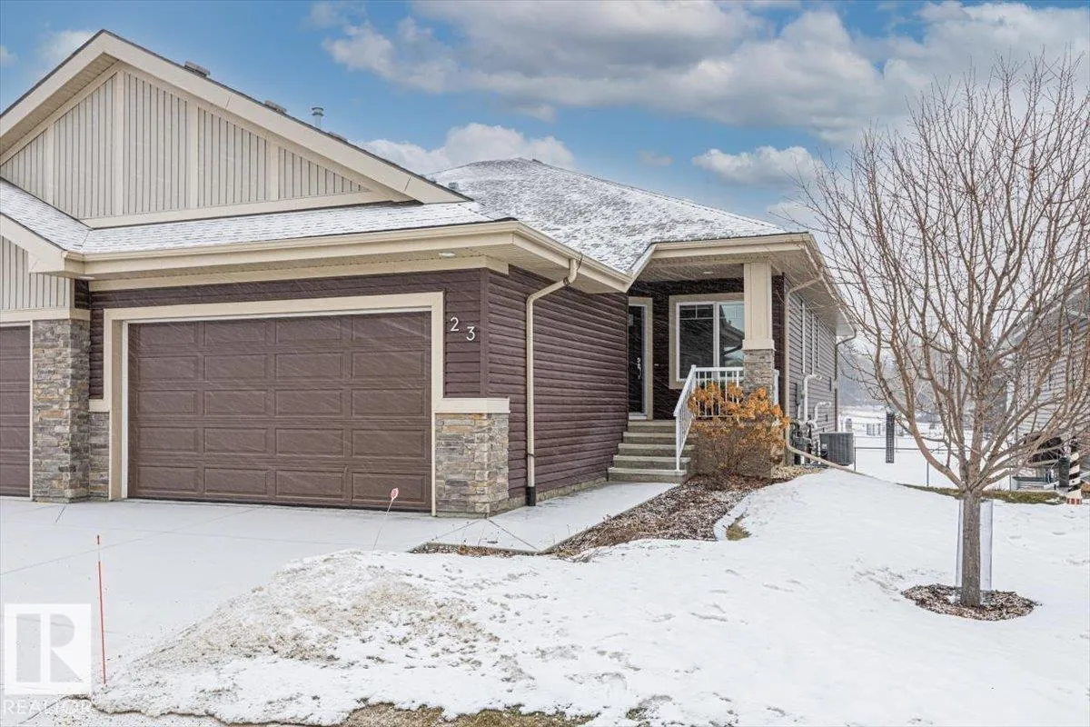 Nestled in a gated community along Lacombe Lake Park is this over 1300 sqft walkout adult bungalow. The perfect retreat for anyone tired of the maintenance of a large home. With an office space to work from home or read the morning paper. The hallway opens in an impressive main living space with exposed brick and electric fireplace. The island kitchen is equipped for cooking fast week night meals and elaborate family dinners. With a dining space large enough to accommodate everyone. Enjoy the summer on the upper patio overlooking the park. A primary suite features a HUGE walk-in closet off the 4 piece en-suite with dual sinks. In the basement there are 2 additional bedrooms, a full bathroom and plenty of storage space. The recreation and family rooms are flooded with light from the over-sized windows and provide walk-out access to the lower patio. A double attached garage protects your vehicle from the snow and elements. Enjoy the slow mornings and sun filled afternoons that this property can give you. (id:27476)