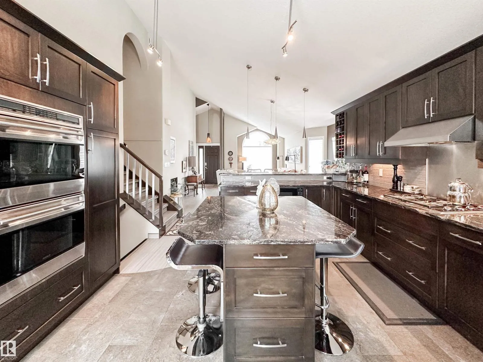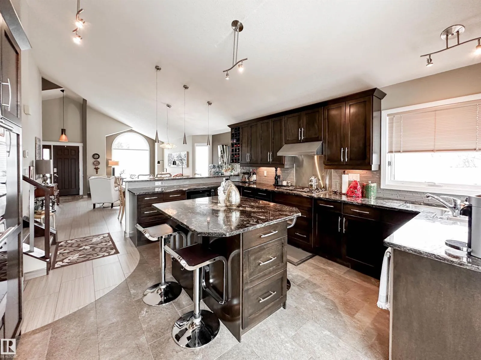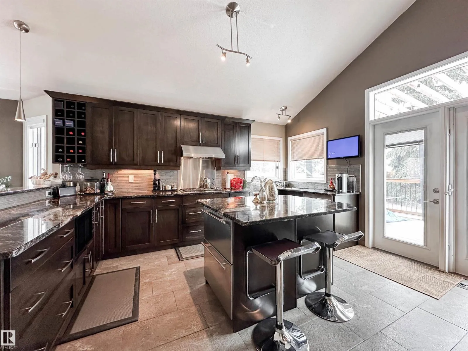 Beautifully renovated 4 level split offering 4 bedrooms & 3 full bathrooms in a quiet, family-friendly neighbourhood near trails, schools, & parks. The main floor features an open-concept layout w/soaring vaulted ceilings, a formal living room, dining area with built-in buffet, and a fully renovated chefâs kitchen with upgraded appliances, ideal for entertaining & creating a welcoming, relaxed atmosphere throughout the home. Upstairs includes 3 bedrooms, a 4-piece main bath, and a primary suite with a 3-piece ensuite. The third level adds a fourth bedroom, another 3-piece bath, and a bright family room with a gas fireplace & wet bar with custom cabinets, plus direct access to the double garage. The basement offers a rec room, laundry, and ample storage. Enjoy the beautifully landscaped backyard with a 2-tier deck, pergola, & garden shed. Ideal for young couples, families, or those looking to downsize in comfort & style. Addâl updates include HWT (2022), furnace & roof (2010). Garage is equipped with 220V. (id:27476)