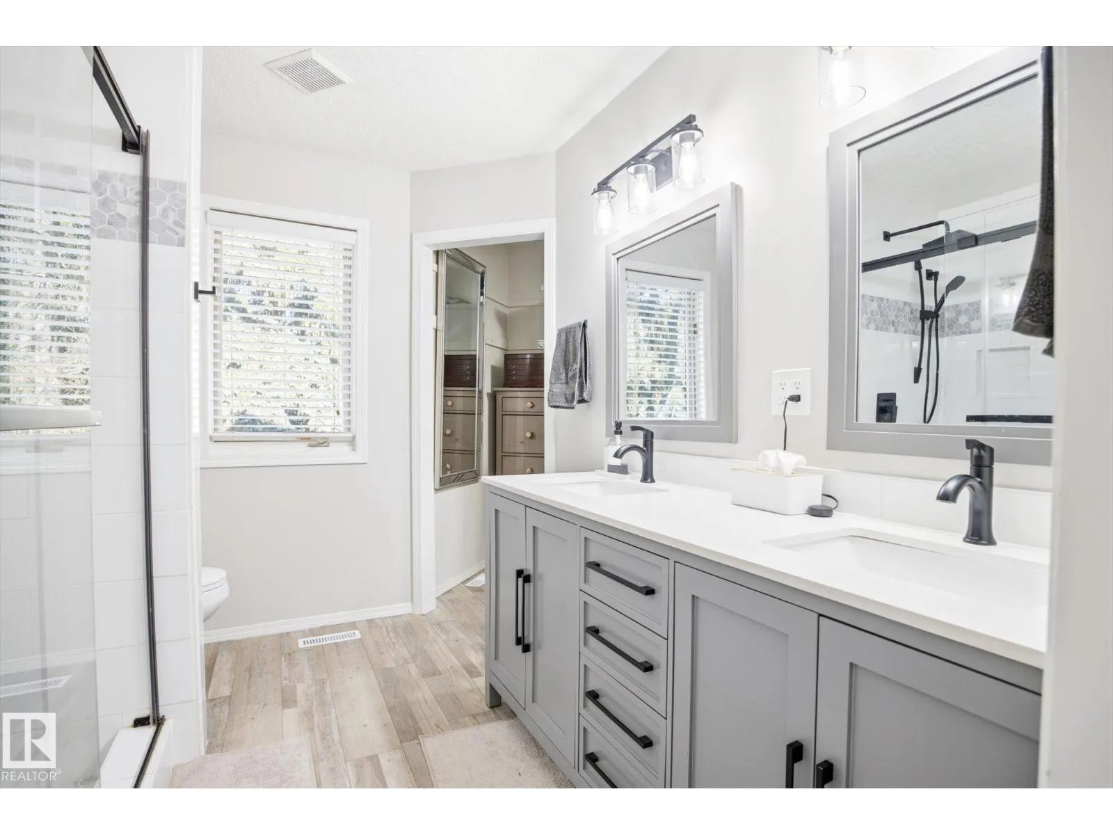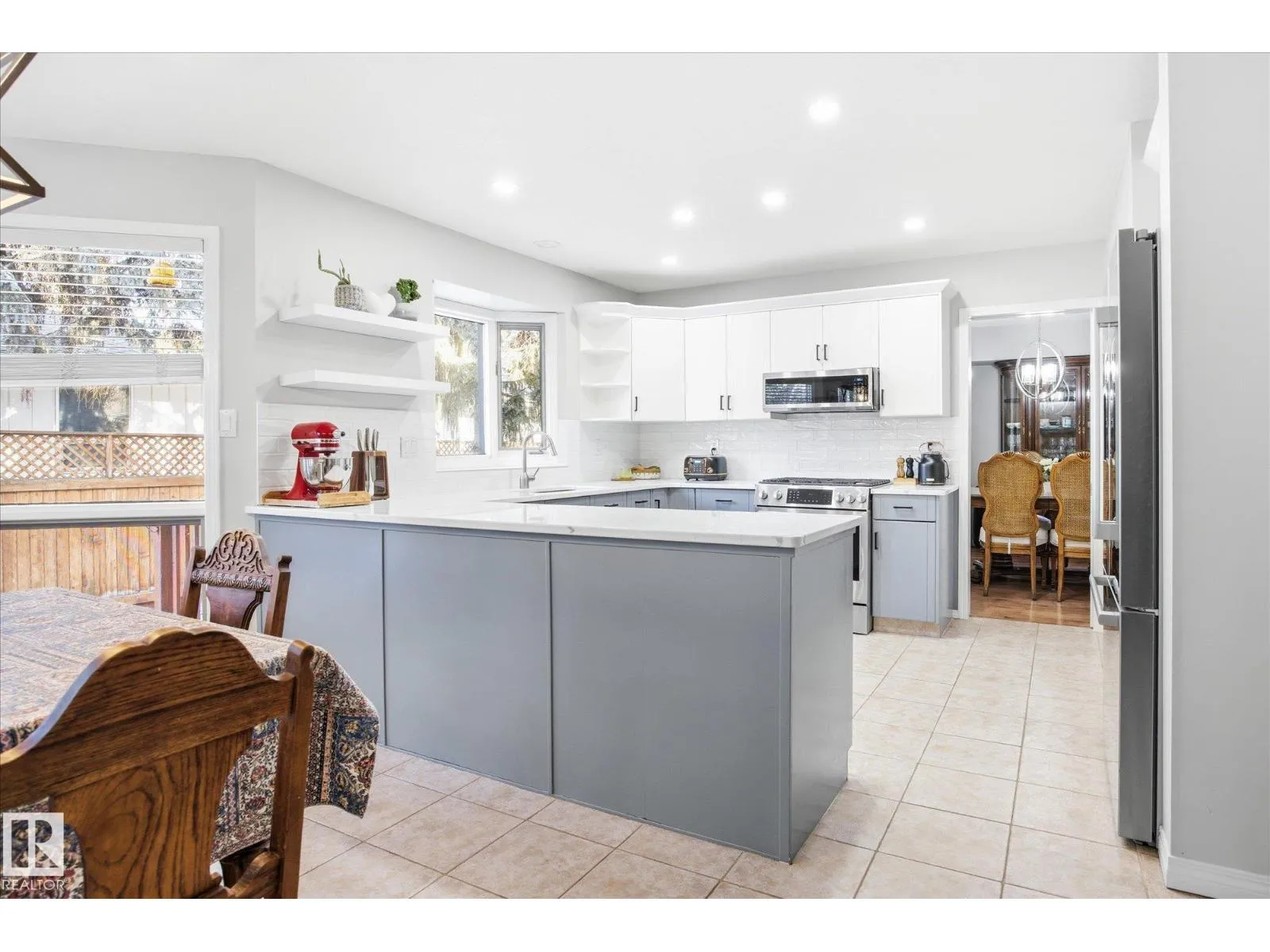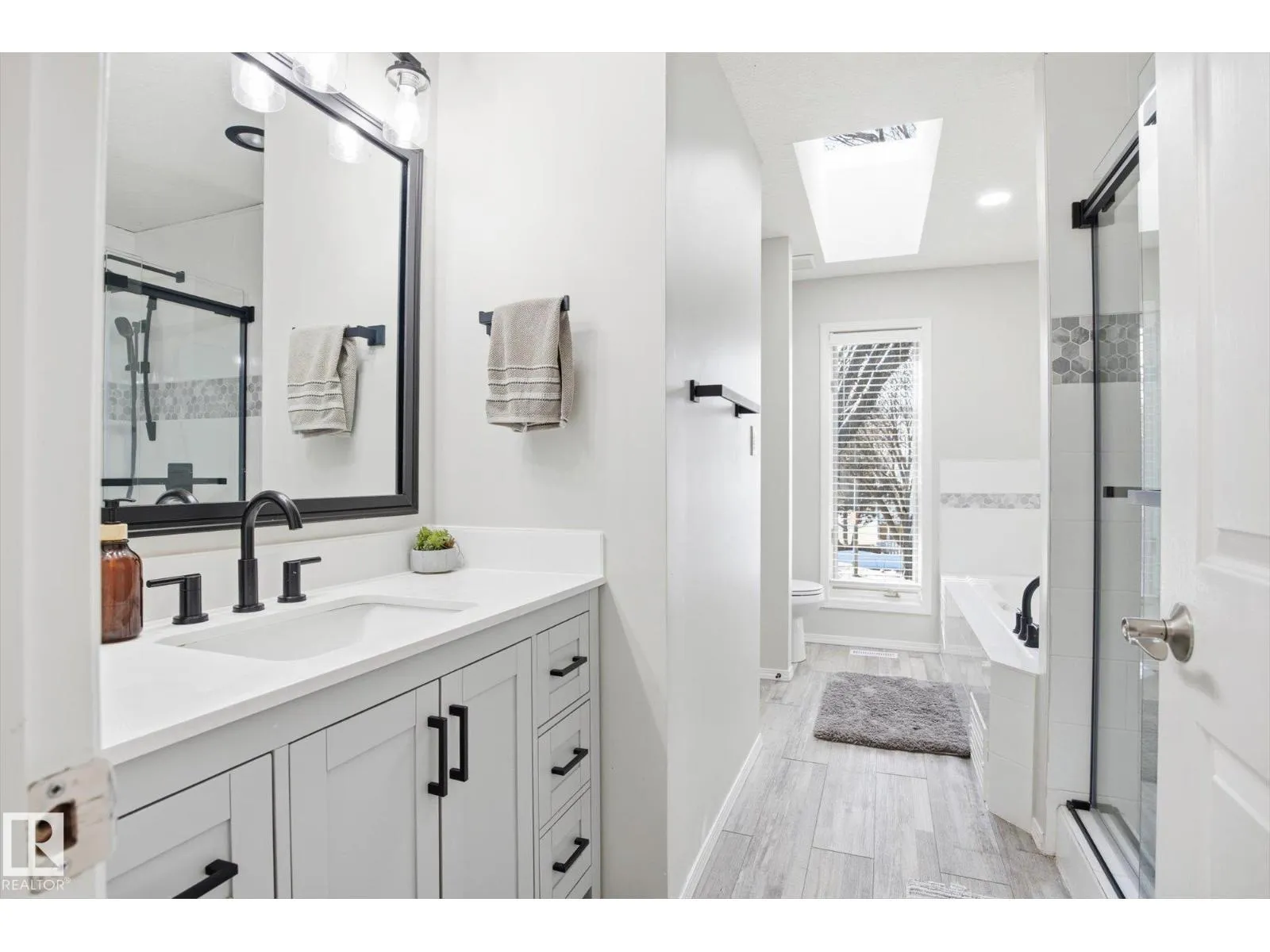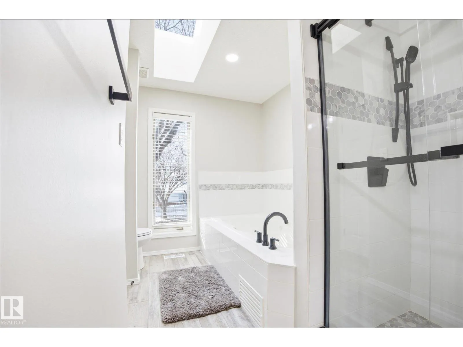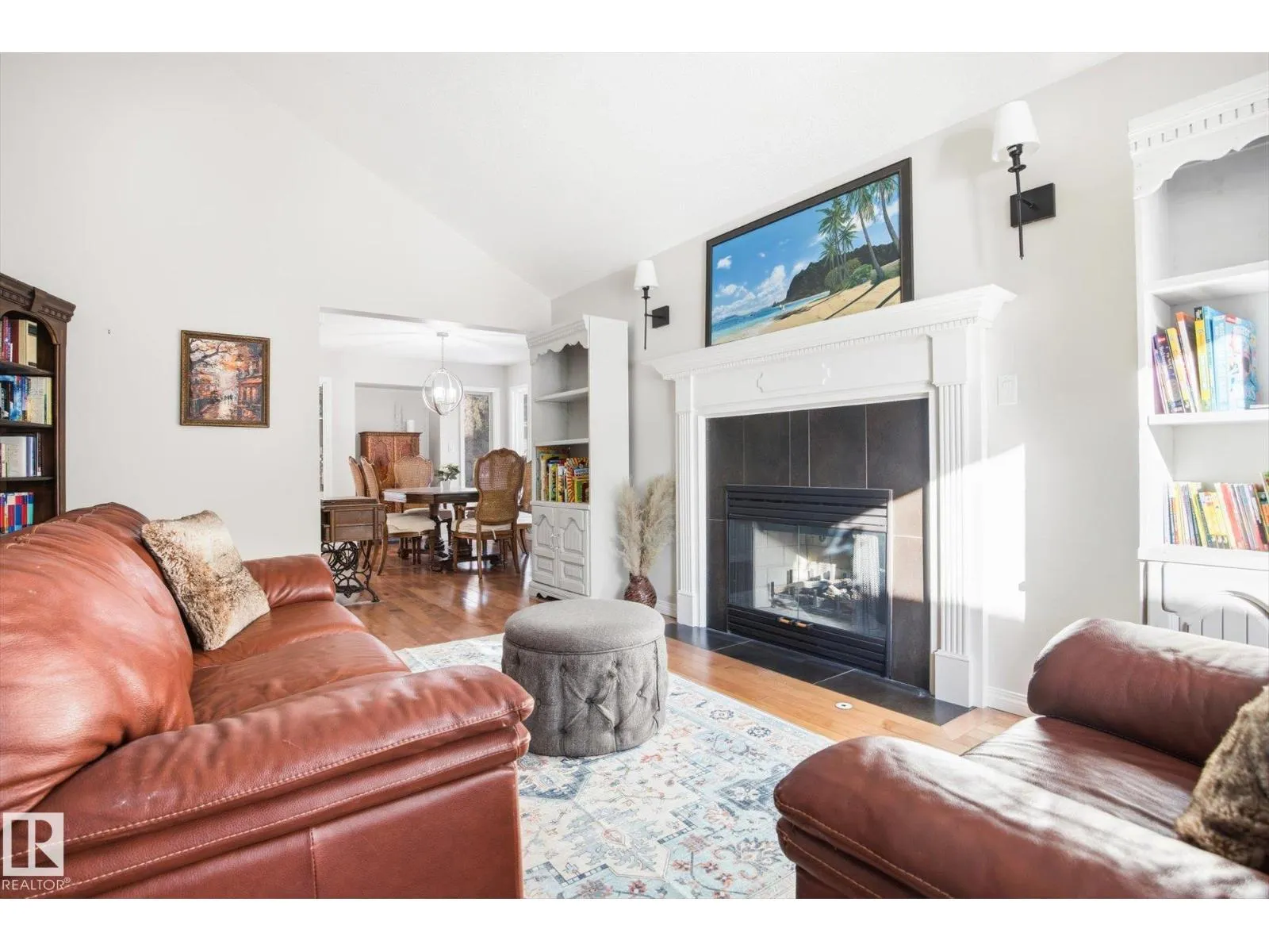 Welcome to this beautifully maintained home in the desirable community of Grandin in St. Albert! From the moment you step into the inviting front entrance, youâre greeted by a warm and cozy family room featuring large windows and a charming fireplace. A separate formal dining room offers the ideal space to host family dinners and special occasions. The spacious kitchen is well-appointed with ample cabinetry and counter space, along with a breakfast nook for casual dining. The main floor also boasts a comfortable living room with a second fireplace and access to the large deck and beautifully landscaped backyard. Upstairs, youâll find 4 generous bedrooms and 2 bathrooms, including a primary suite with a stunning ensuite featuring a skylight. The basement offers a INFLOOR HEATING, two more rooms, flex space, a HOT TUB ROOM and an additional bathroom. An oversized double attached garage adds convenience. Close to schools, walking trails, and shopping! (id:27476)