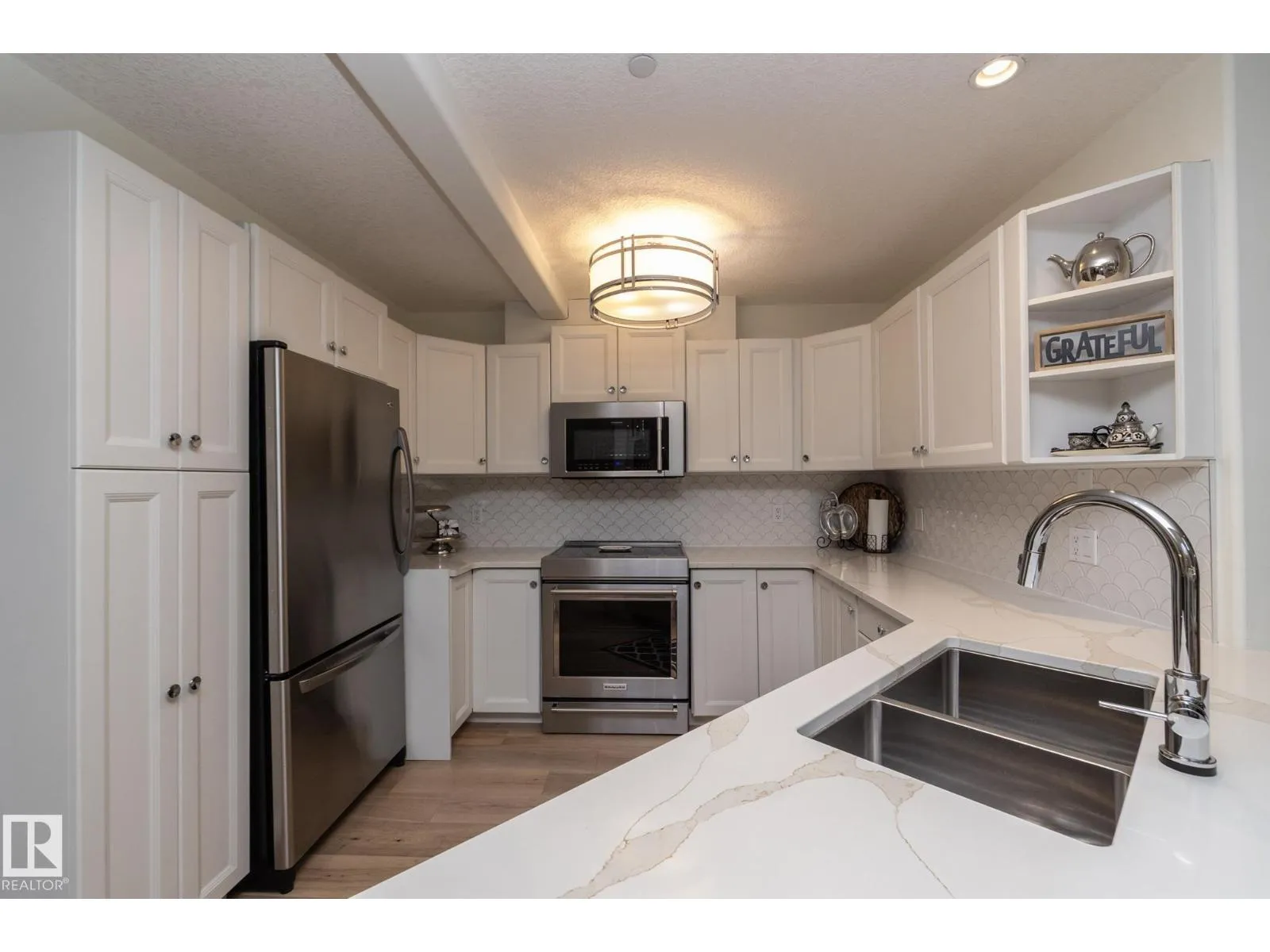 Great Value, Low Condo Fees & Prime Location ! Backs onto river valley trail system and just a short walk to farmers market & numerous amenities. Stunning, Unique & Immaculate! This 1,907sqft loft style condo is magazine ready. The unit has gone through a major renovation using tasteful, timeless and quality materials. The floor plan on each level was brilliantly planned leaving no wasted space. Upper level has been designated to the primary bedroom and Ensuite making up 771sqft. The fixtures are eye-catching and the high-end steam shower takes the space to another level. These two combined spaces will rival that of many homes far in excess of this price point. The 2nd bedroom is on the main with adjacent 4 piece bath. Balance of main level is open concept and lends well to accommodating large gatherings. Other features include 2 parking stalls, vaulted ceilings, large banks of windows, hardwood floors, gas fireplace & stainless appliances with induction stove. GREAT PUBLIC TRANSIT SERVICE TO EDMONTON! (id:27476)