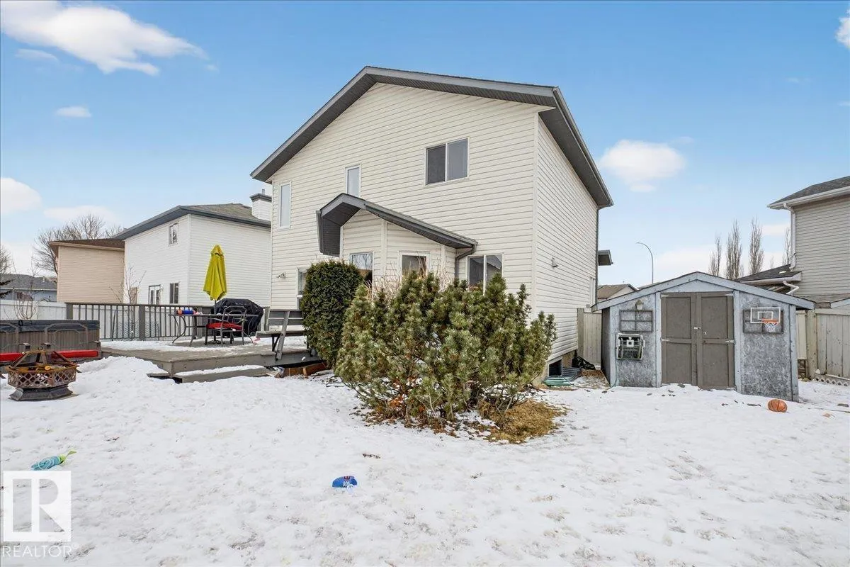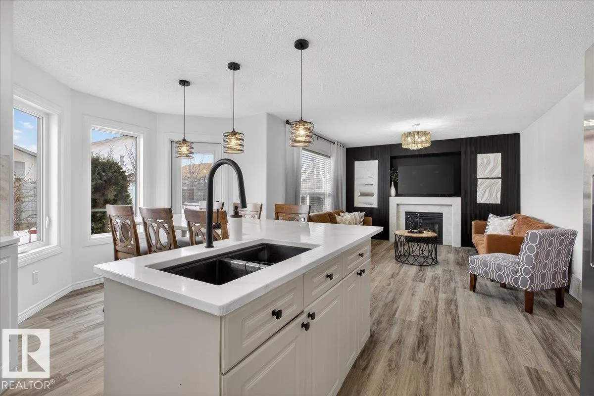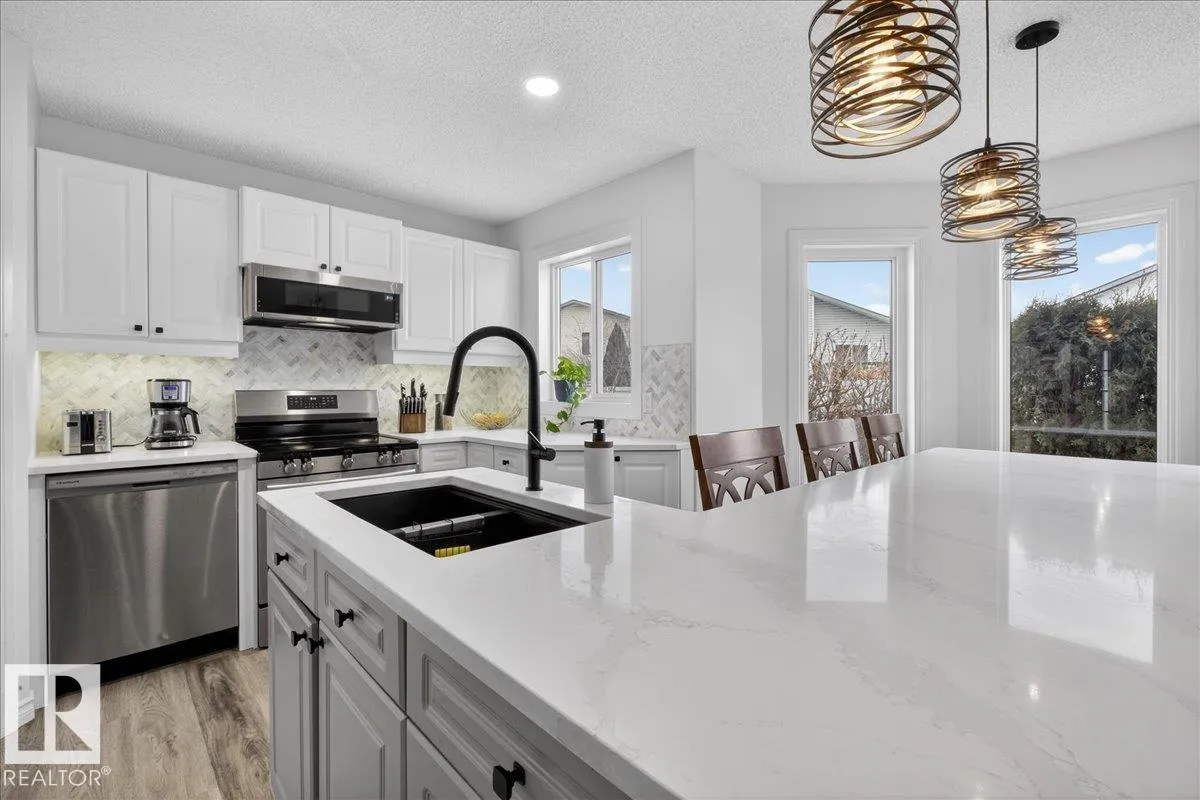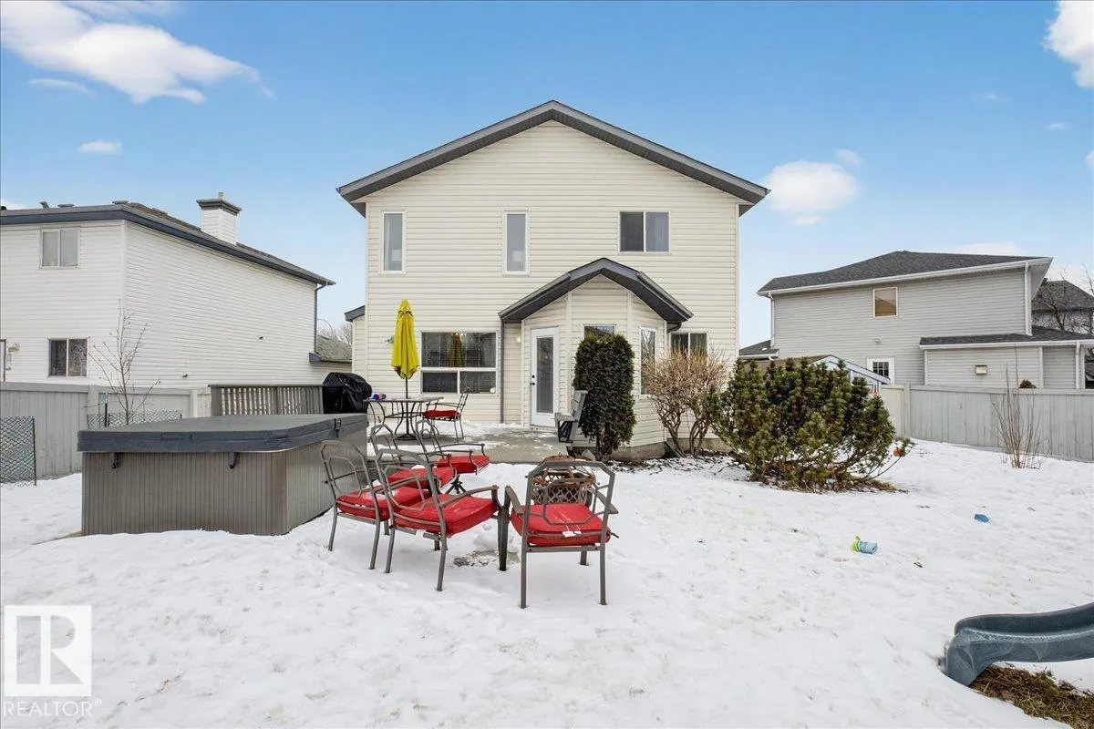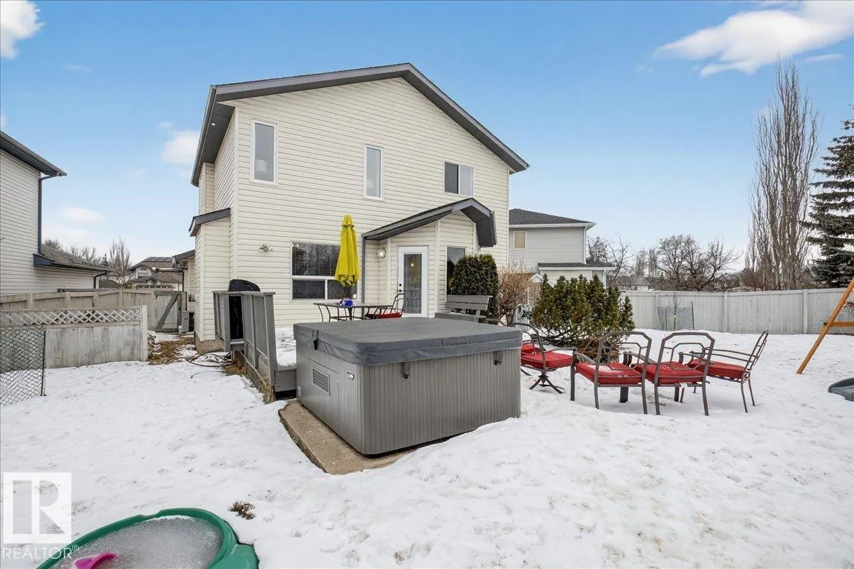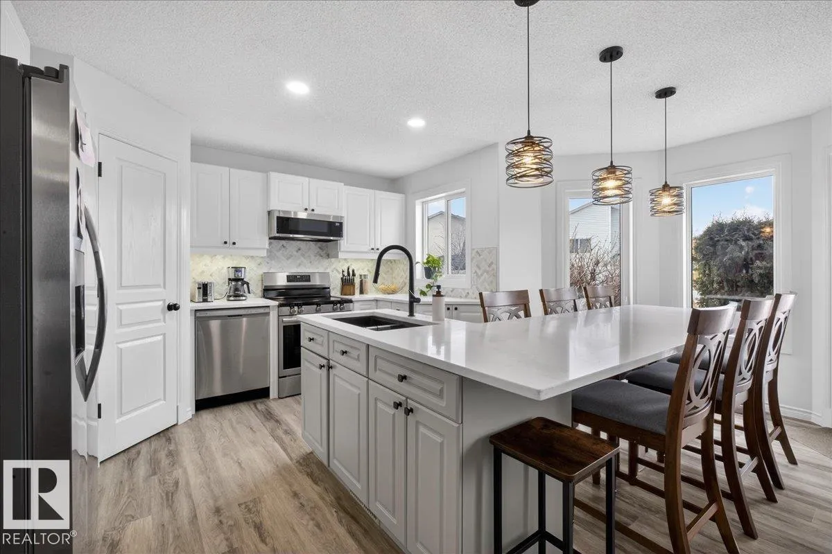 This beautifully updated 4-bedroom + den home is located in a cul-de-sac, in the sought-after community of Heritage Lakes. Bright and inviting, the front den features two large windows, while the open-concept main floor showcases a redesigned kitchen with QUARTZ countertops (2025), new SS appliances (2024), and a large island flowing into the cozy living room with a gas fireplace. Upstairs offers three spacious bedrooms, a full bath, and a stunning primary suite with walk-in closet and renovated ensuite with jetted tub and separate shower. The fully finished basement adds a family room, 4th bedroom, and bathroom with a new fireplace and accent wall (2025). Enjoy a HUGE yard with NEW HOT TUB (2024), dog run, and fresh landscaping. Heated double garage, A/C, new DUAL high efficacy furnace (2025), many new windows (2025), front door (2025), window coverings (2024), light fixtures (2024), LVP flooring (2025), newer roof and HWT and moreâsteps to schools, shopping, and only a few minutes away from the Henday! (id:27476)