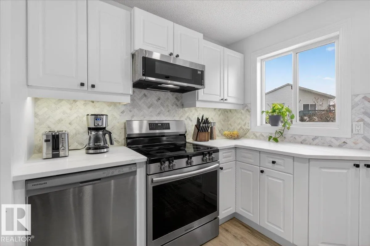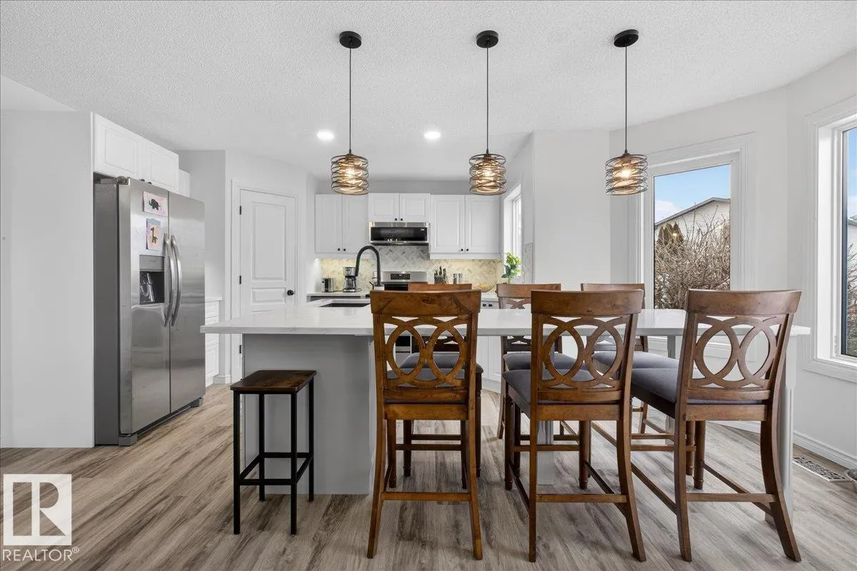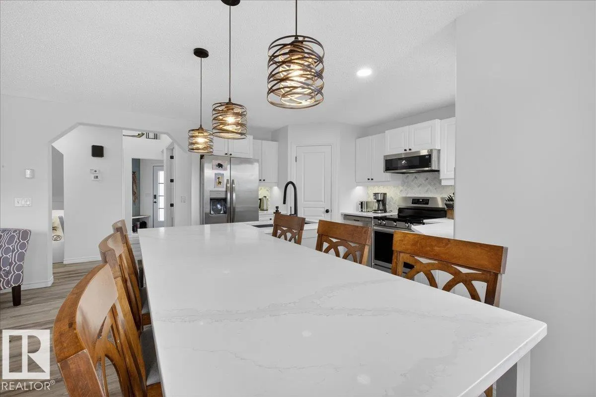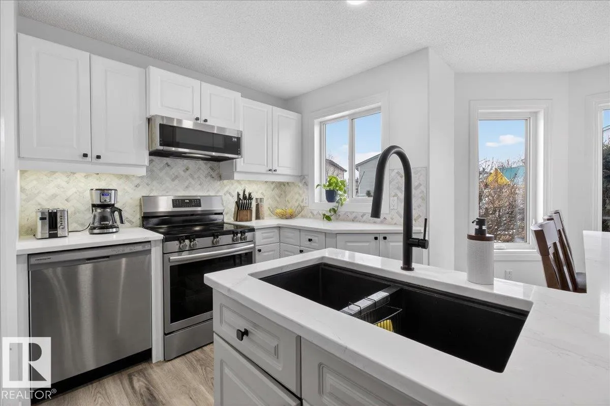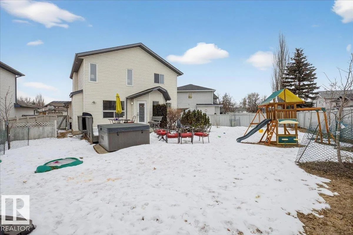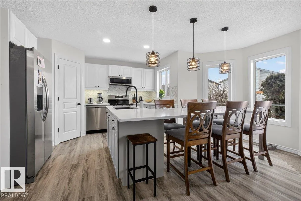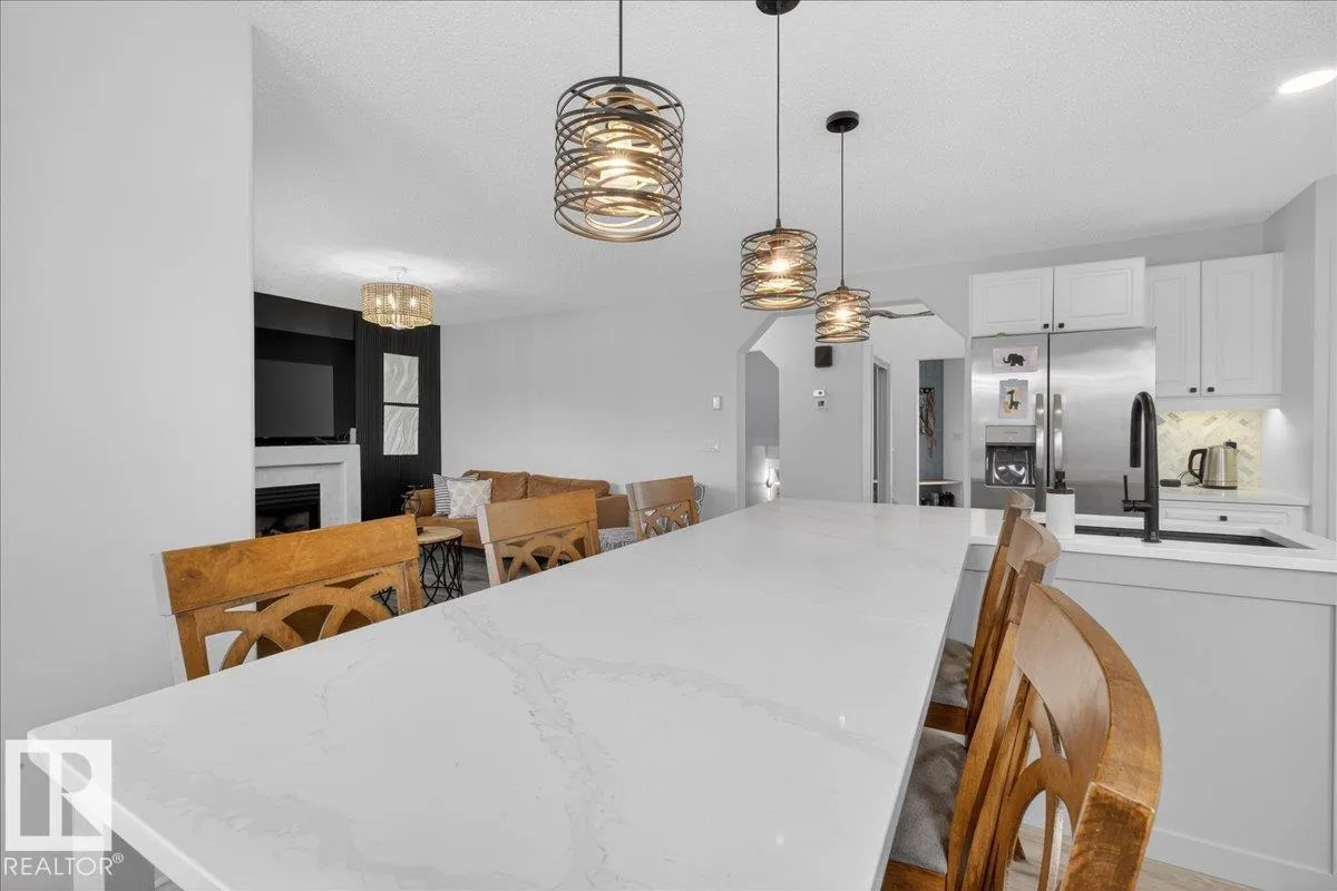 This beautifully updated 4-bedroom + den home is located in a cul-de-sac, in the sought-after community of Heritage Lakes. Bright and inviting, the front den features two large windows, while the open-concept main floor showcases a redesigned kitchen with QUARTZ countertops (2025), new SS appliances (2024), and a large island flowing into the cozy living room with a gas fireplace. Upstairs offers three spacious bedrooms, a full bath, and a stunning primary suite with walk-in closet and renovated ensuite with jetted tub and separate shower. The fully finished basement adds a family room, 4th bedroom, and bathroom with a new fireplace and accent wall (2025). Enjoy a HUGE yard with NEW HOT TUB (2024), dog run, and fresh landscaping. Heated double garage, A/C, new DUAL high efficacy furnace (2025), many new windows (2025), front door (2025), window coverings (2024), light fixtures (2024), LVP flooring (2025), newer roof and HWT and moreâsteps to schools, shopping, and only a few minutes away from the Henday! (id:27476)